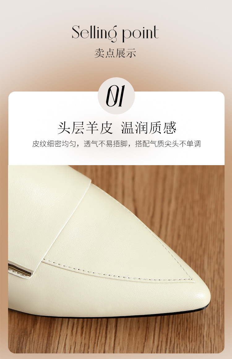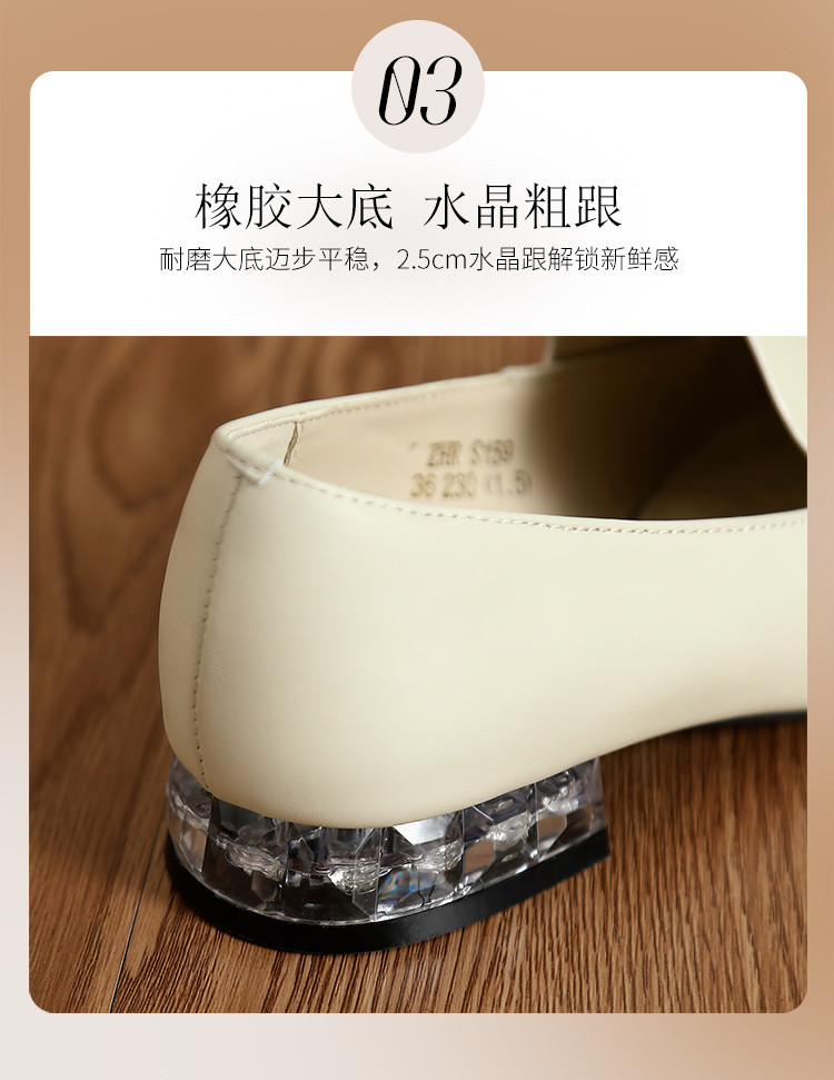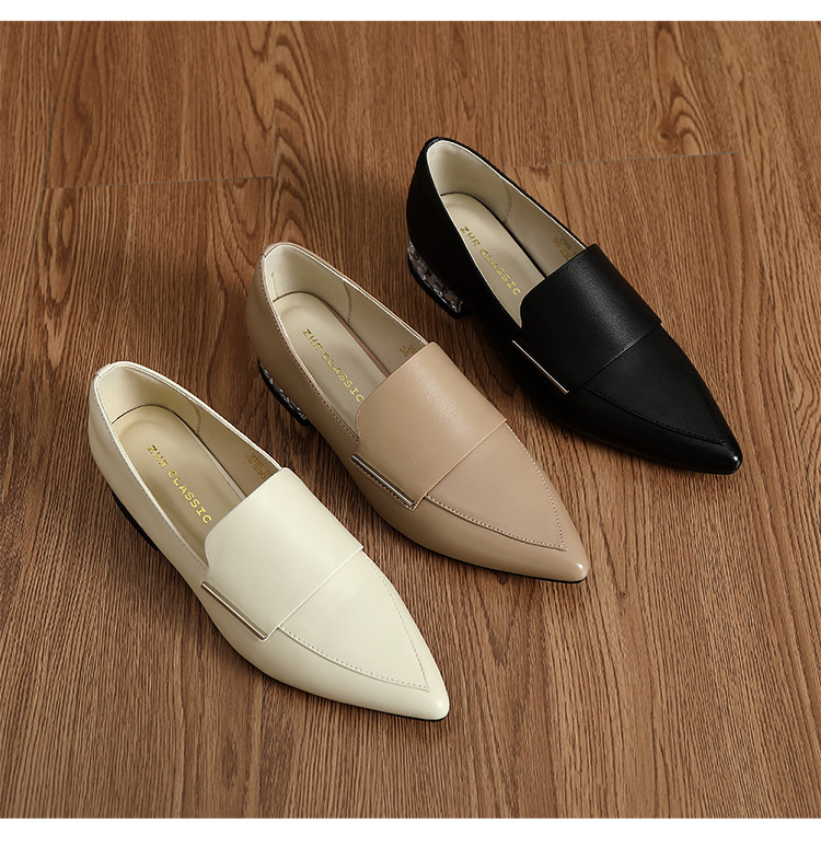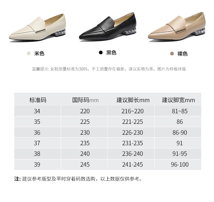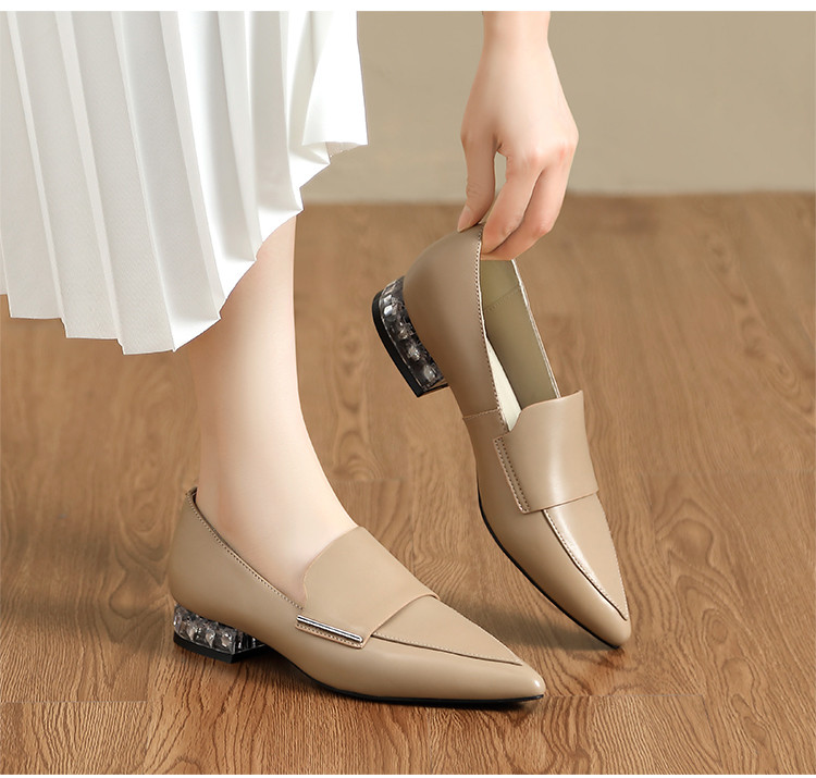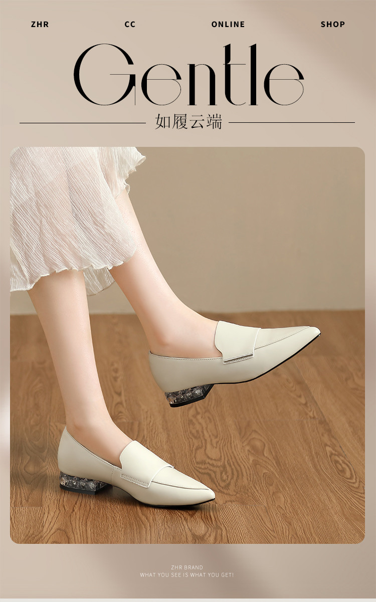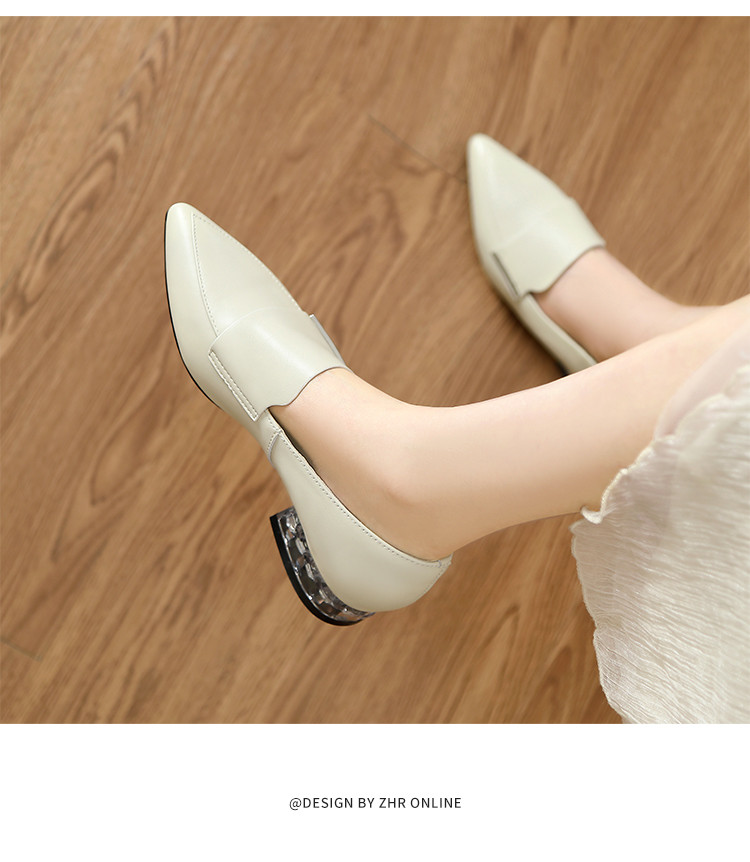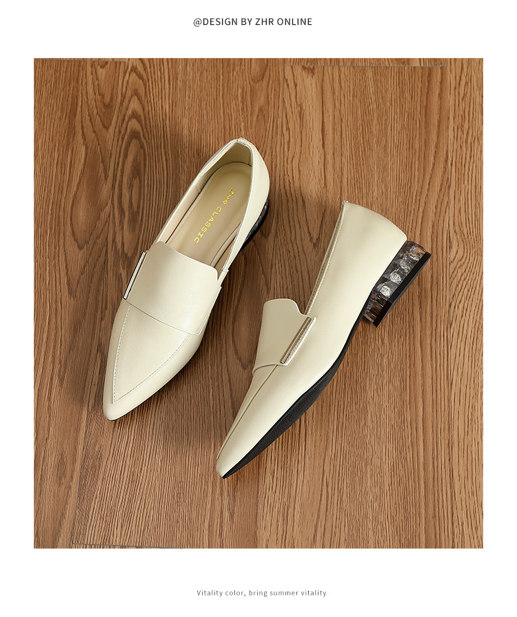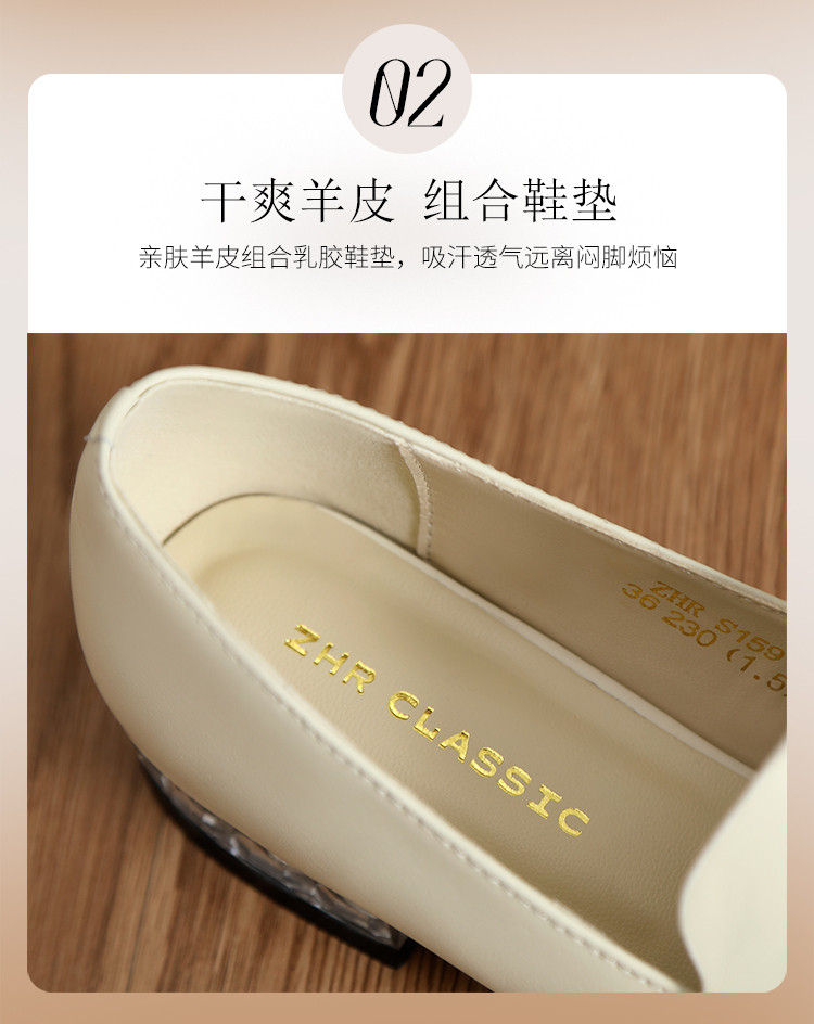 商品名称:【头层羊皮】尖头单鞋女皮鞋水晶跟气质小香风乐福鞋女一脚蹬女鞋 344256