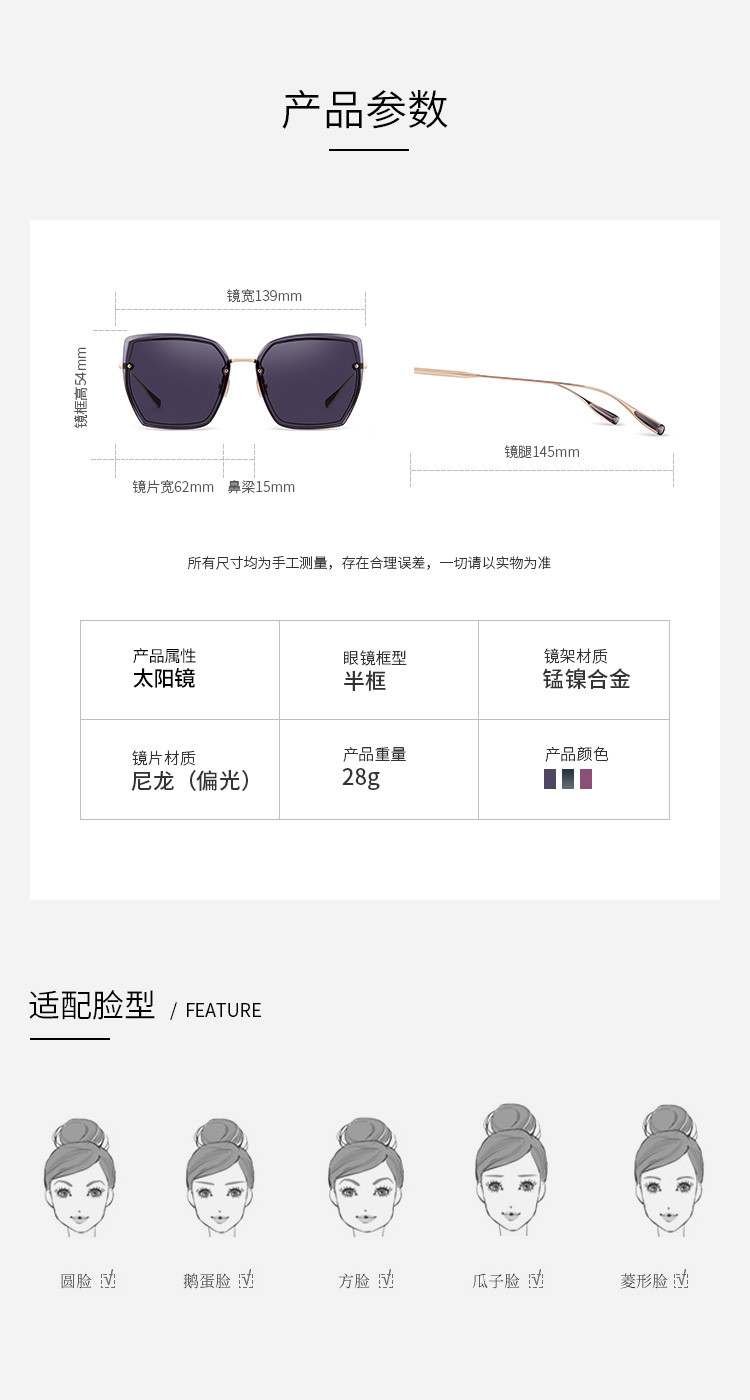 商品名称:海伦凯勒韩版潮墨镜女小脸太阳镜女圆脸优雅偏光驾驶镜 419803