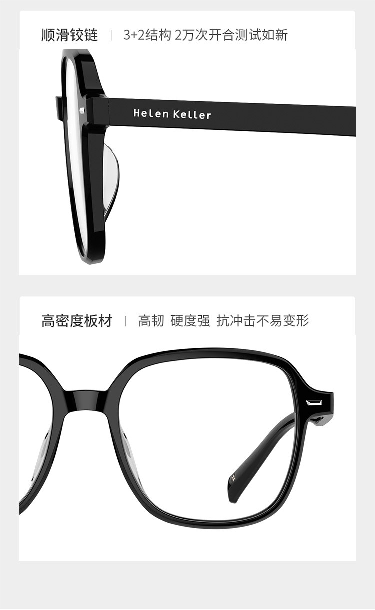 商品名称:海伦凯勒防蓝光眼镜框近视板材女时尚大框显瘦素颜 006555