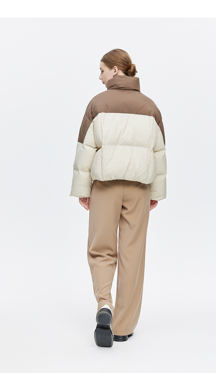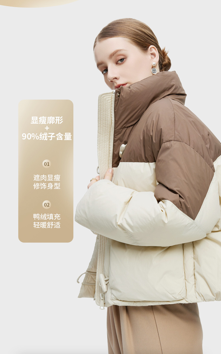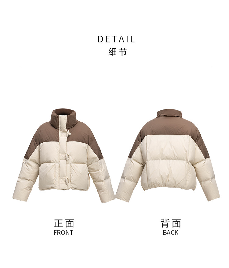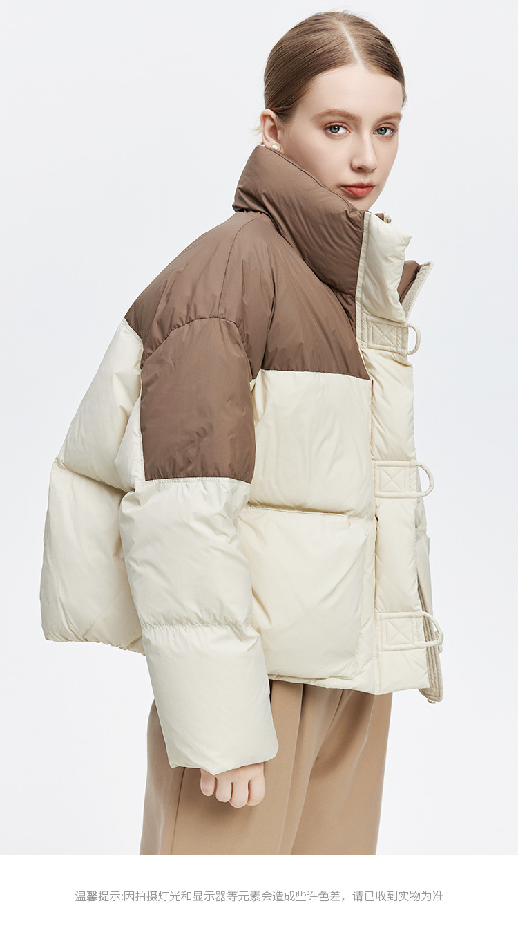 商品名称:美拉德休闲面包服活力立领拼色女式小个子短款羽绒服 893919