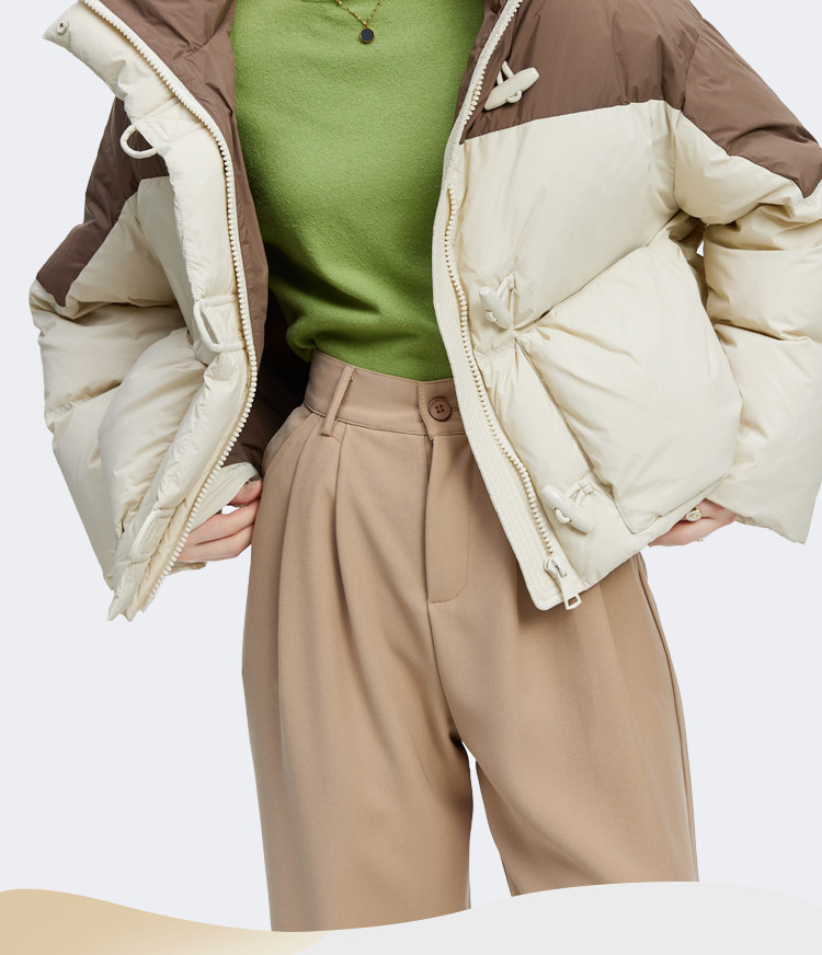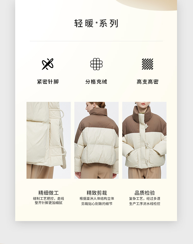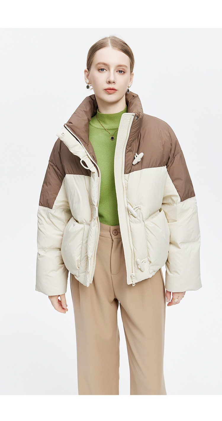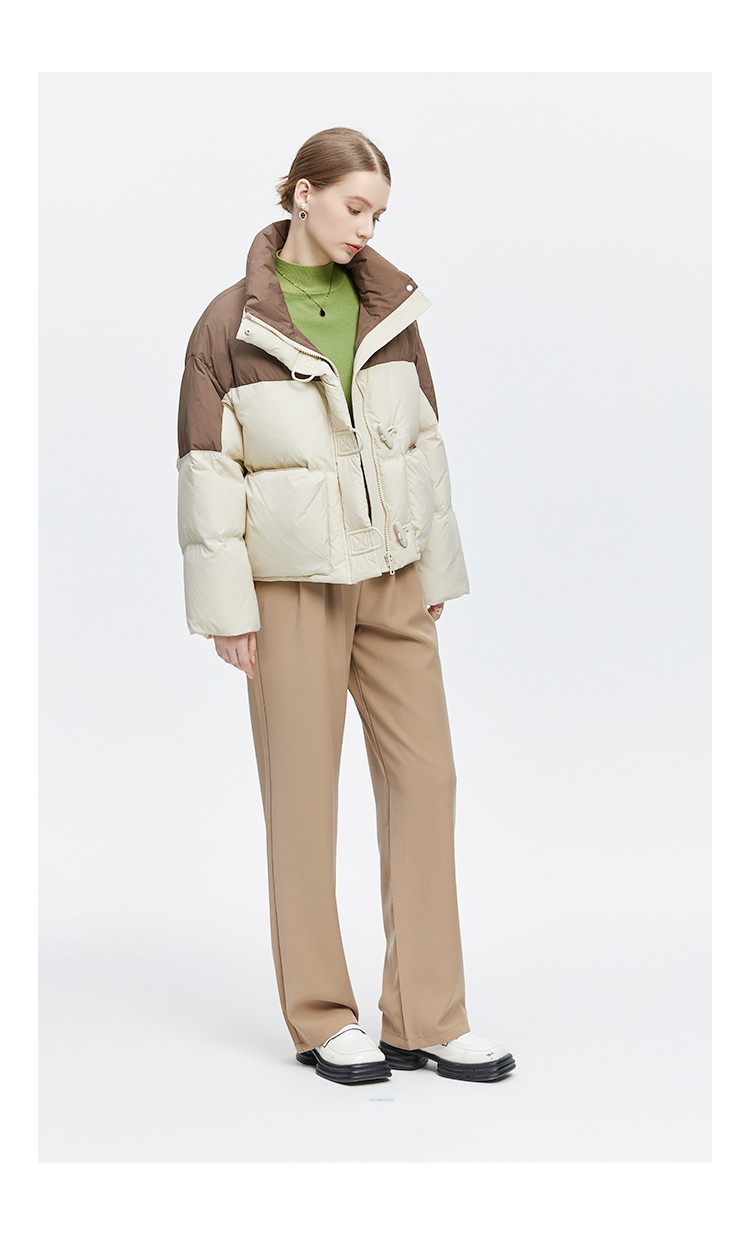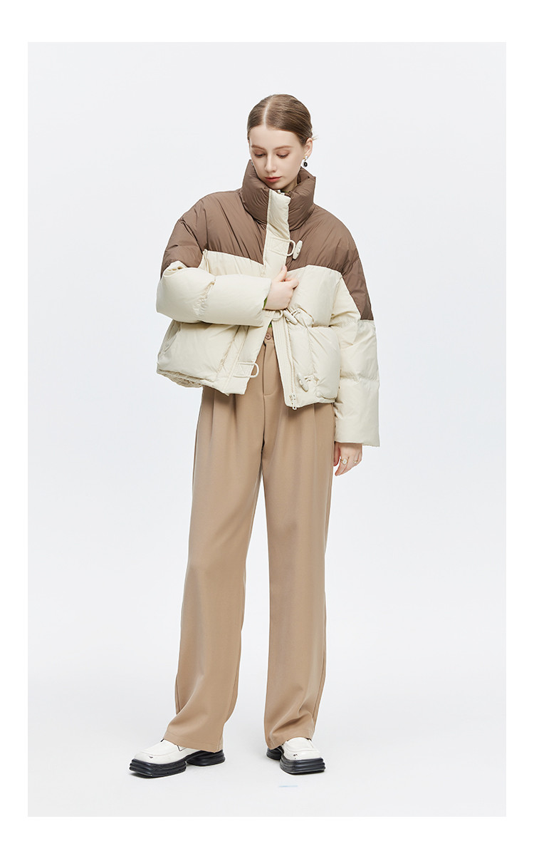 商品名称:美拉德休闲面包服活力立领拼色女式小个子短款羽绒服 893919