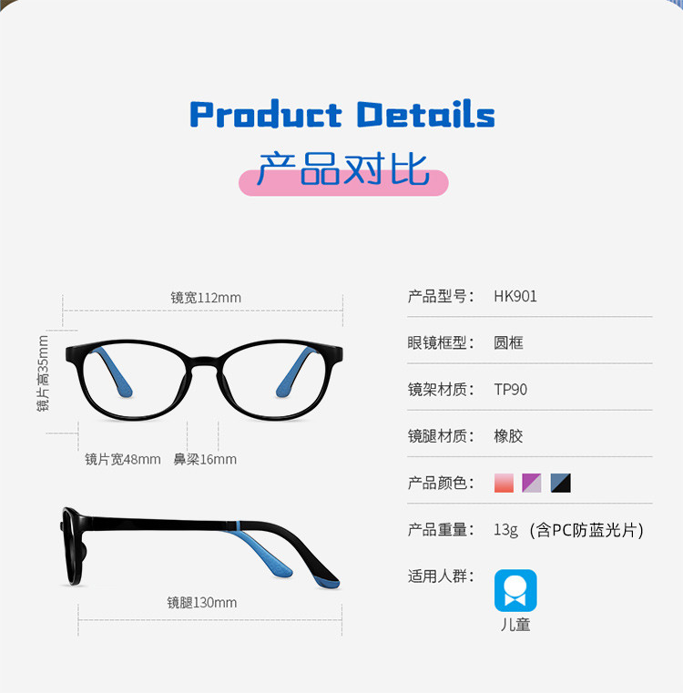 商品名称:海伦凯勒儿童防蓝光眼镜女学生手机电脑护眼男眼镜架 002459