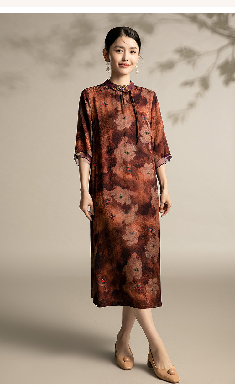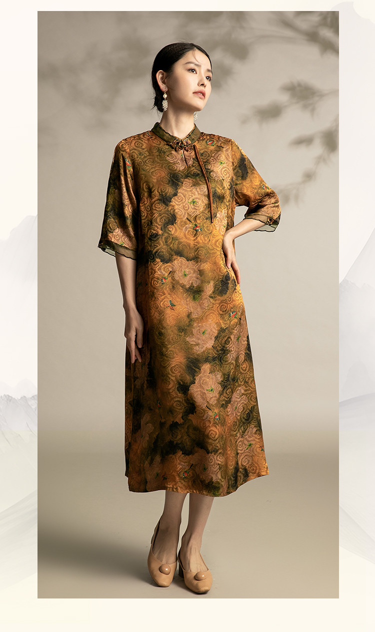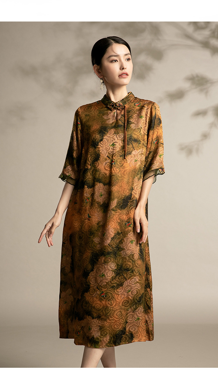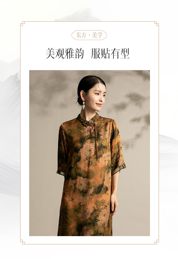 商品名称:复古气质夏季舒适宽松连衣裙中老年女装印花国风裙 089119