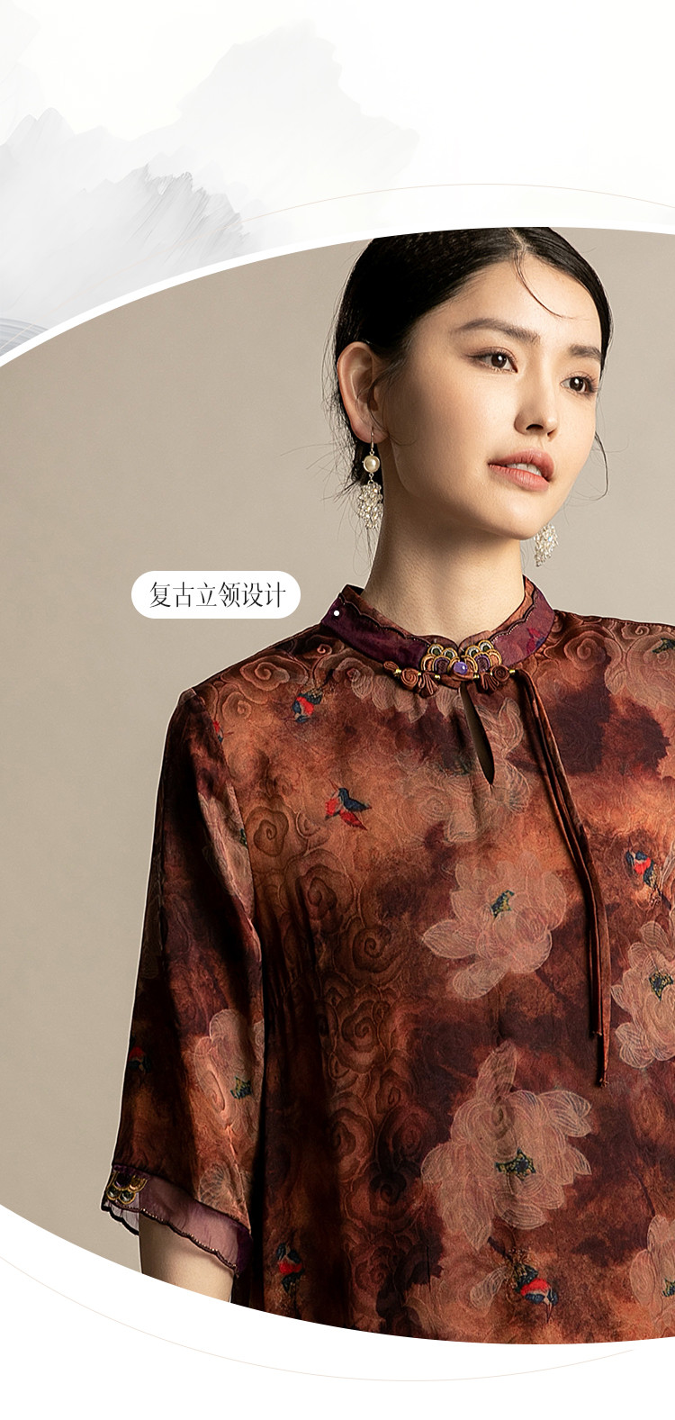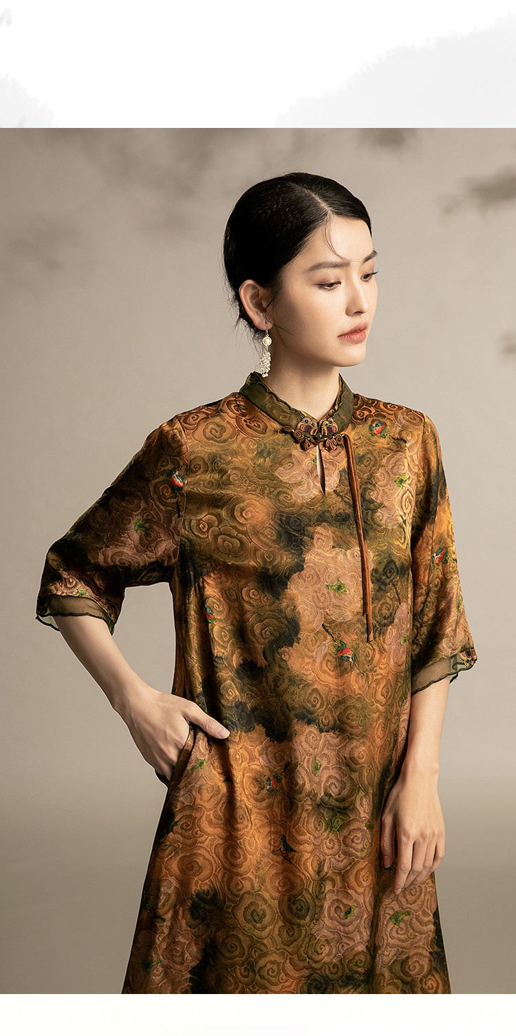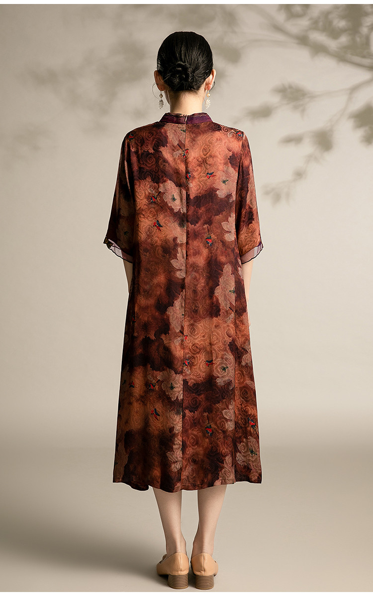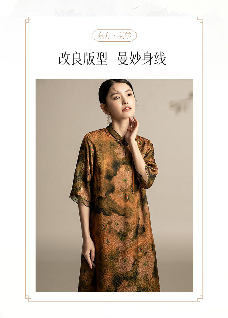 商品名称:复古气质夏季舒适宽松连衣裙中老年女装印花国风裙 089119