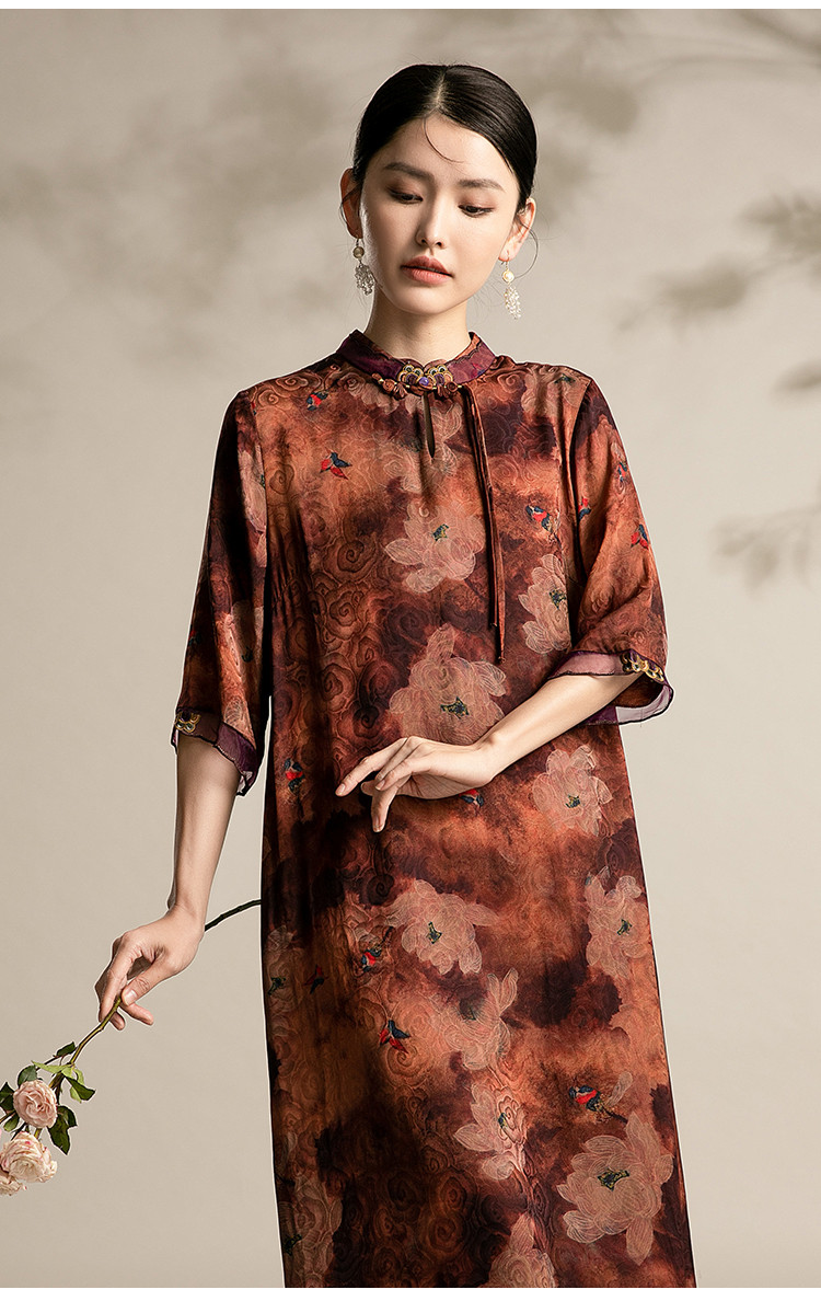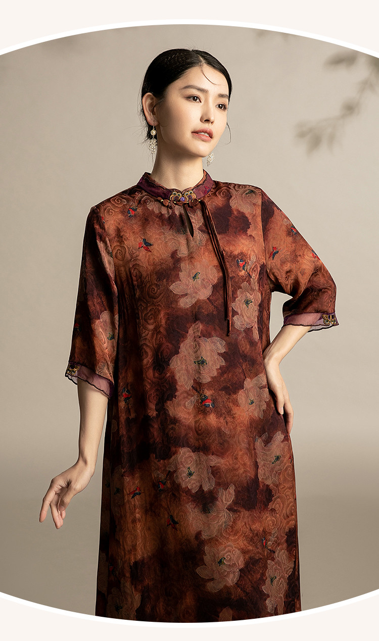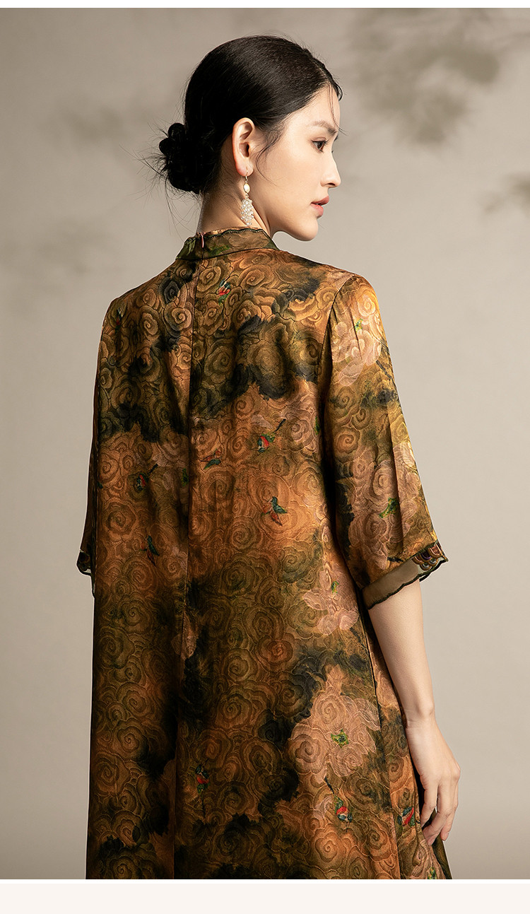 复古气质夏季舒适宽松连衣裙中老年女装印花国风裙 089119