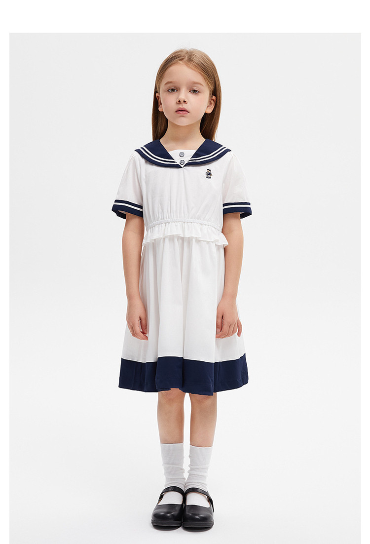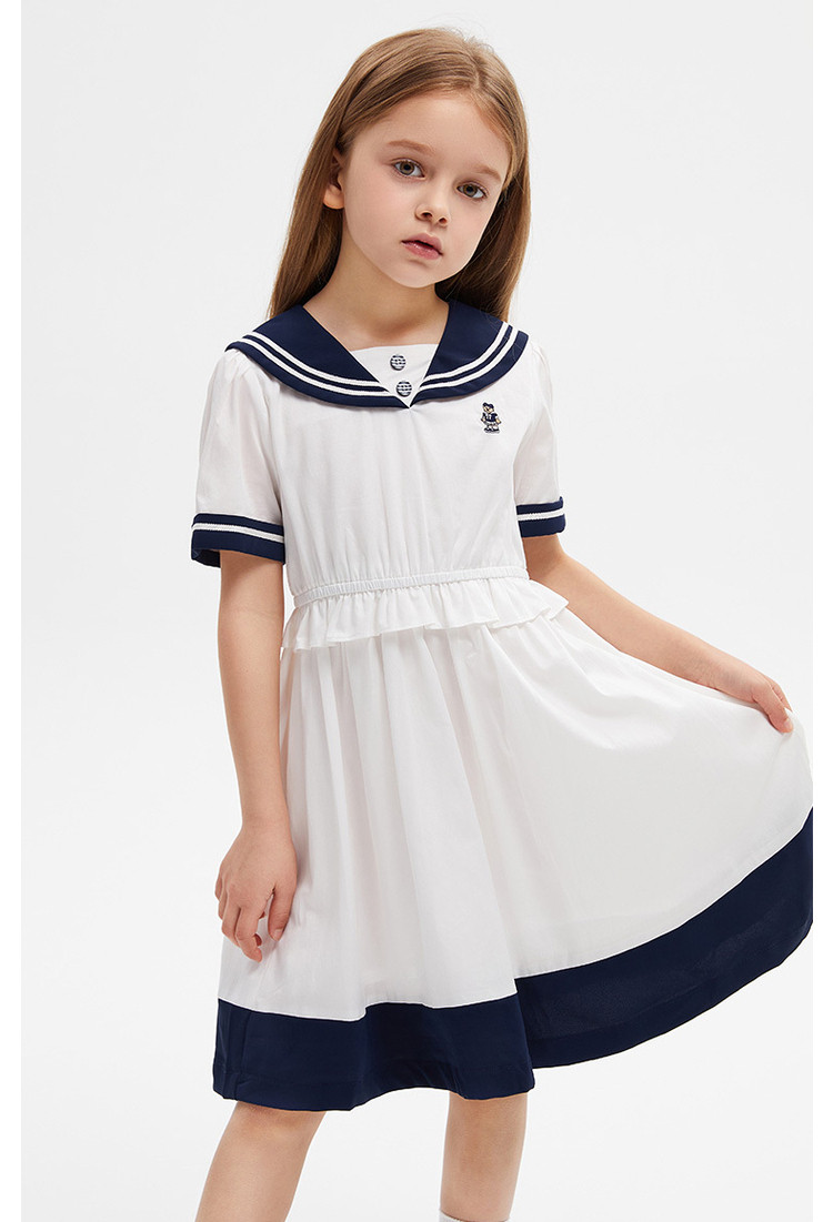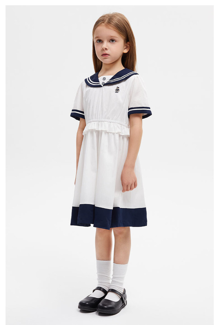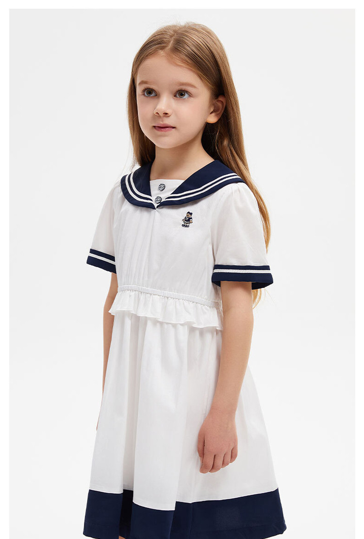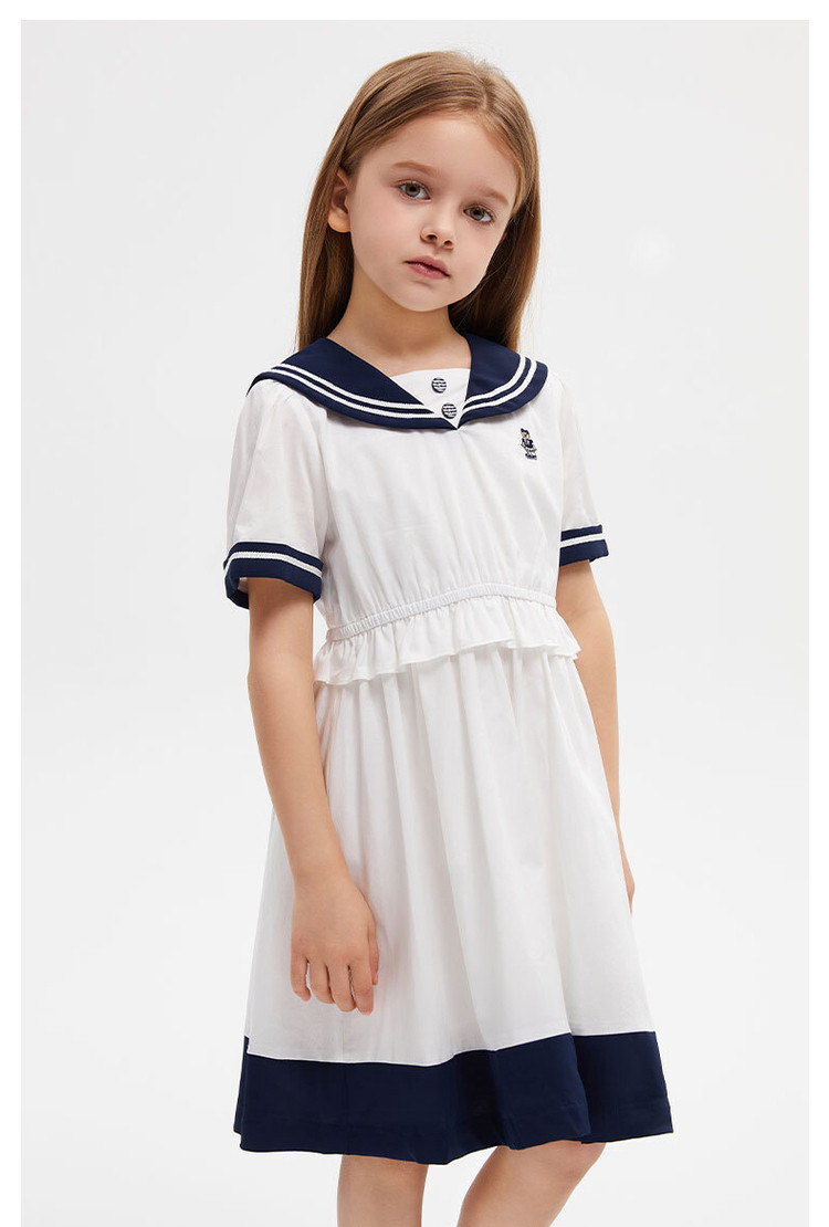 商品名称:小熊童装女童夏款复古海军领短袖连衣裙 958977