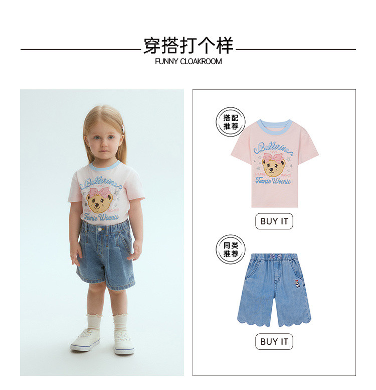 商品名称:【牛仔裤】小熊童装夏季女宝宝纯棉腰部褶裥牛仔裤 990785