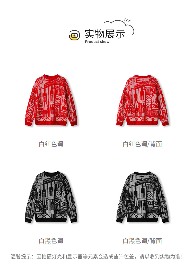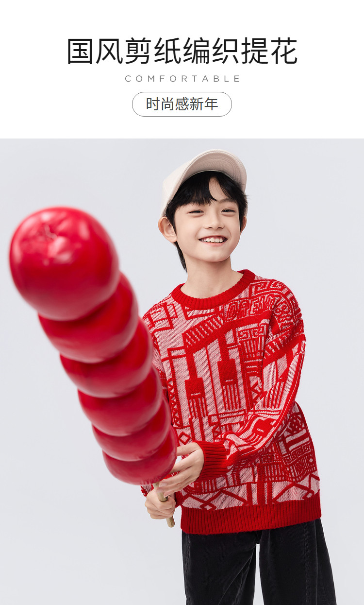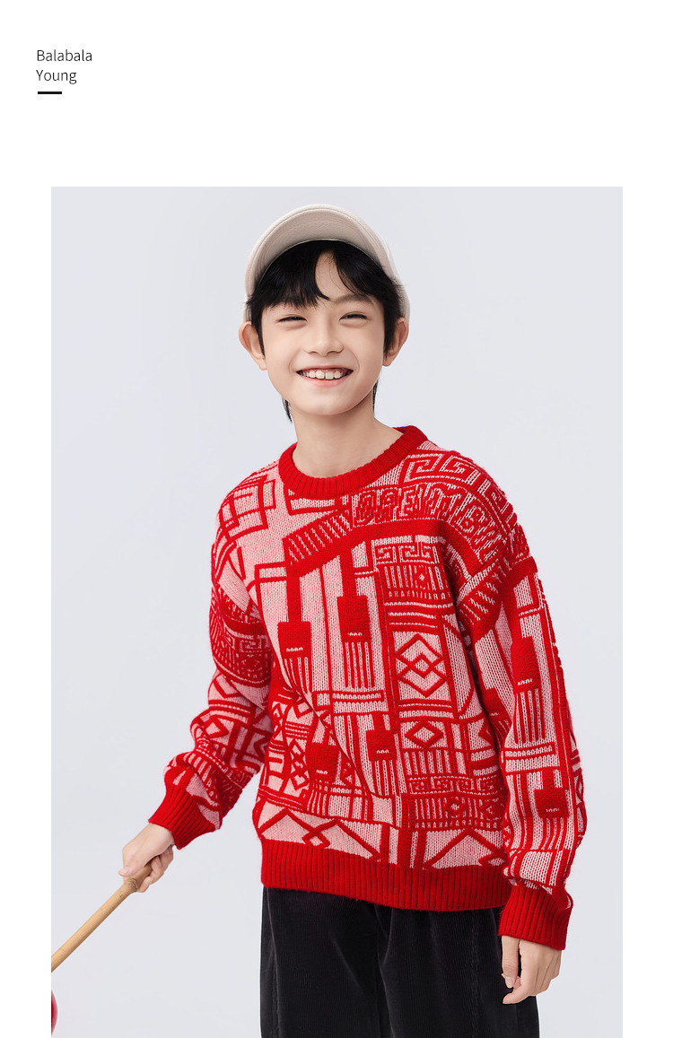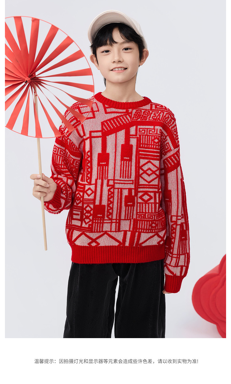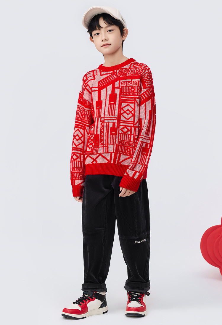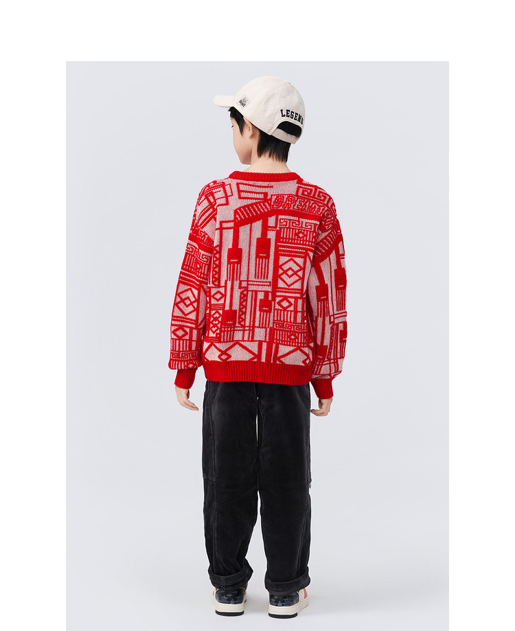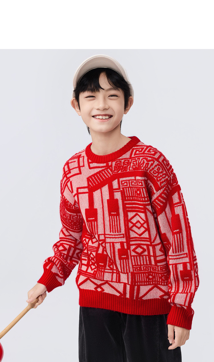 商品名称:国潮艺术提花加厚套头针织衫男童毛衣春秋装圆领潮中大童内搭洋气 272581