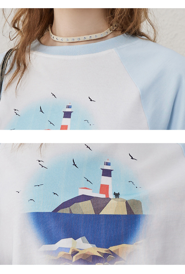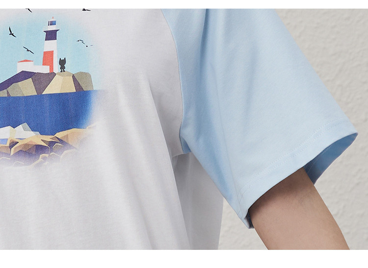 CHUU大U领T恤女夏印花中长款落肩宽松短袖上衣 437267