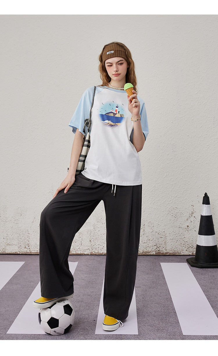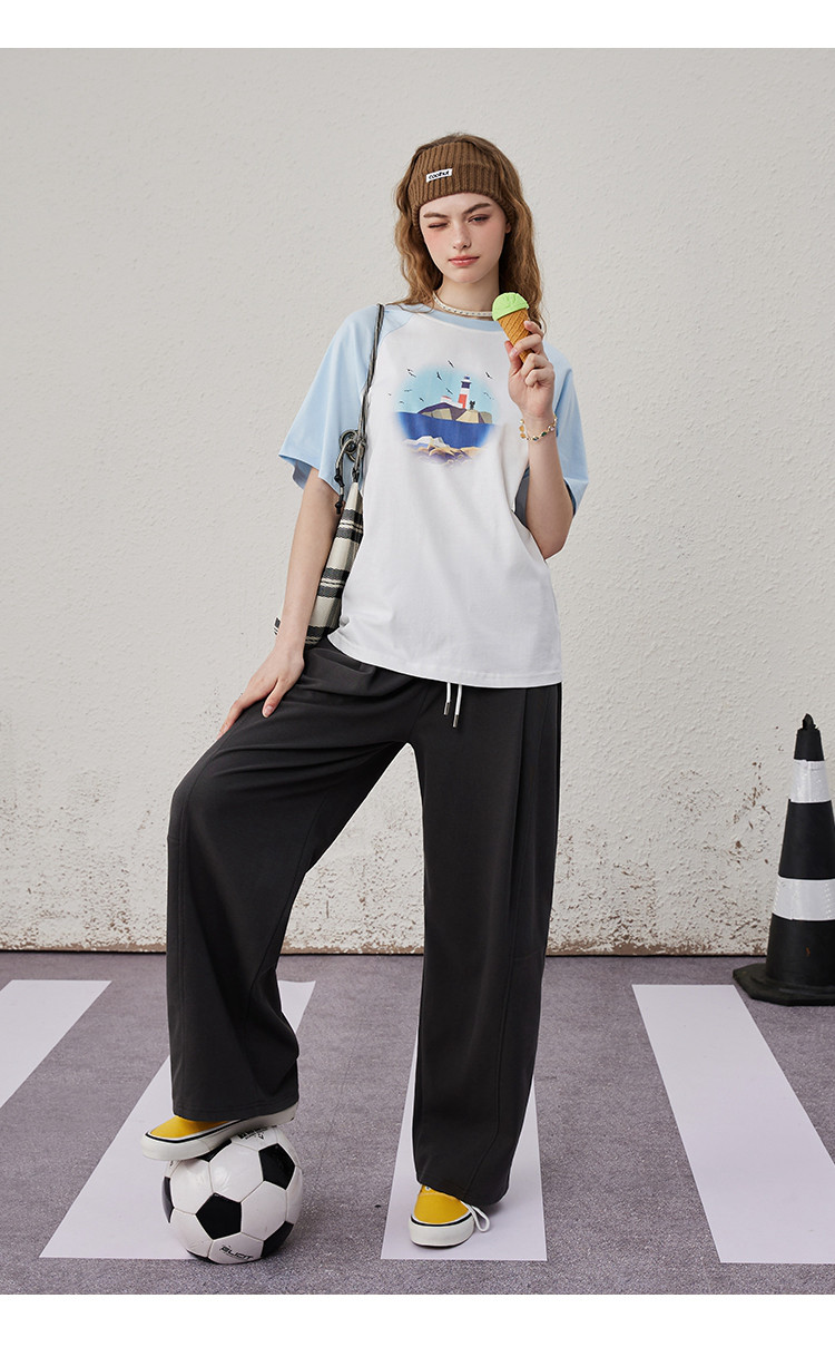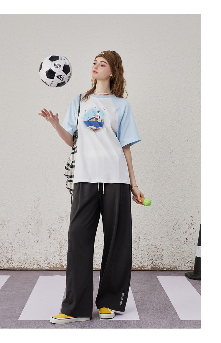 【100%棉】国潮休闲复古圆领百搭设计感女式T恤夏季 329309