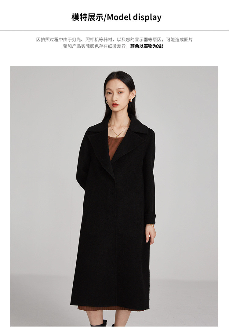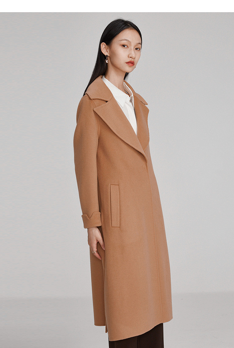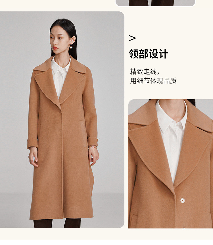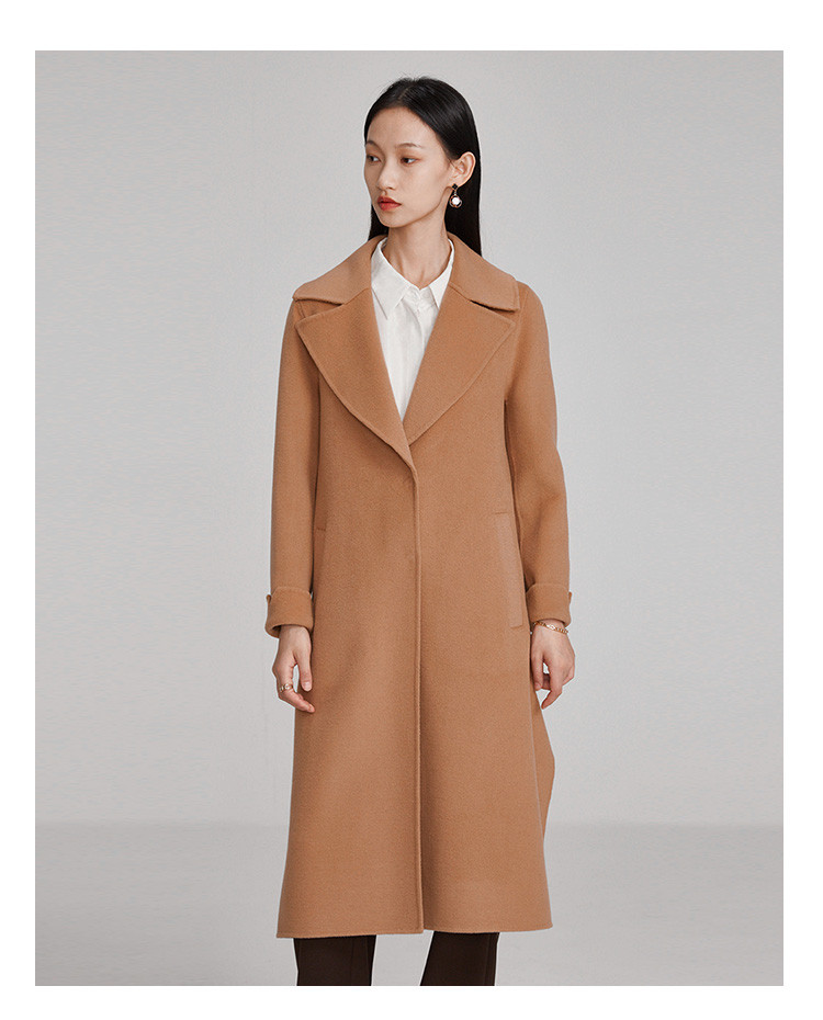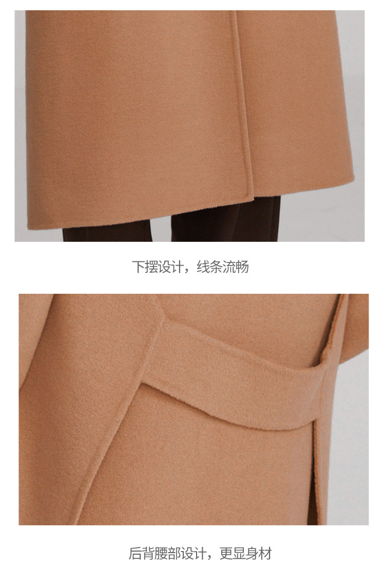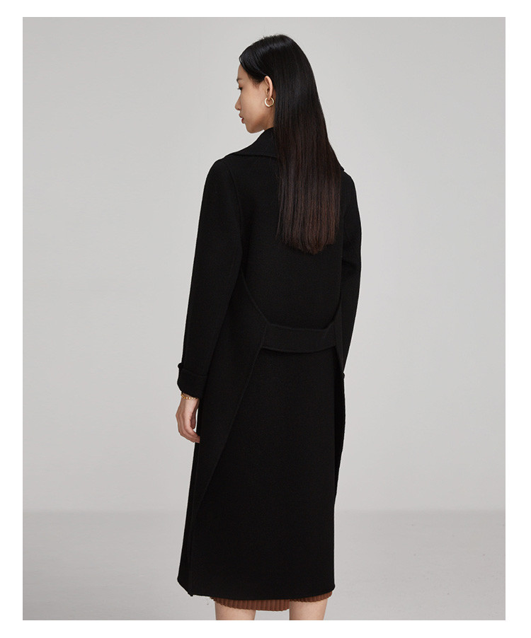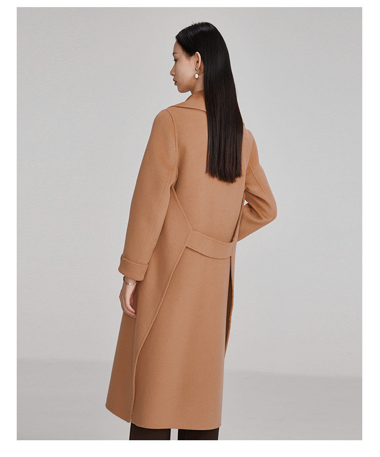秋冬日常系带羊毛大衣女式长款100%绵羊毛双面呢外套 832479