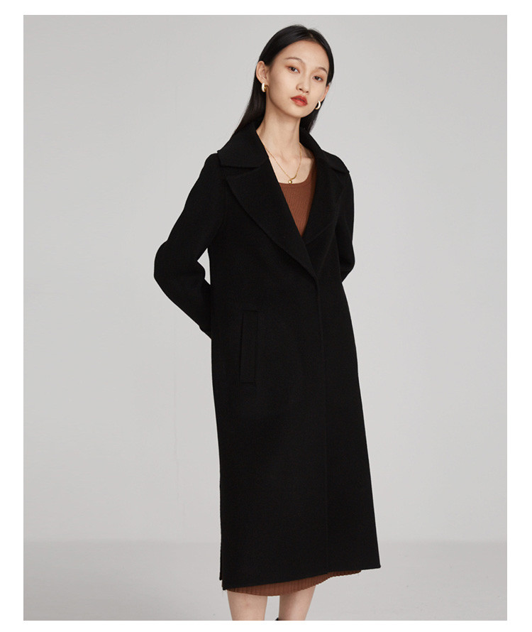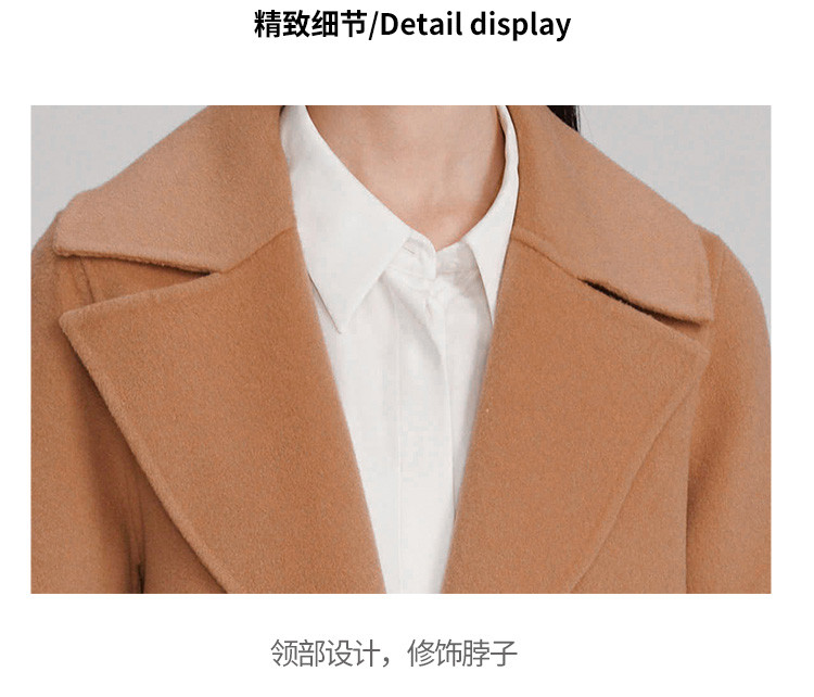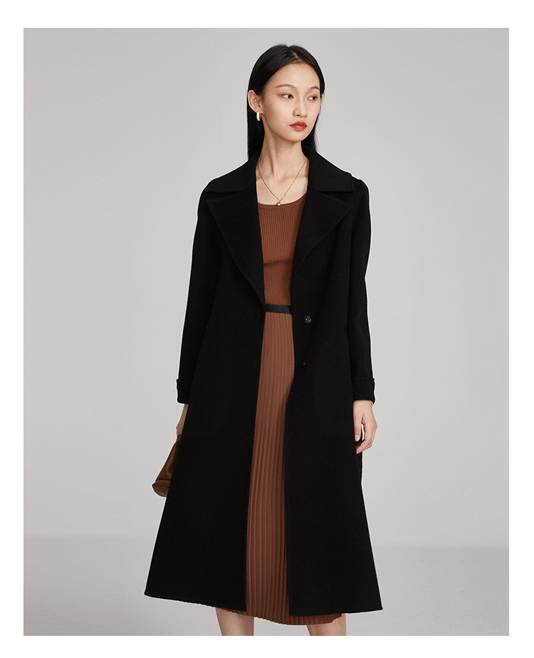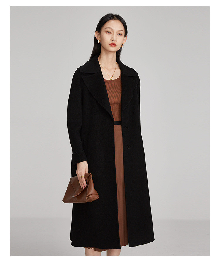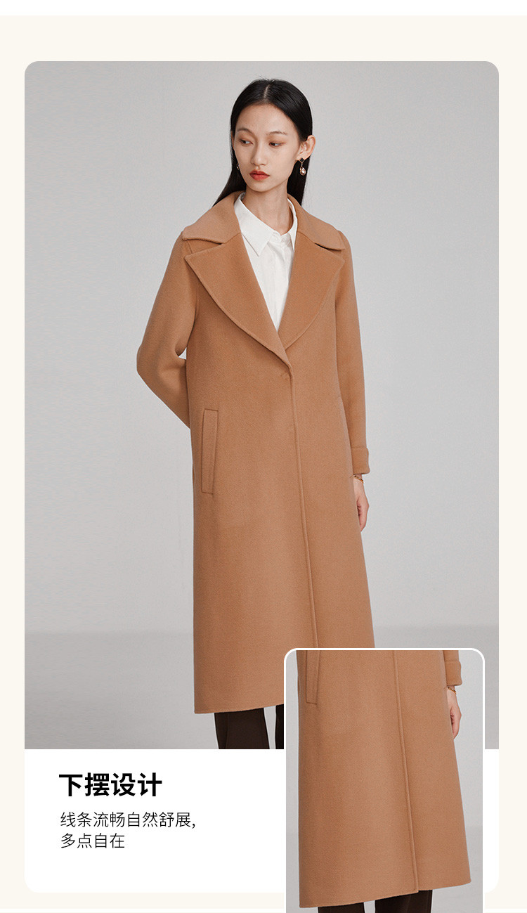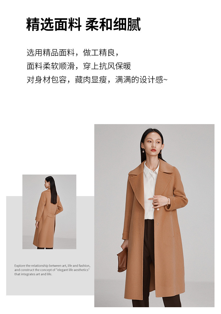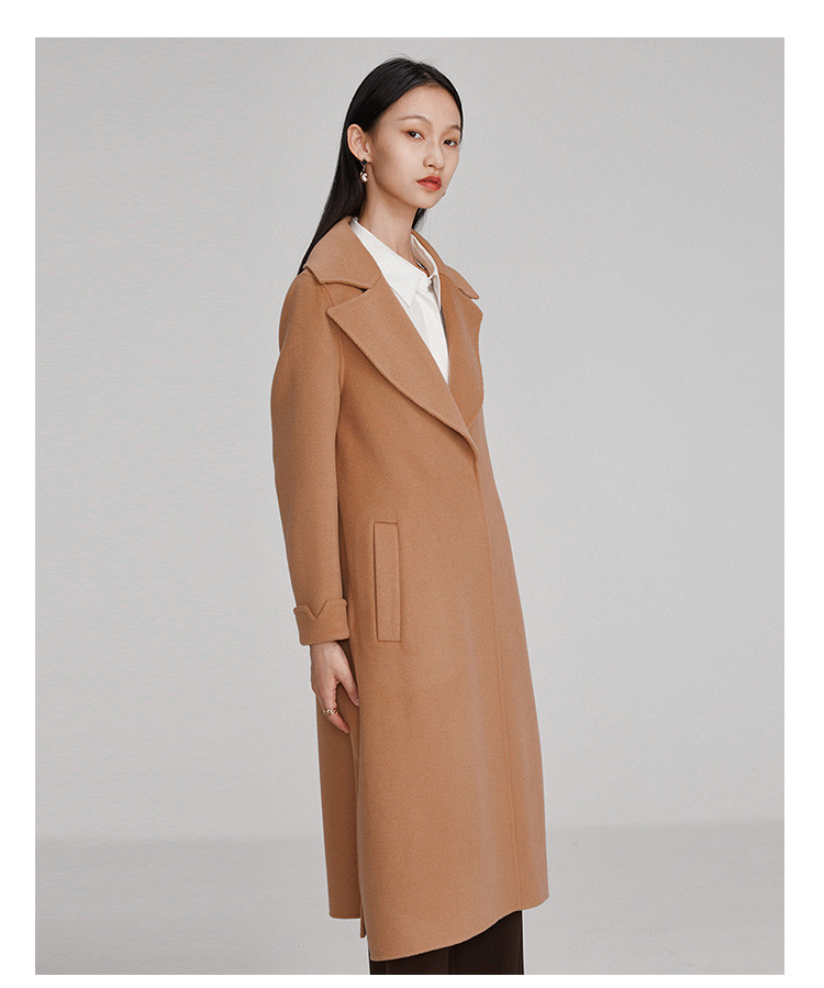 秋冬日常系带羊毛大衣女式长款100%绵羊毛双面呢外套 832479