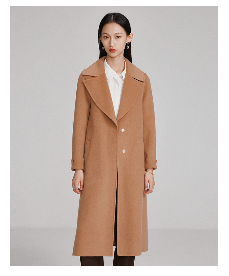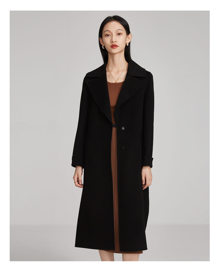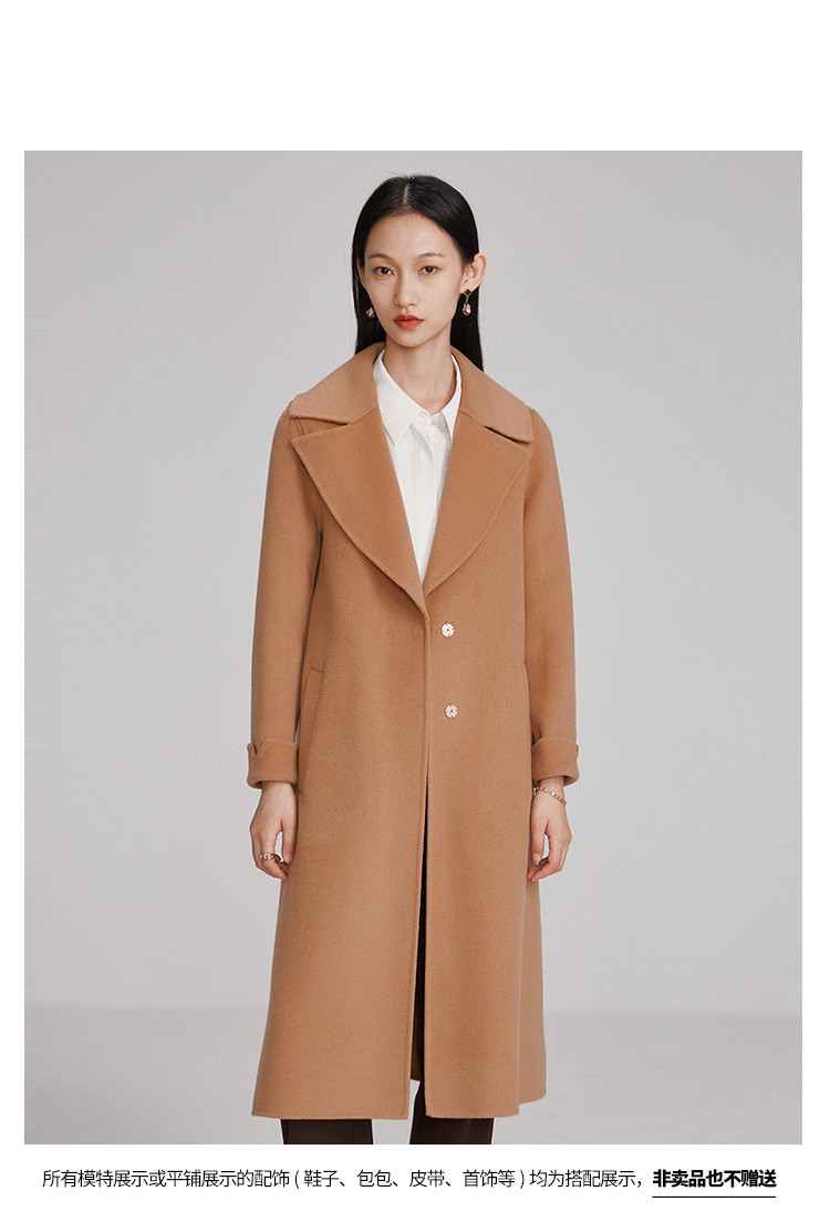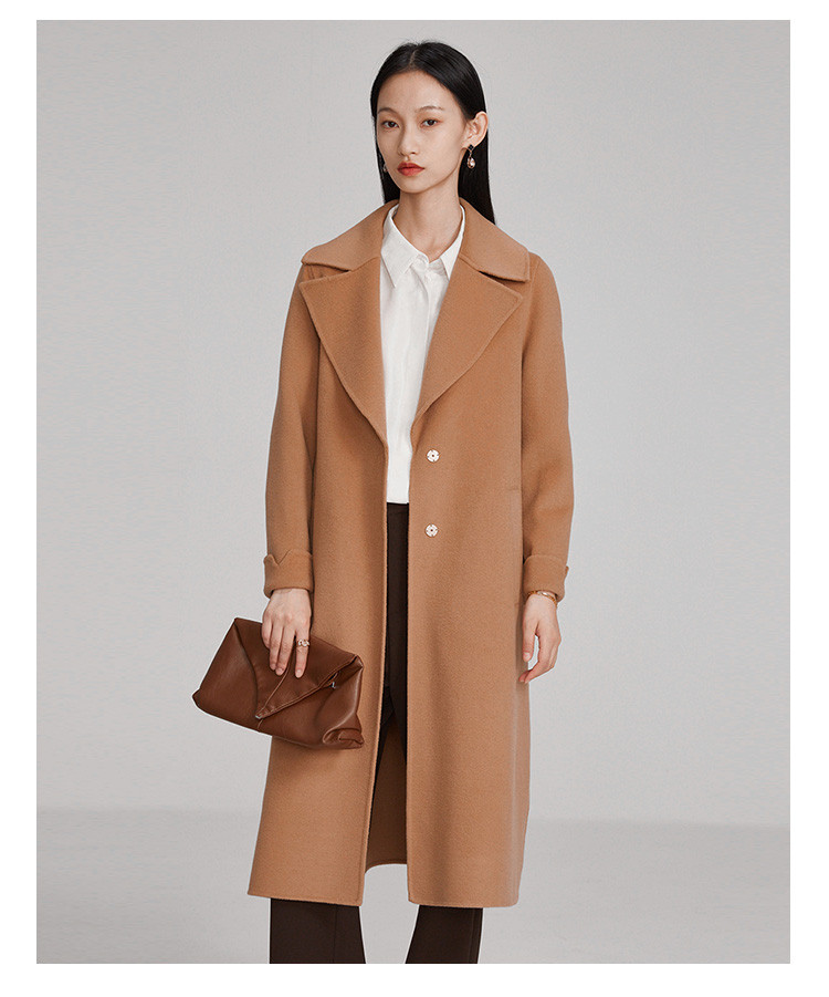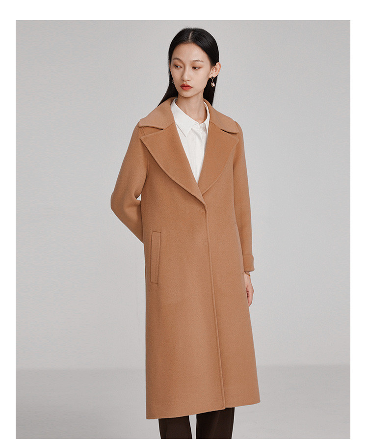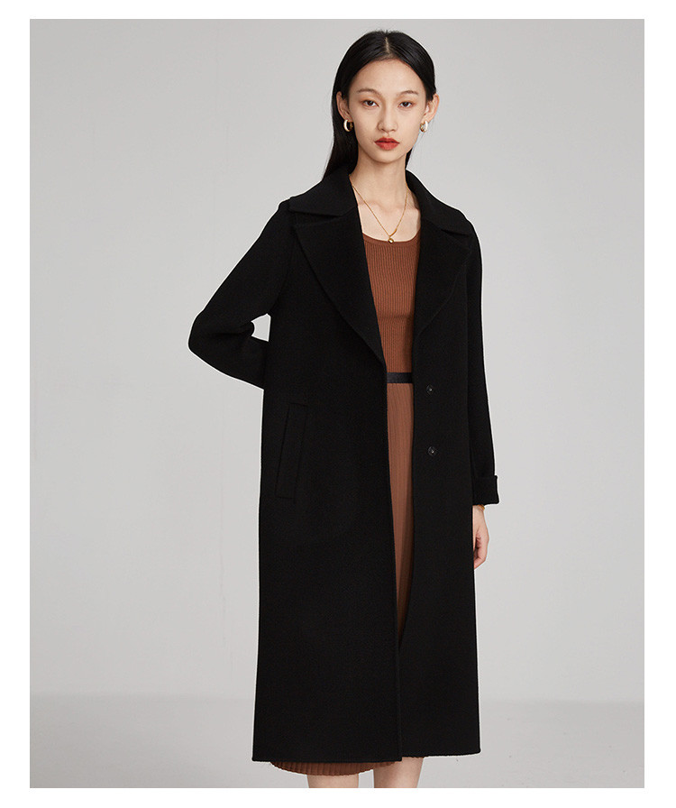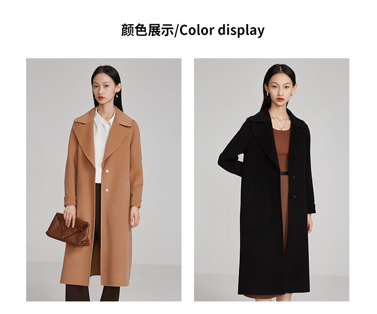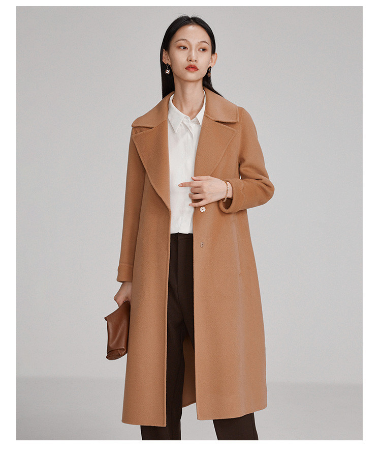 秋冬日常系带羊毛大衣女式长款100%绵羊毛双面呢外套 832479