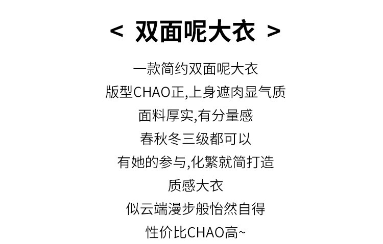 商品名称:秋冬日常系带羊毛大衣女式长款100%绵羊毛双面呢外套 832479