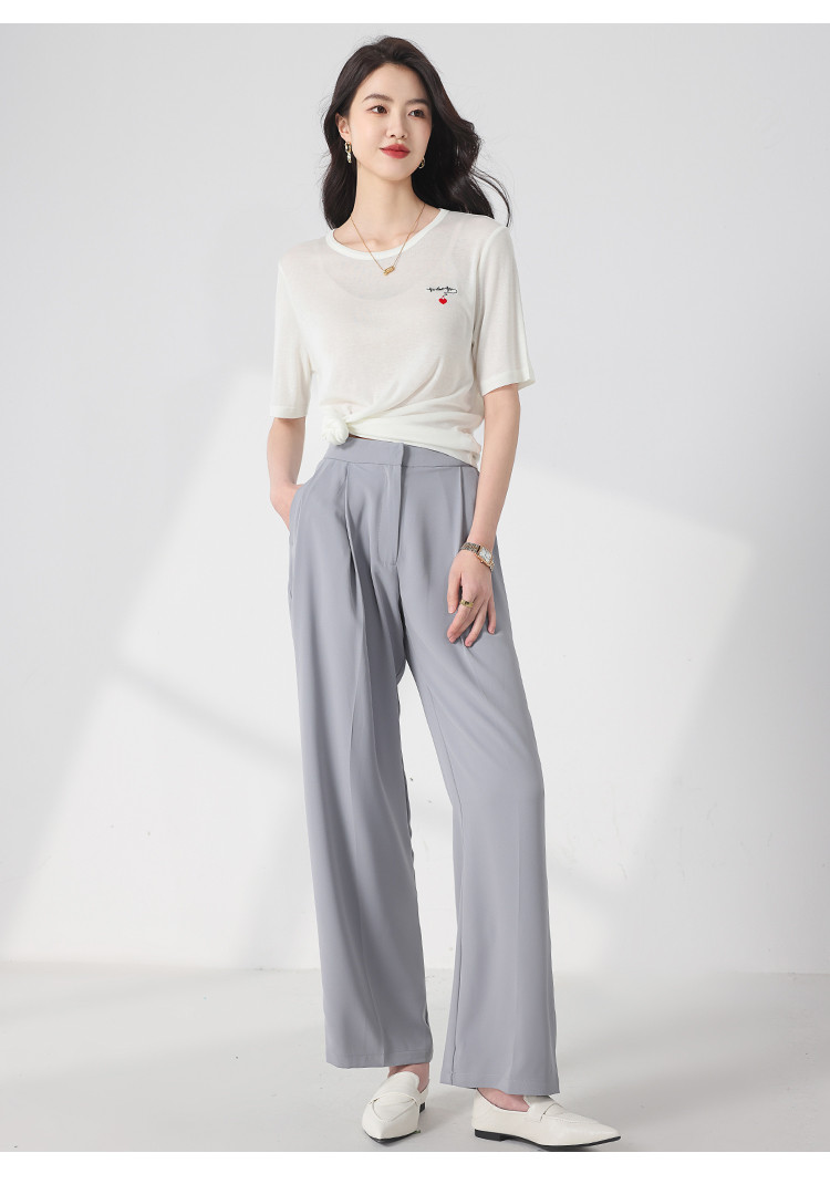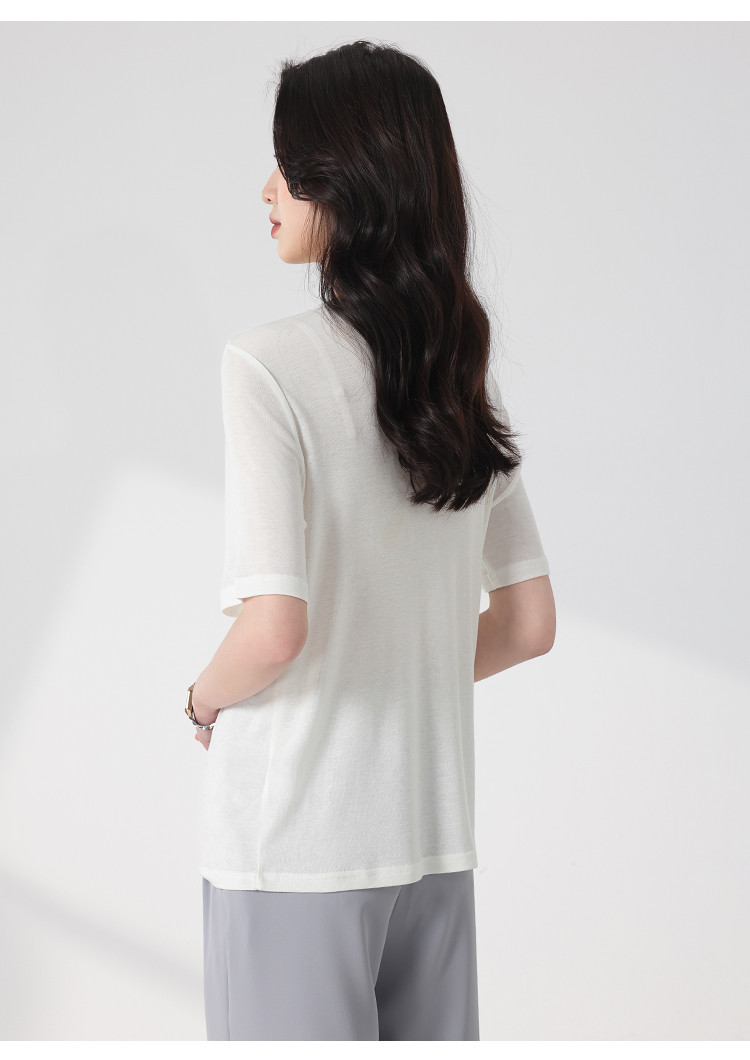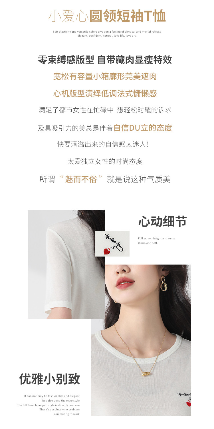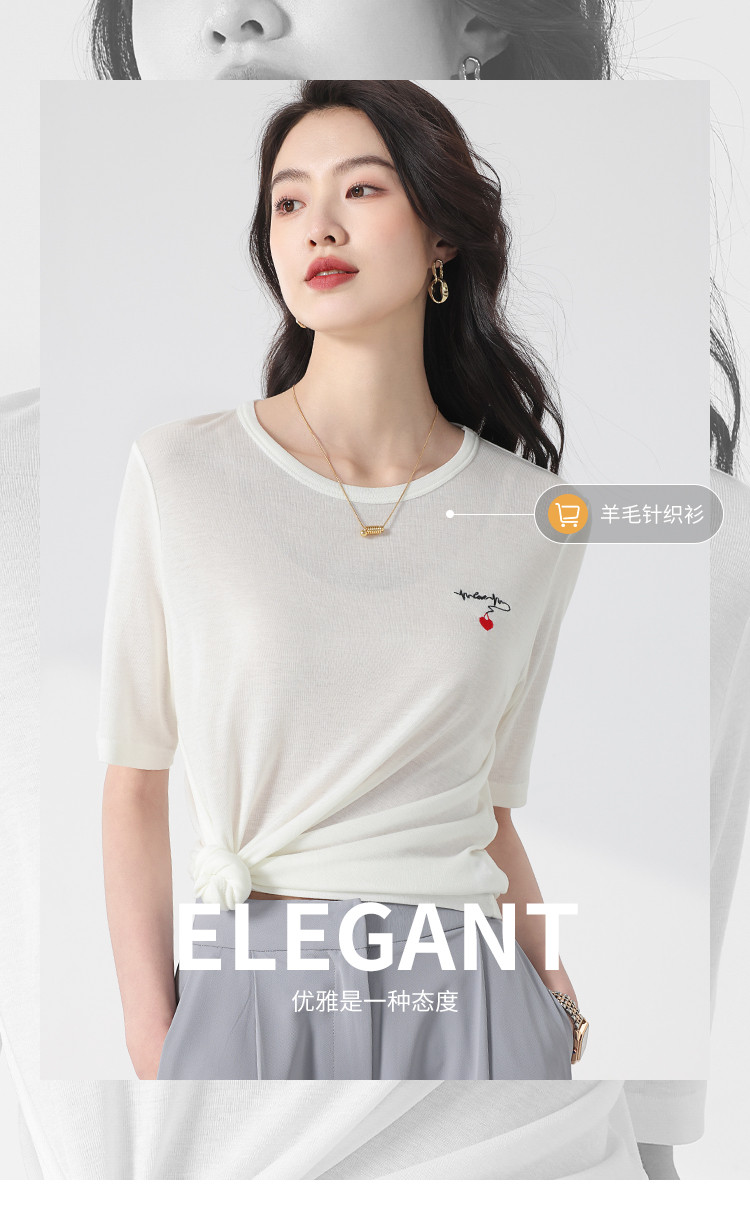 商品名称:简约百搭纯色刺绣爱心圆领含绵羊毛针织打底短袖T恤轻薄透气 265427