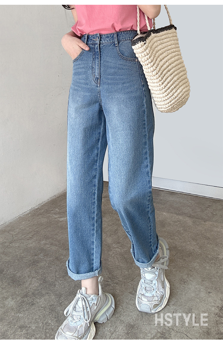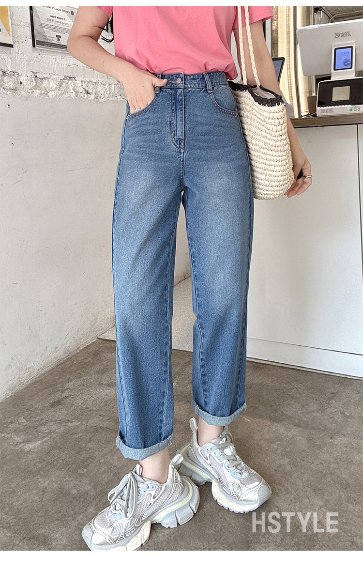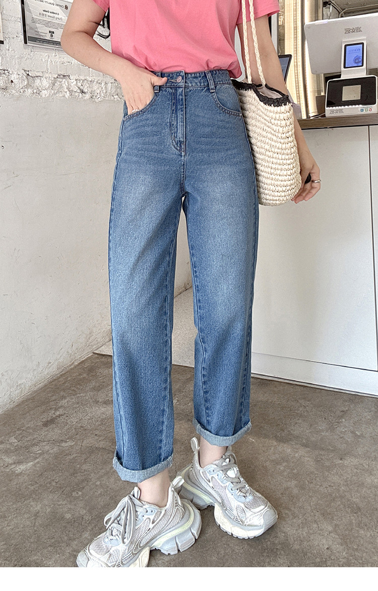 【高腰直筒裤】25夏季含莱赛尔新款休闲百搭洗水长裤牛仔裤女 868442