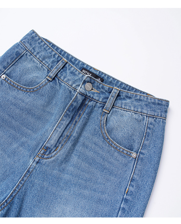 【高腰萝卜裤】夏季款侧缝拼片复古牛仔肌理女牛仔长裤 109835