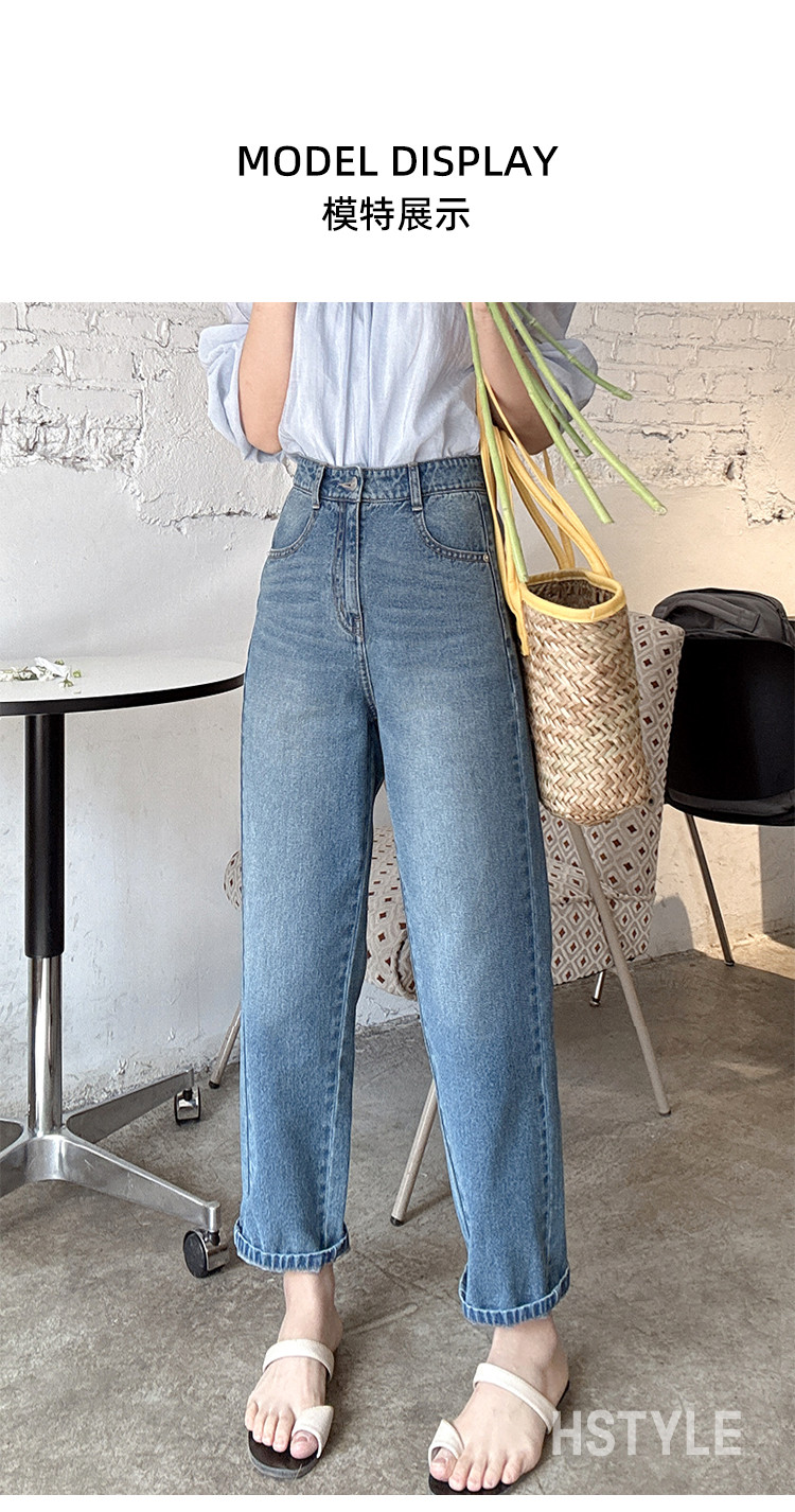 商品名称:【高腰萝卜裤】夏季款侧缝拼片复古牛仔肌理女牛仔长裤 109835