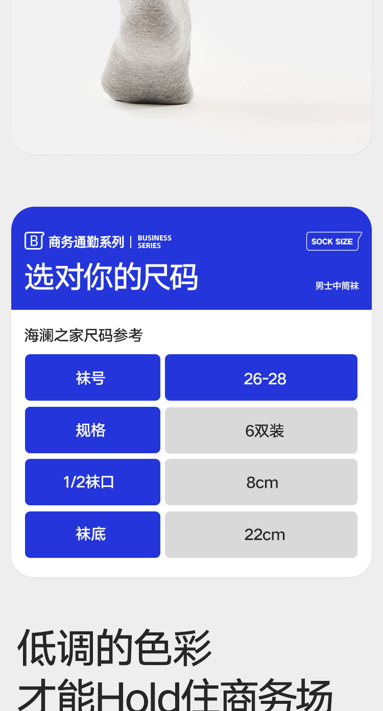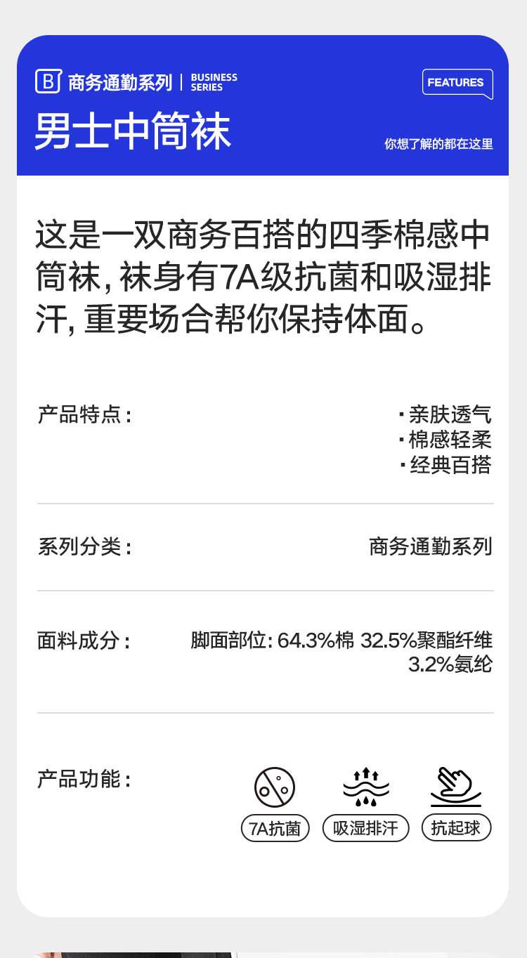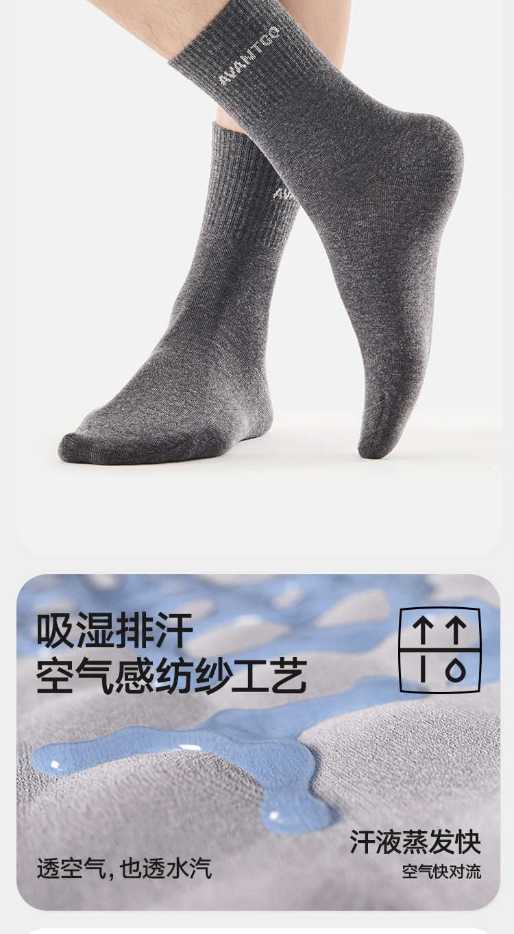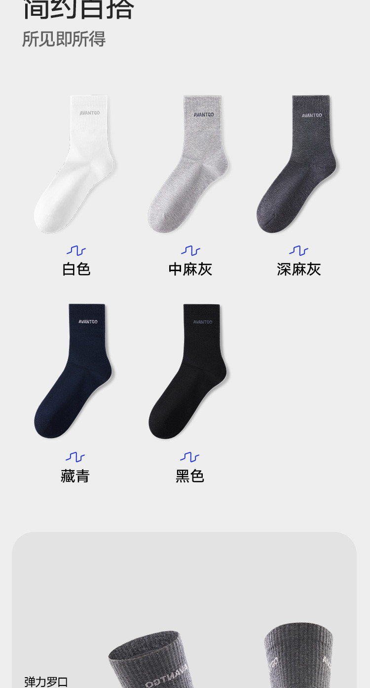 商品名称:【7A抑菌 吸湿排汗】6双装男士中筒袜棉柔透气纯色商务袜子男 310042