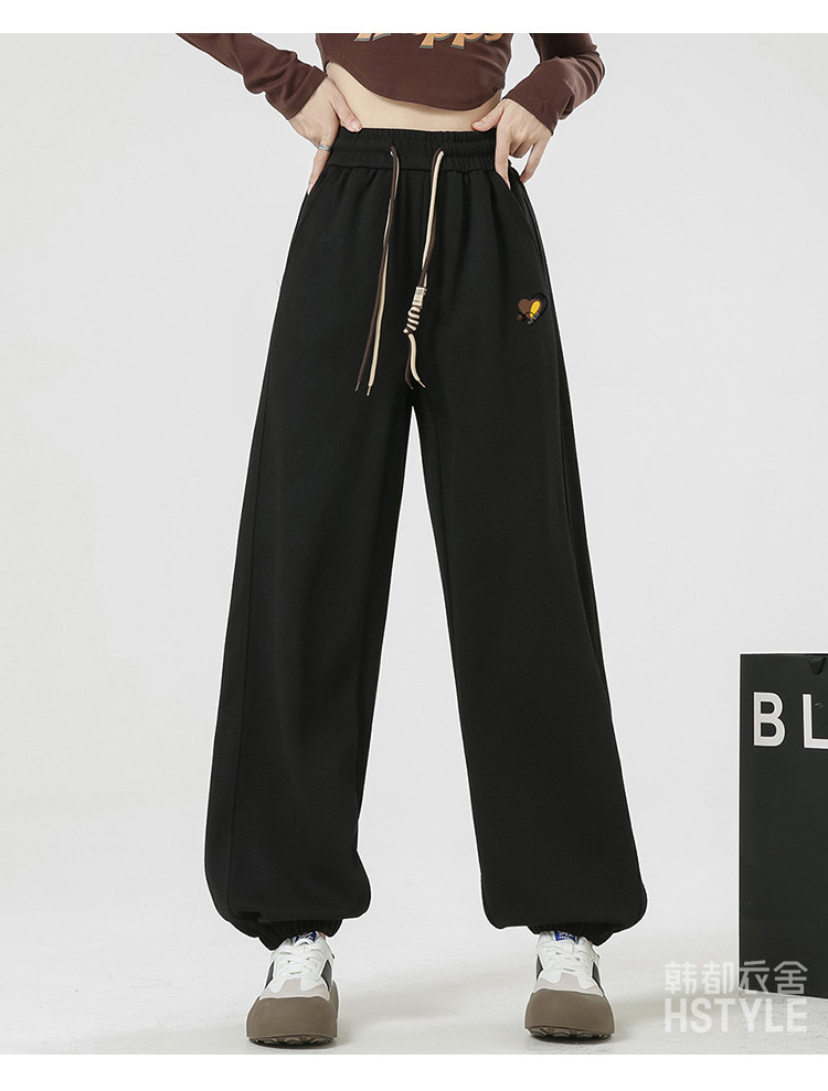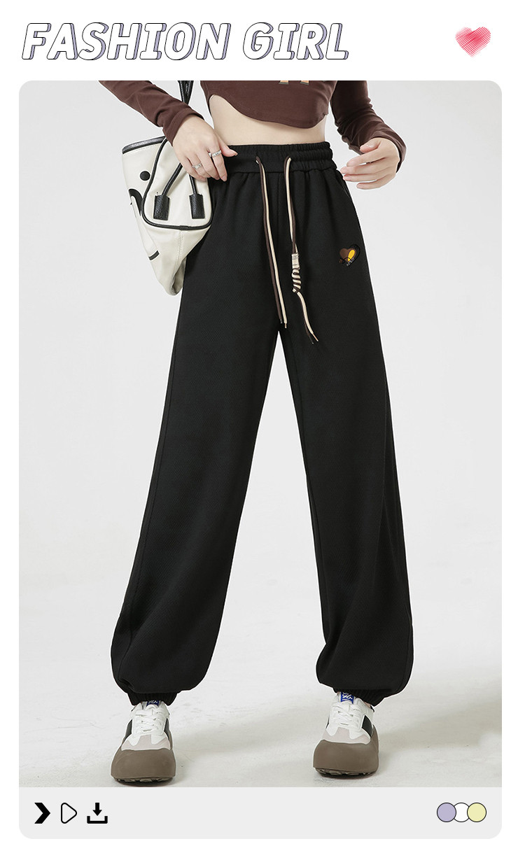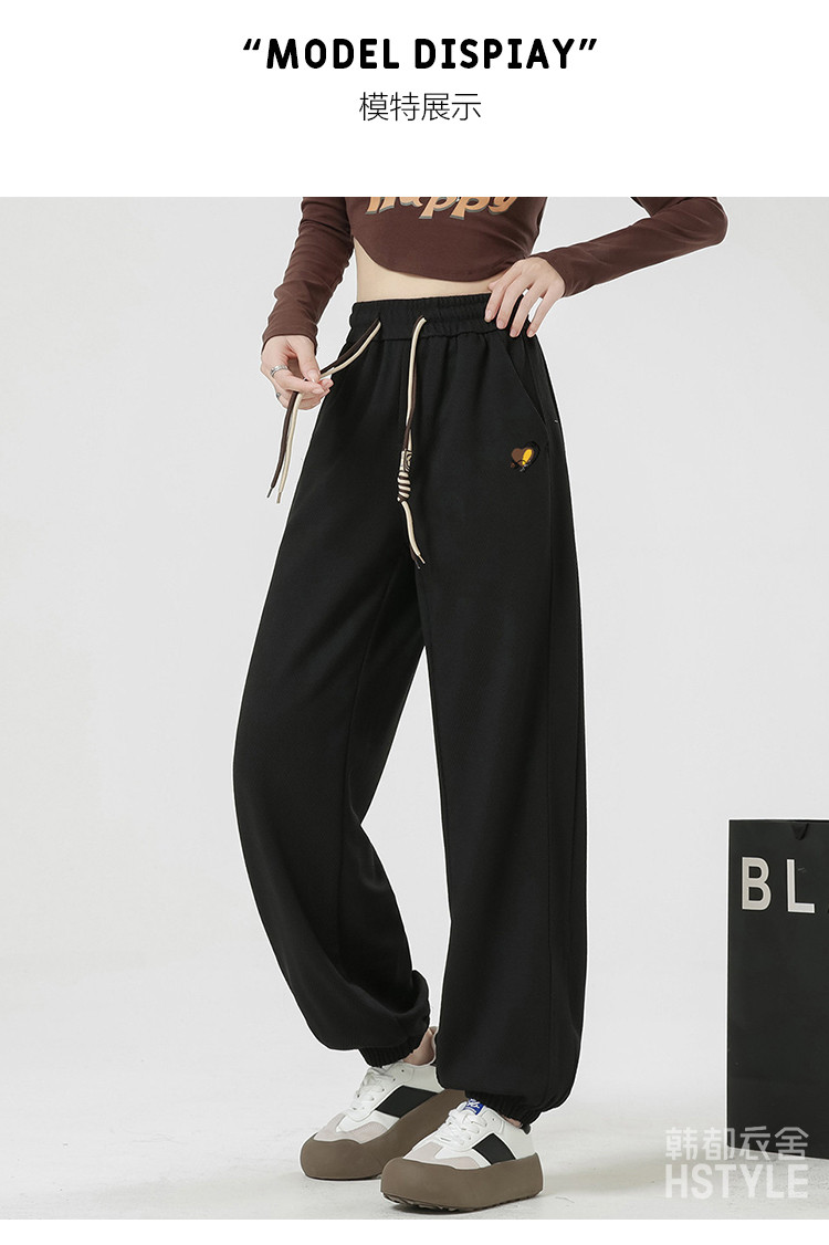 商品名称:【抽绳拼色设计感侧拼卫裤女】春秋款简约运动休闲裤女束脚裤 573003