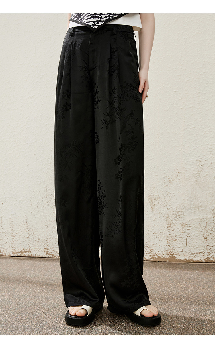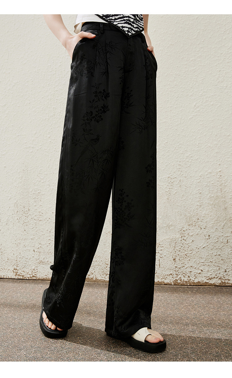 商品名称:国风新中式高腰百搭显瘦女式休闲裤夏季提花设计感直筒裤 883165