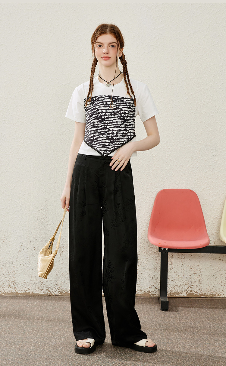 国风新中式高腰百搭显瘦女式休闲裤夏季提花设计感直筒裤 883165