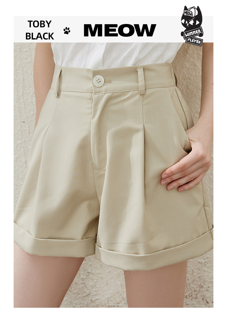 商品名称:高腰宽松显瘦阔腿西装裤夏季纯色简约设计短款女式休闲裤 374365