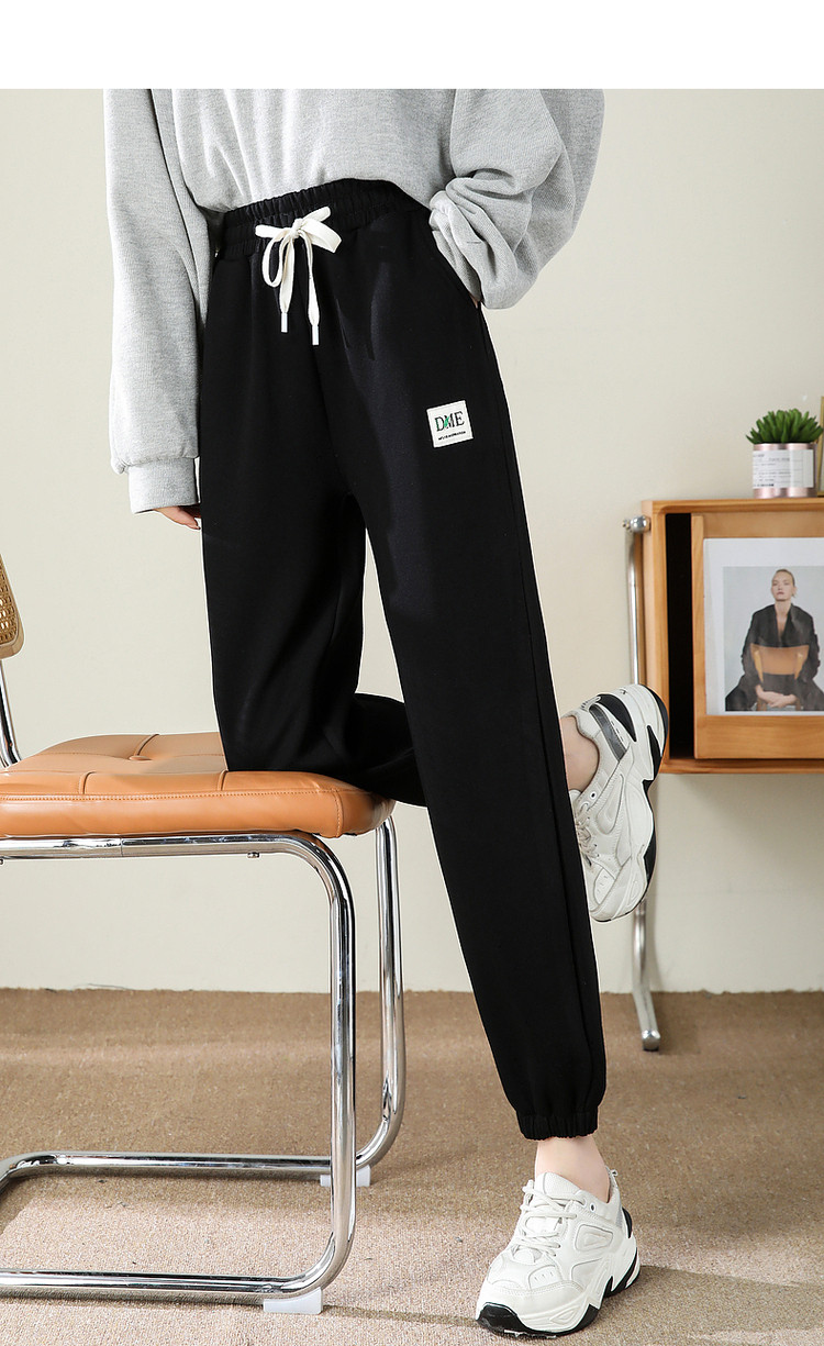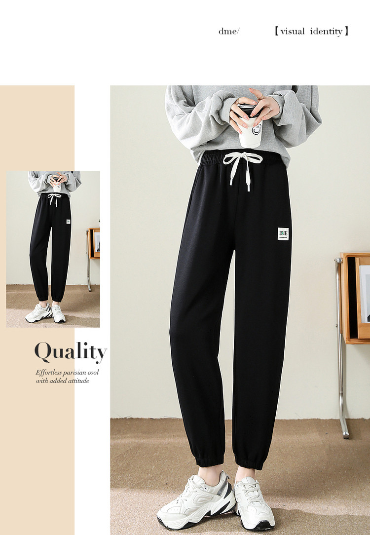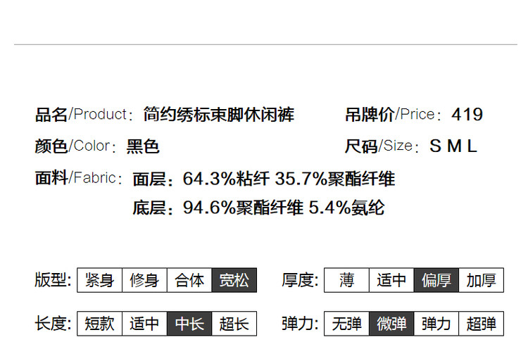 商品名称:【绣标束脚裤】秋季通勤中腰宽松微弹长裤子女系绳休闲裤 836289