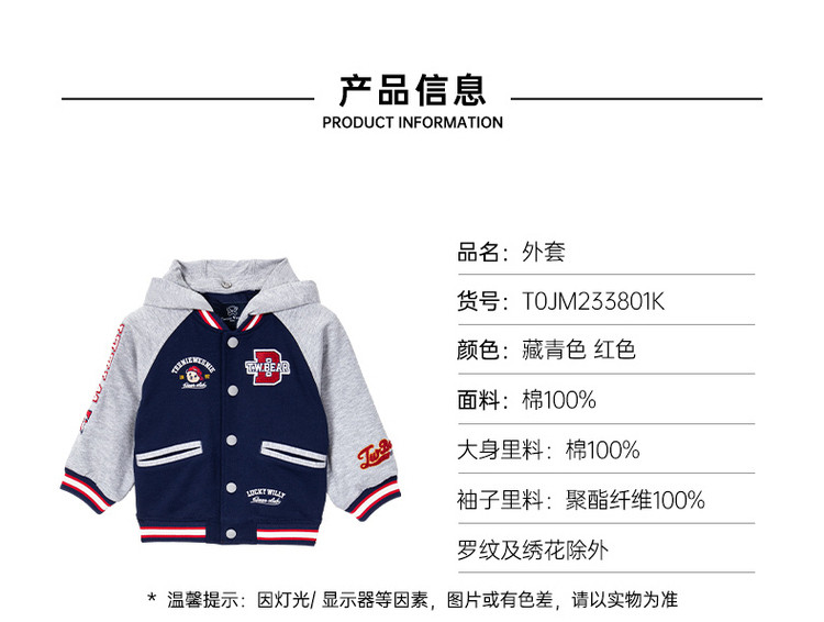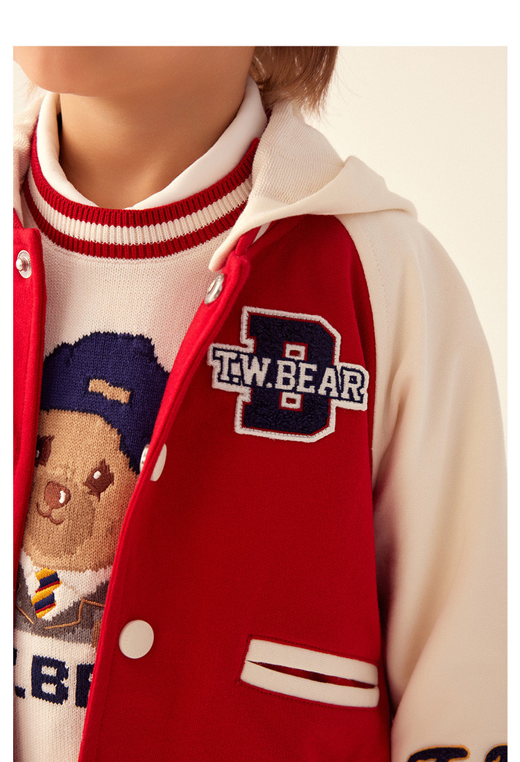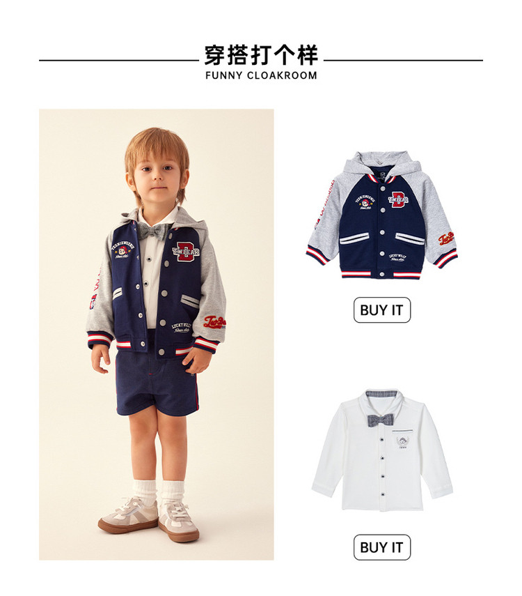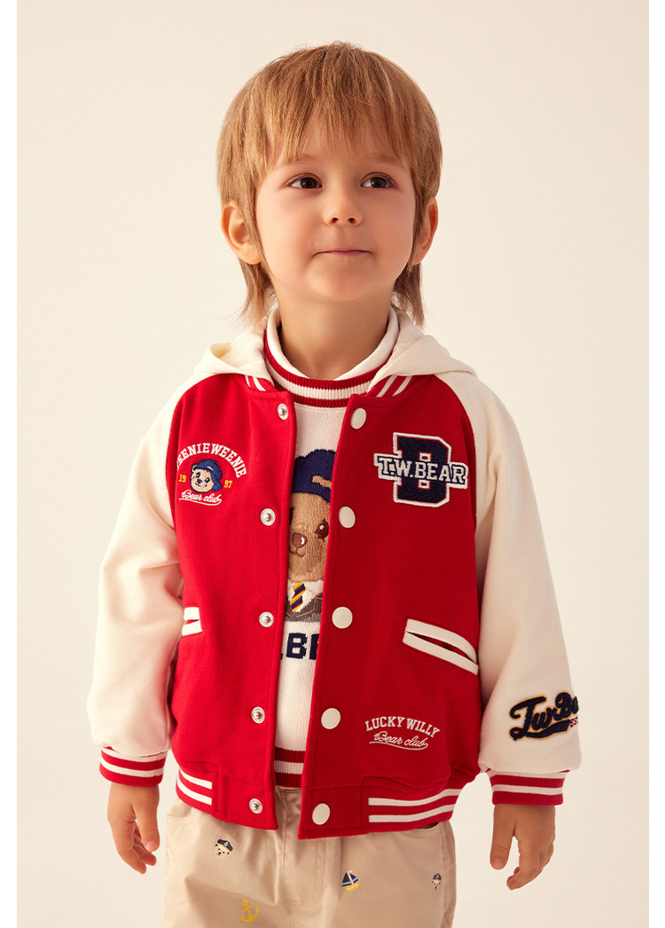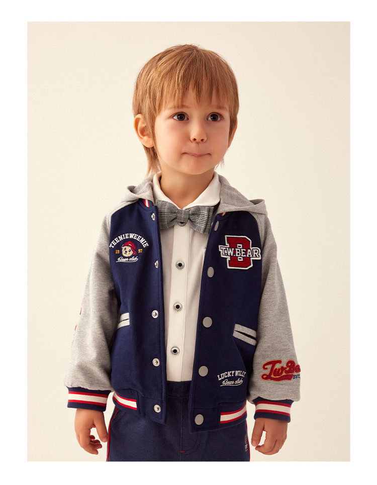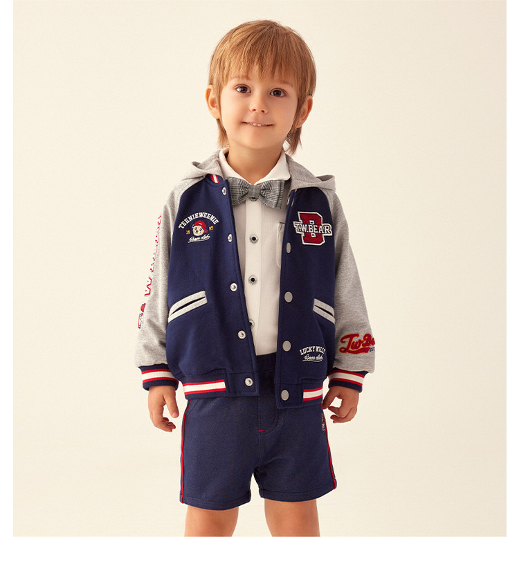 商品名称:小熊童装男宝宝秋季运动熊耳连帽棒球服 843777