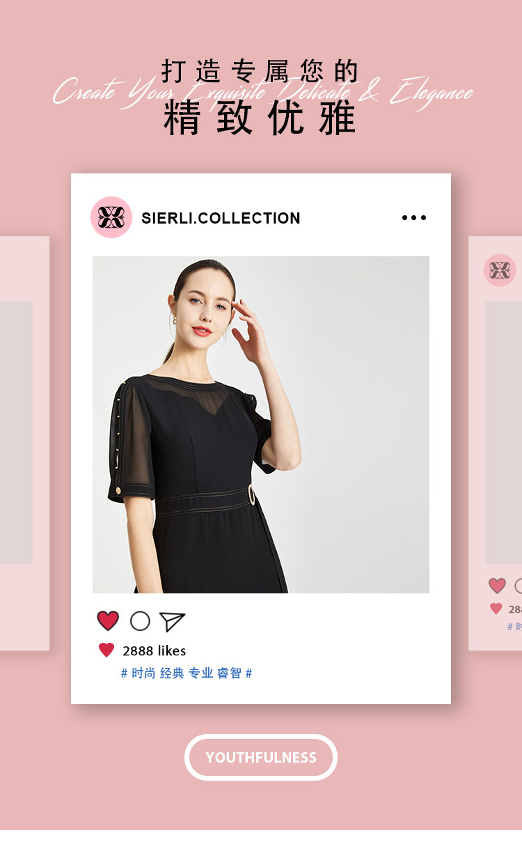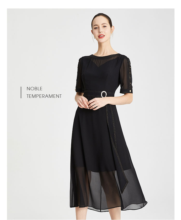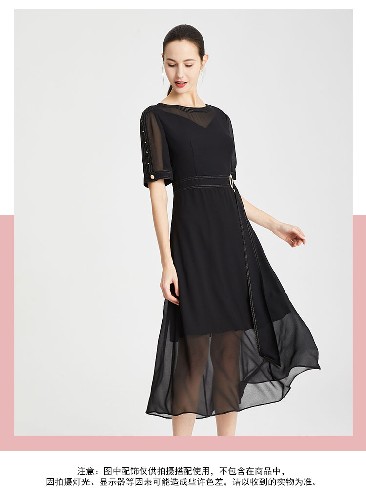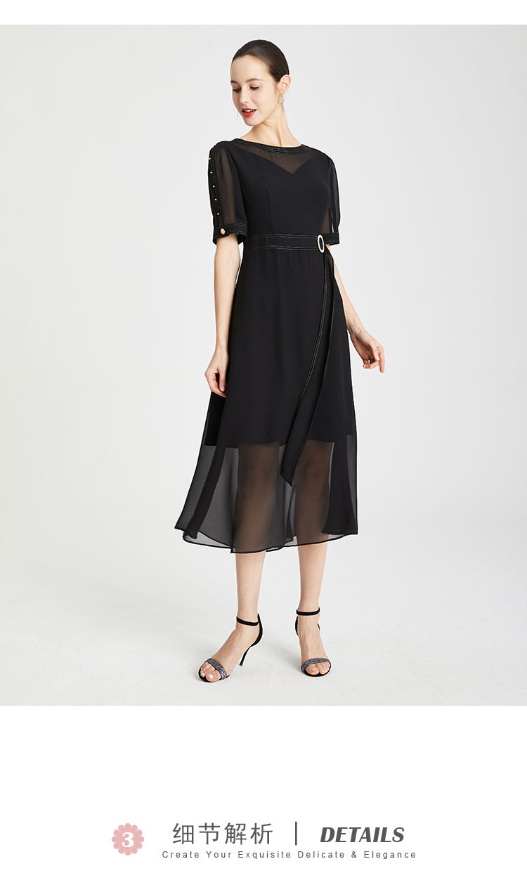 商品名称:秋季简约收腰修身短袖连衣裙 293215
