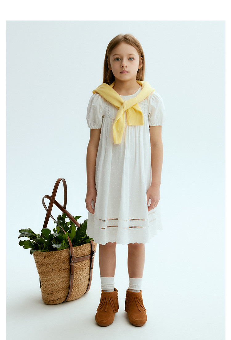 商品名称:小熊童装夏季女童全棉法式泡泡袖连衣裙 584705