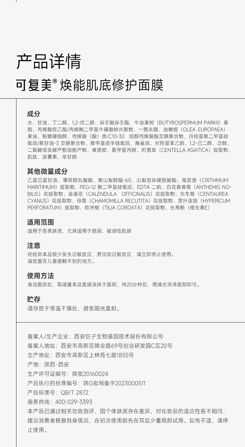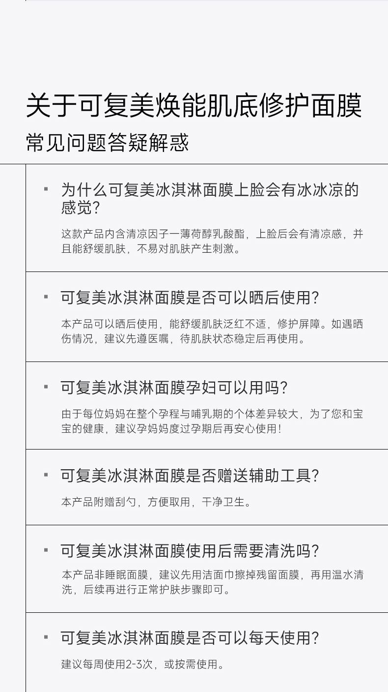 商品名称:可复美 冰激淋涂抹修护面膜 165g 补水保湿 提亮肤色 收缩毛孔 舒感
