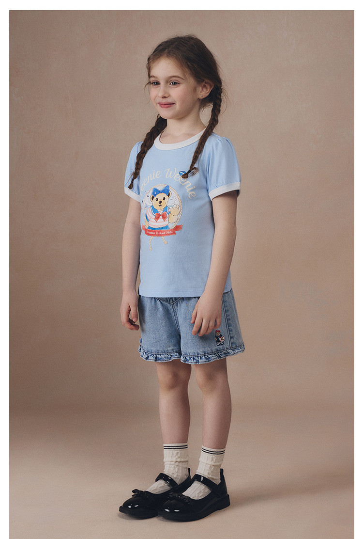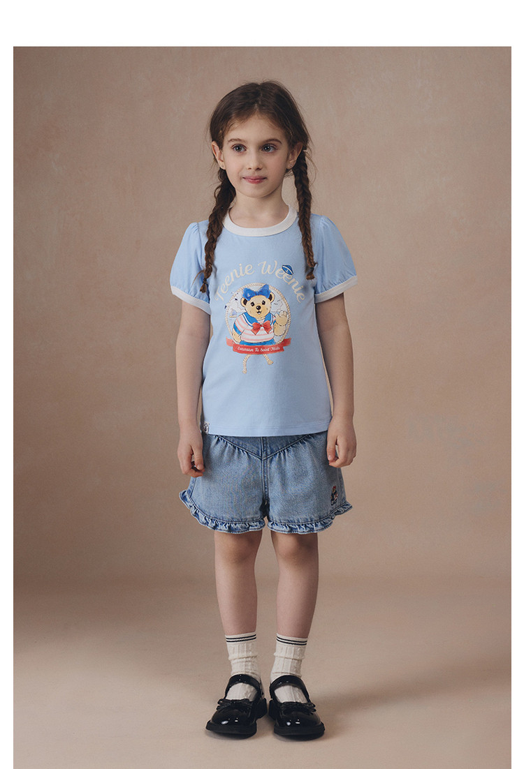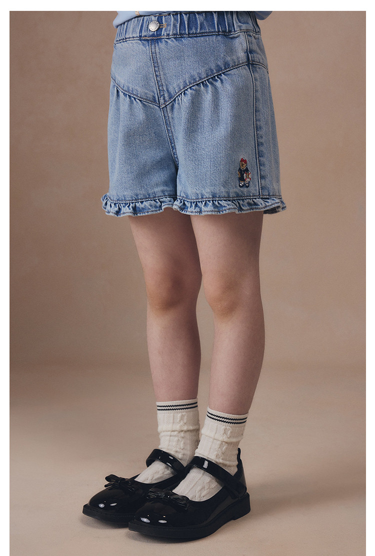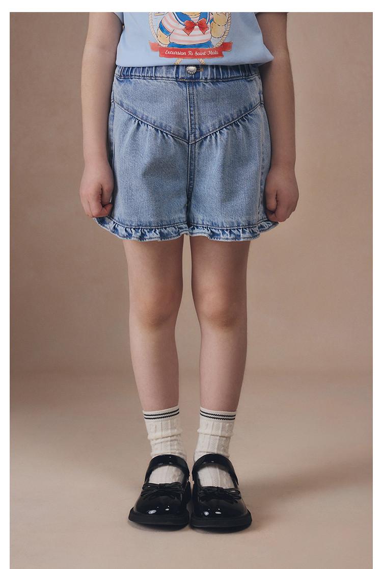 【牛仔裤】小熊童装夏季女童亲肤百搭花边牛仔短裤 407233