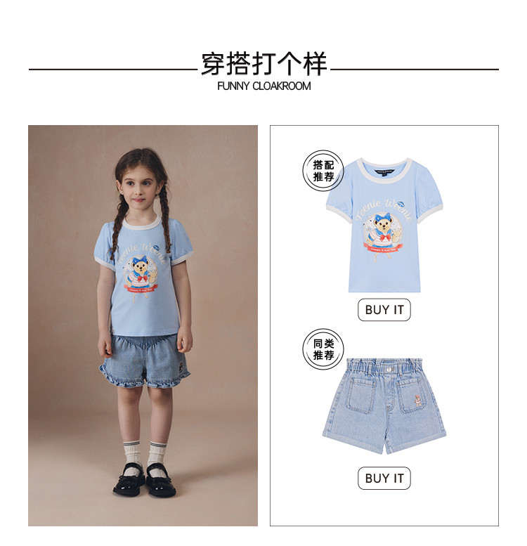 商品名称:【牛仔裤】小熊童装夏季女童亲肤百搭花边牛仔短裤 407233