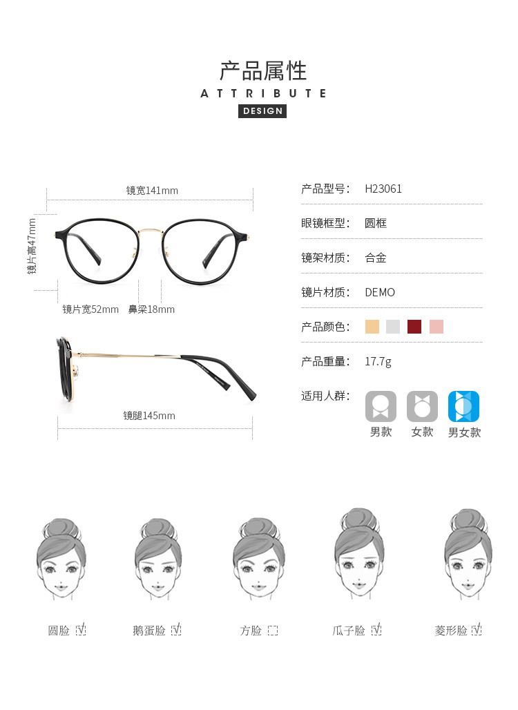 商品名称:海伦凯勒眼镜近视圆框男女款文艺近视眼镜架显脸小 675867