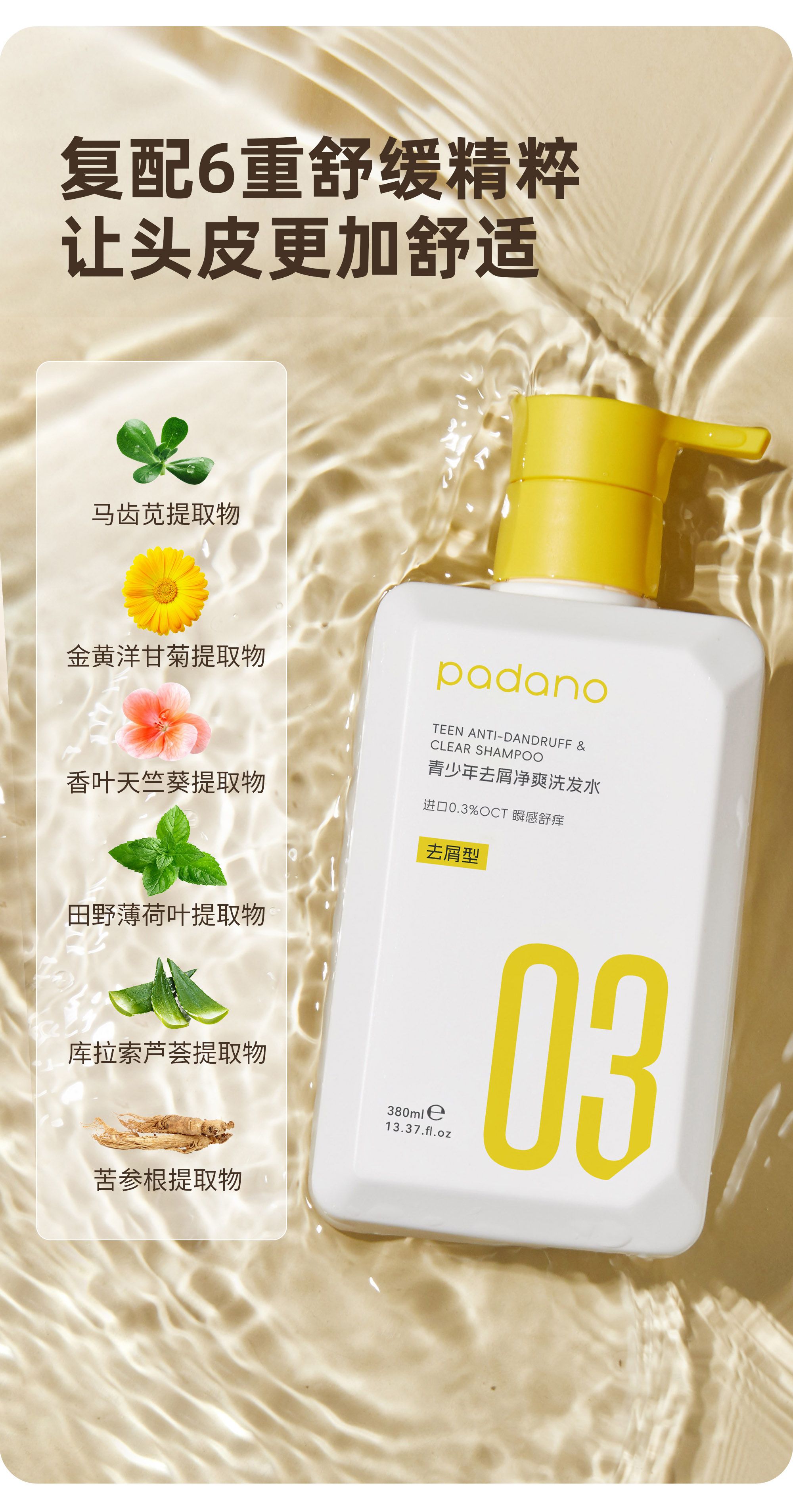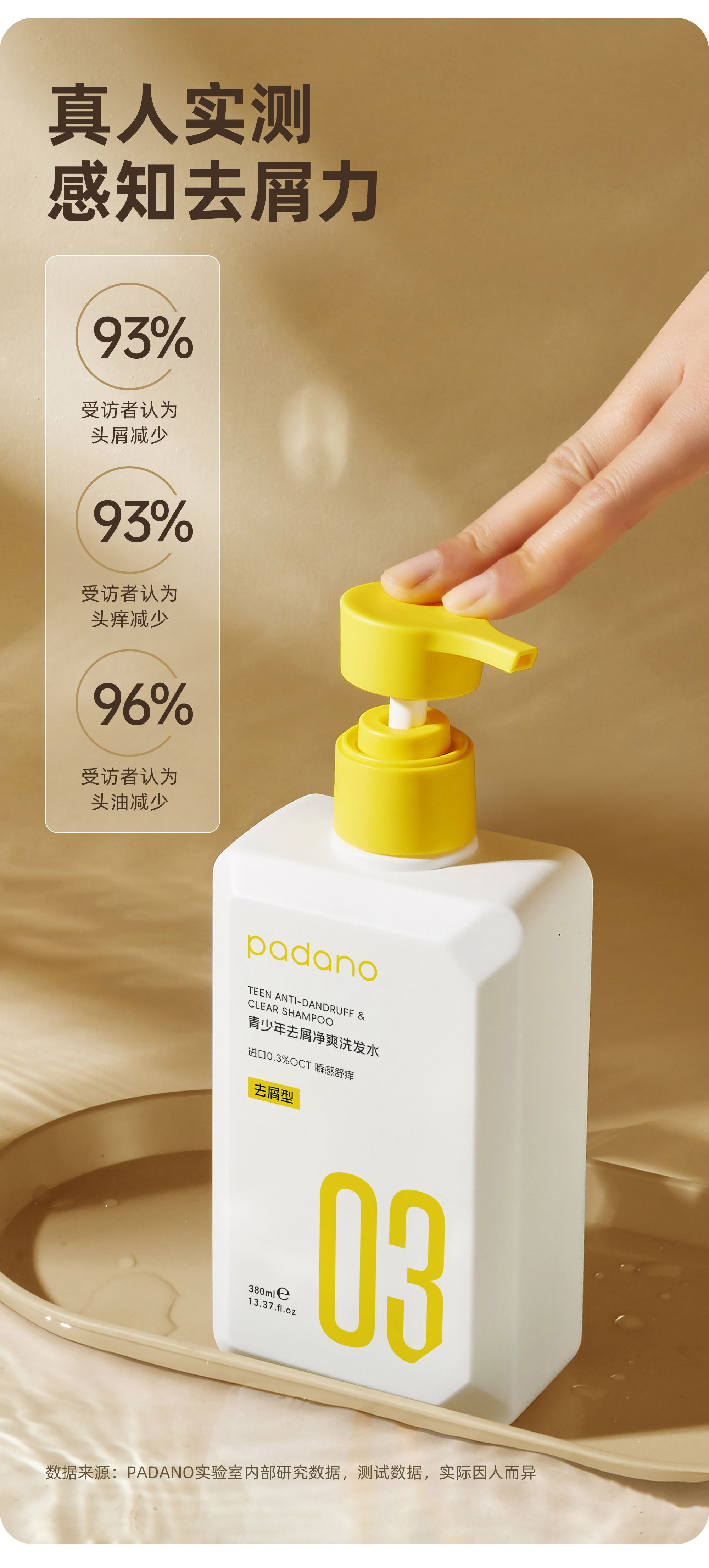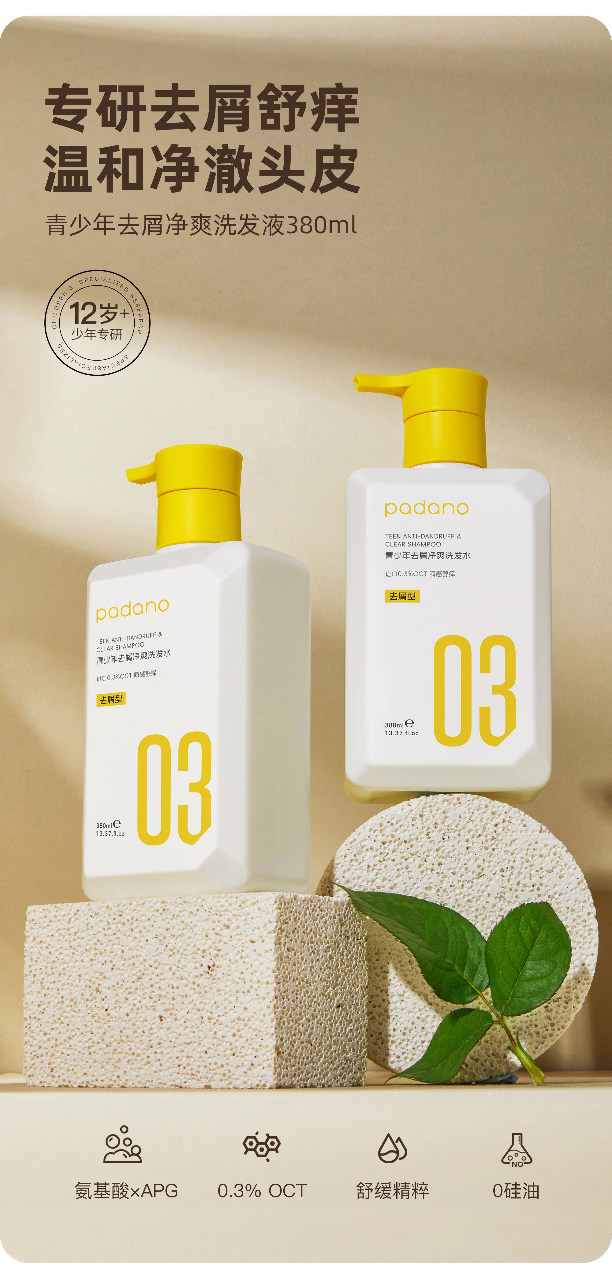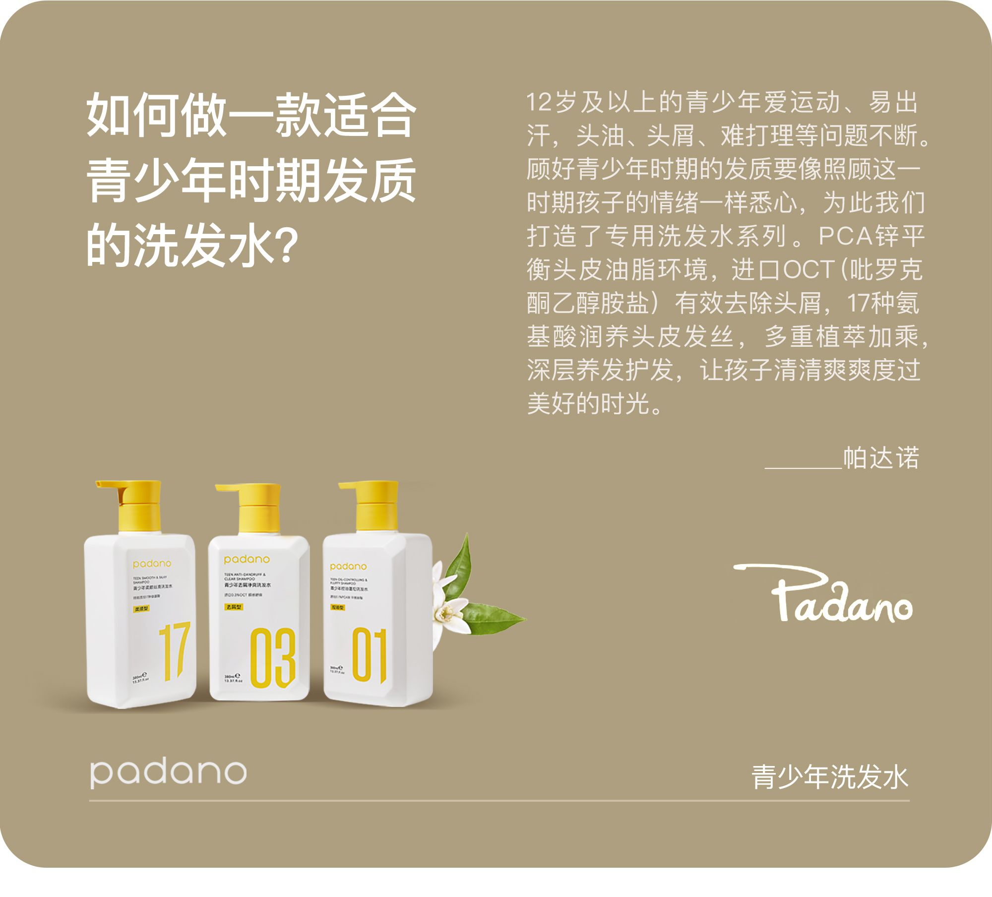 帕达诺青少年控油洗发水蓬松清爽去油洗发露