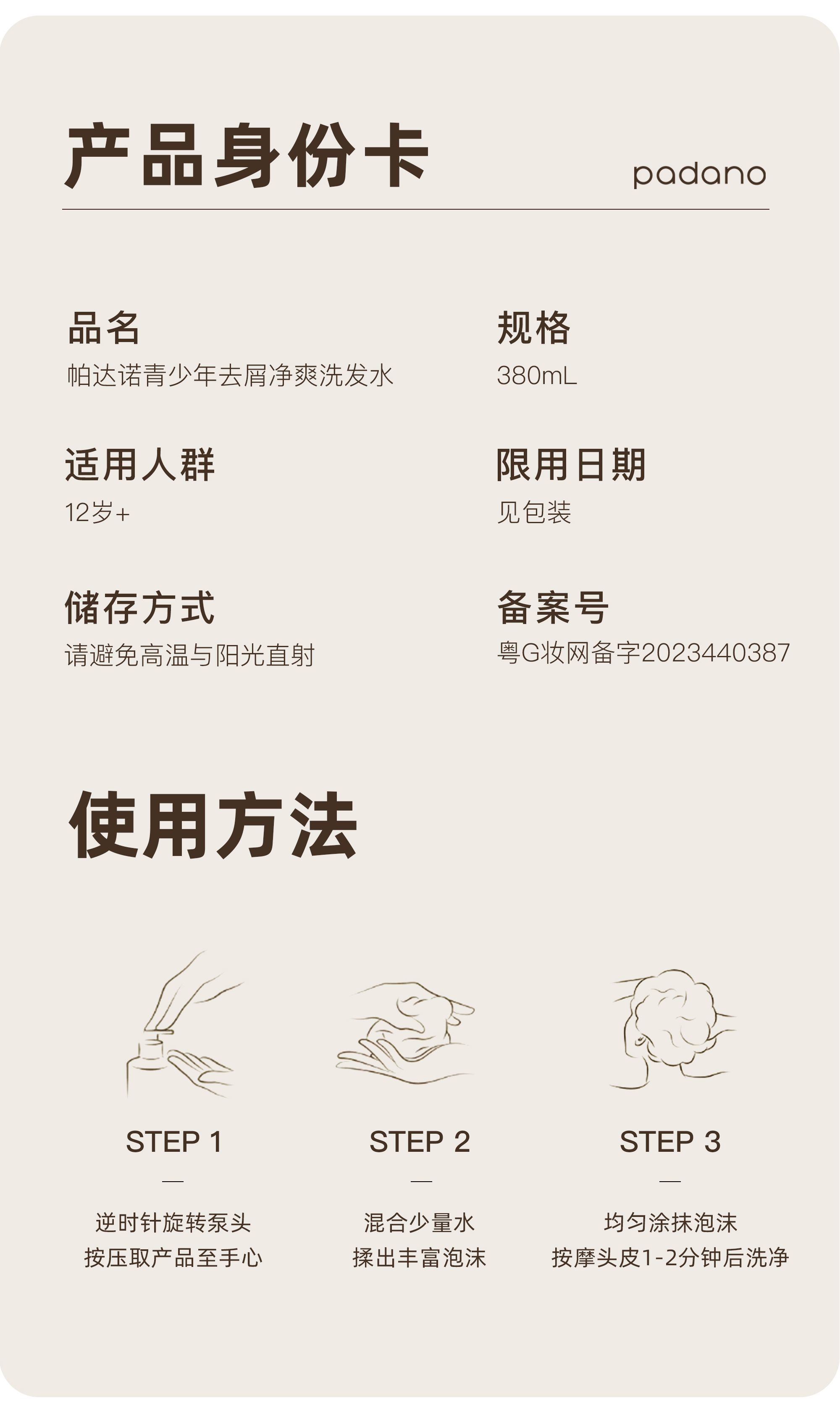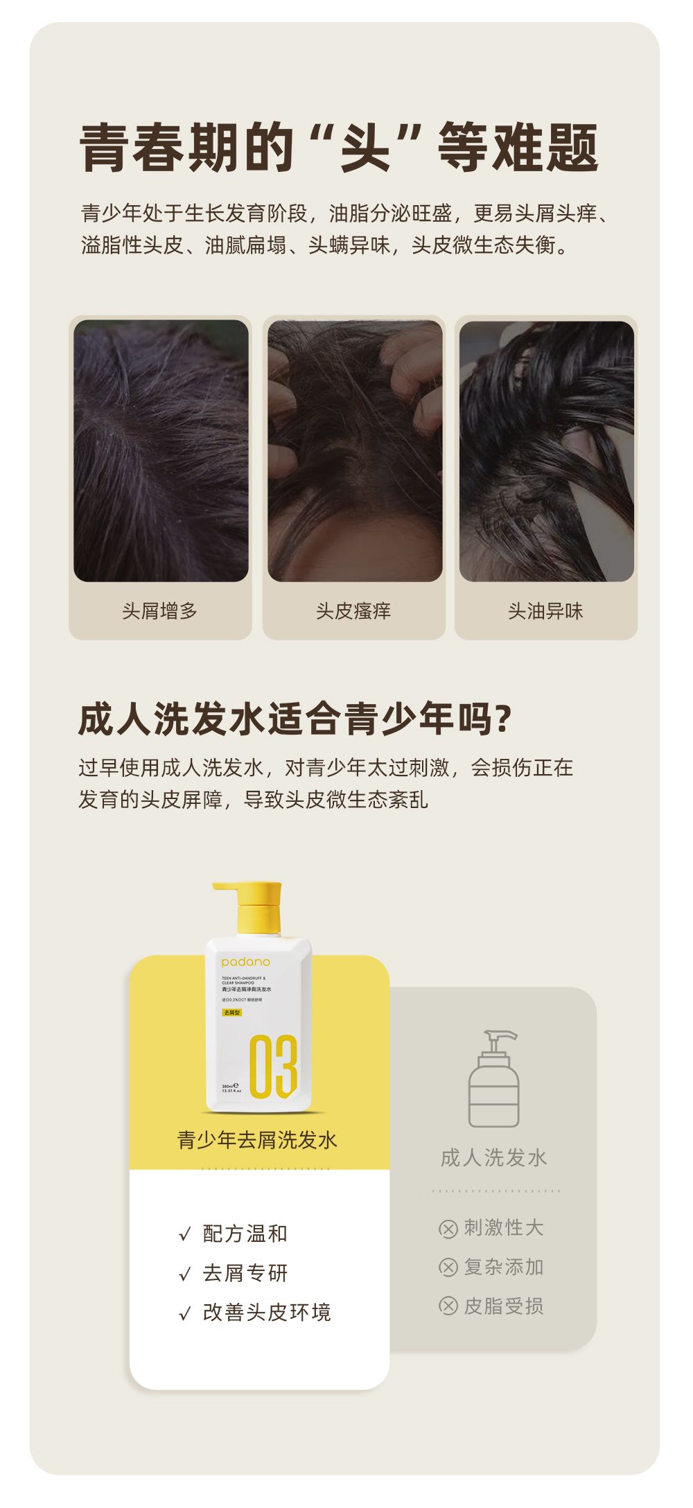 商品名称:帕达诺青少年控油洗发水蓬松清爽去油洗发露