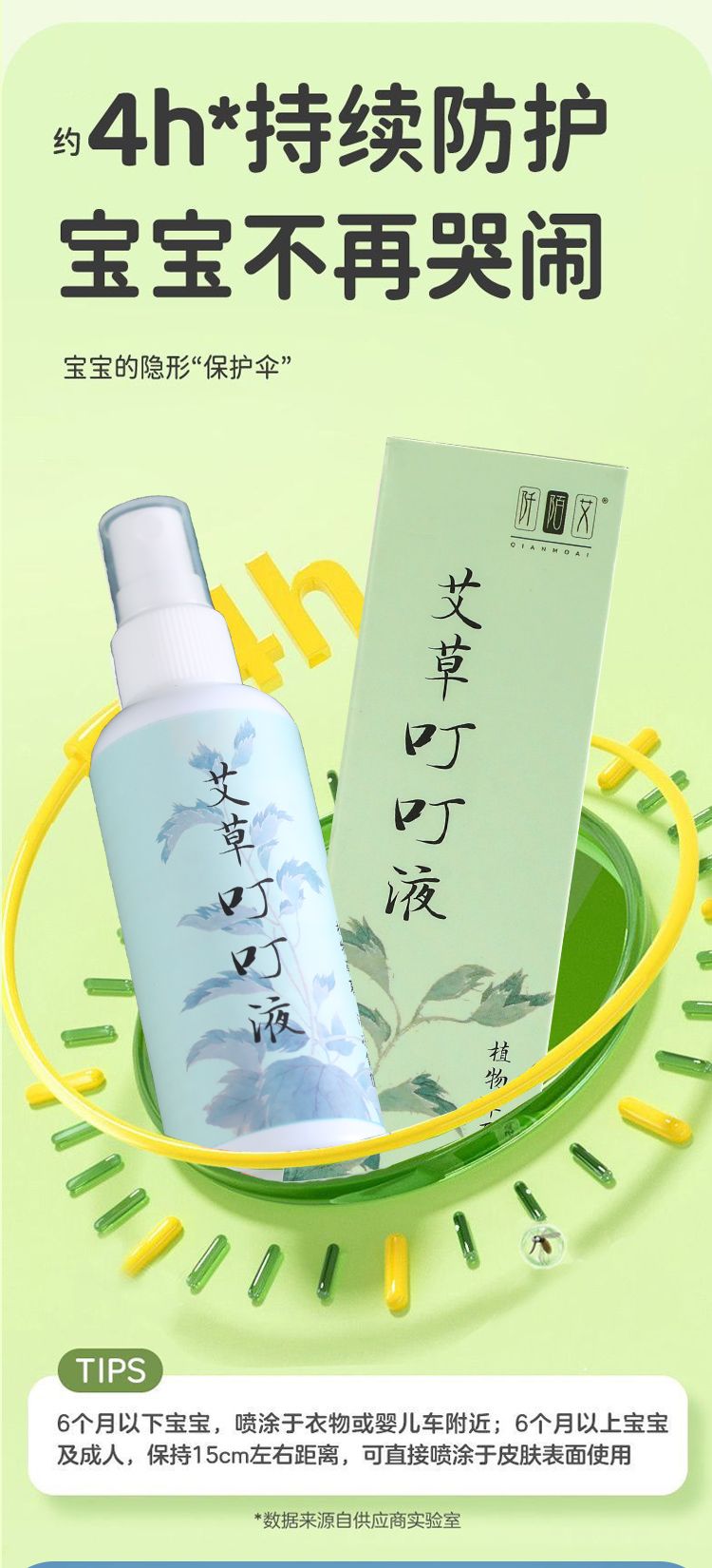 商品名称:阡陌艾艾草叮叮液驱蚊防虫防叮咬喷雾艾草花露水夏季清凉喷雾防叮咬精油
