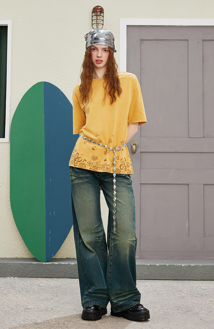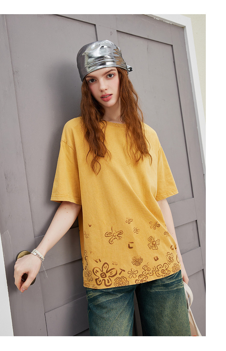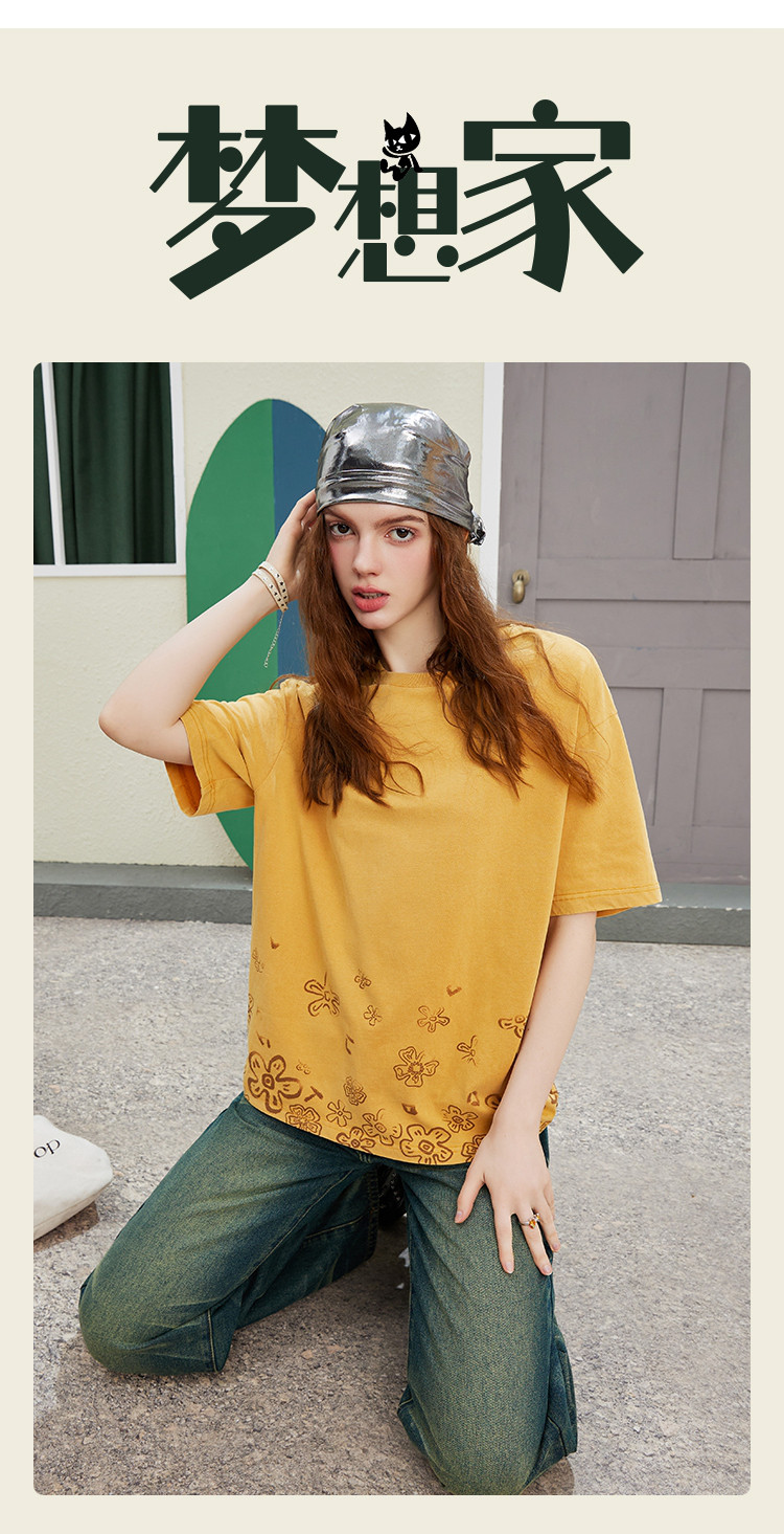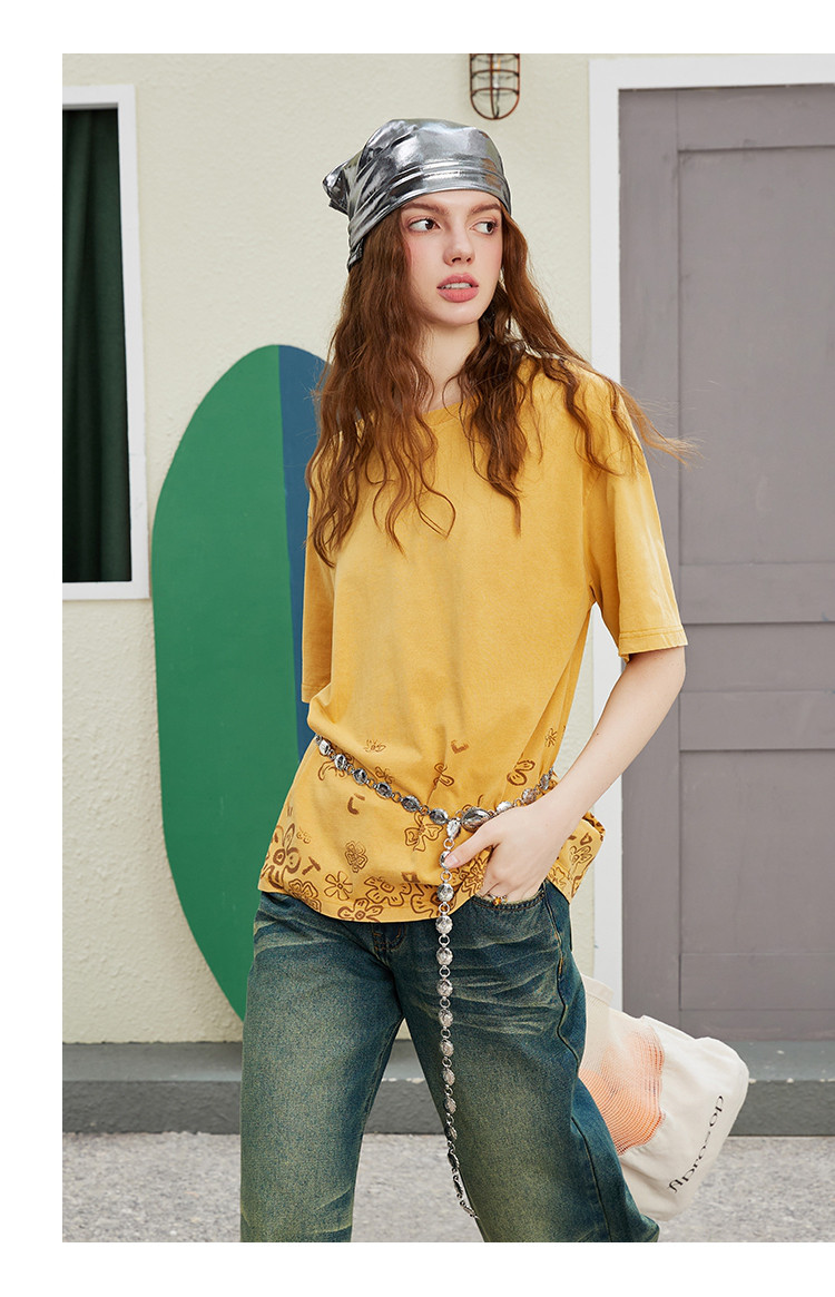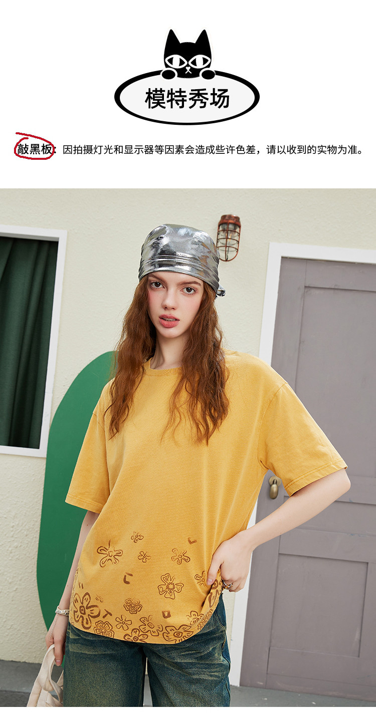 商品名称:【100%棉】简约印花设计感休闲女式T恤夏季短袖上衣 780765