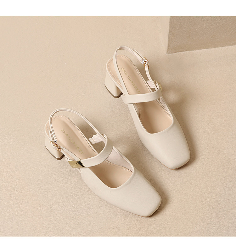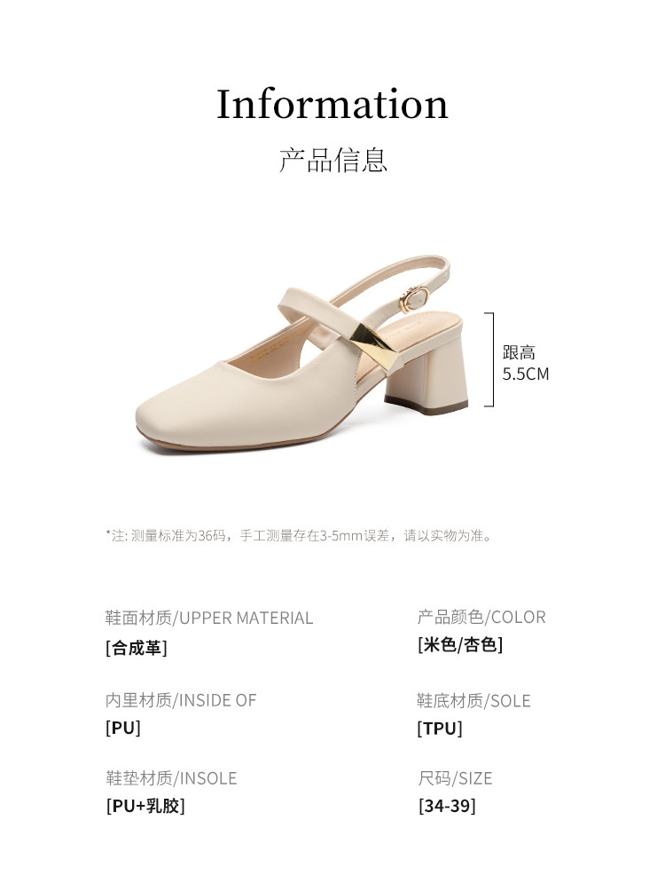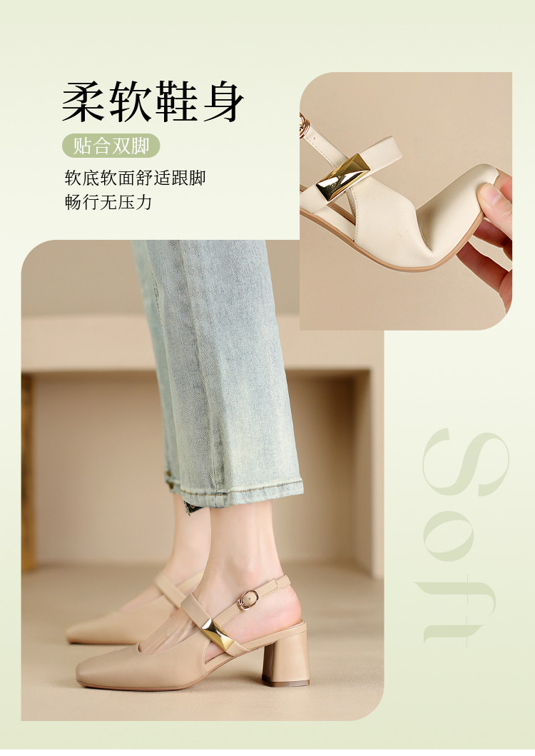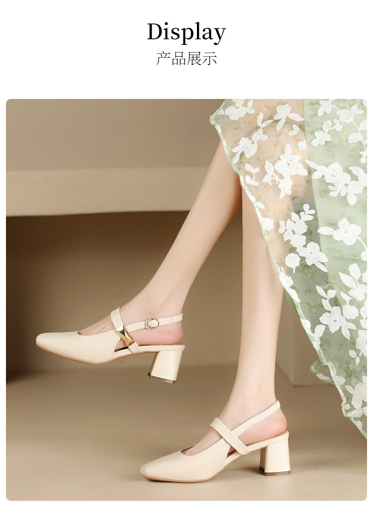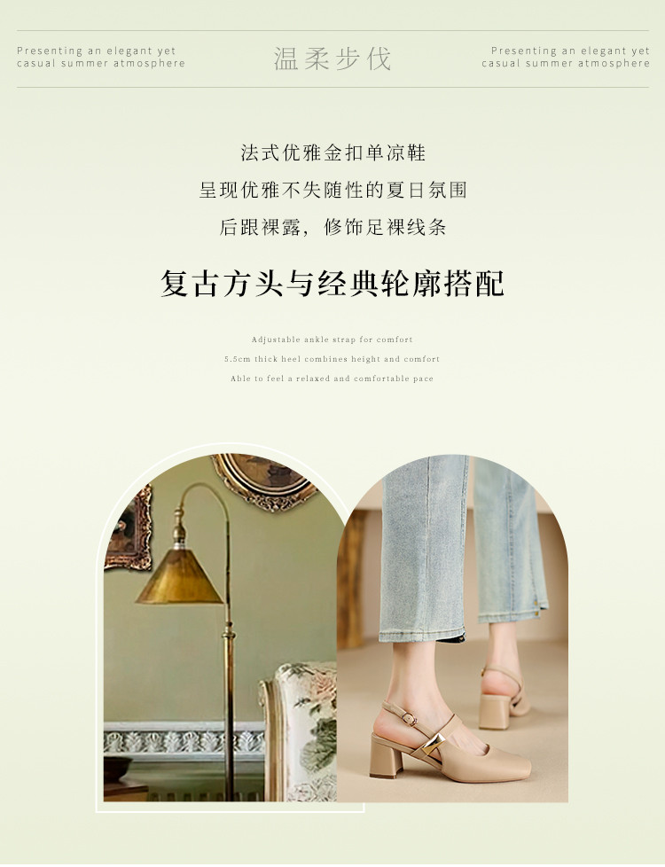 商品名称:【金属扣饰】百搭方头粗跟凉鞋女包头凉鞋女士夏配裙子气质凉鞋女 769408