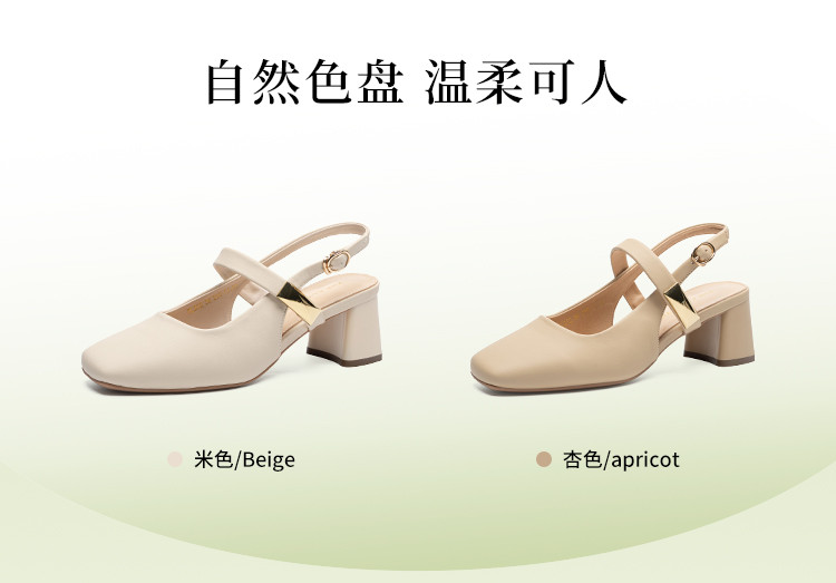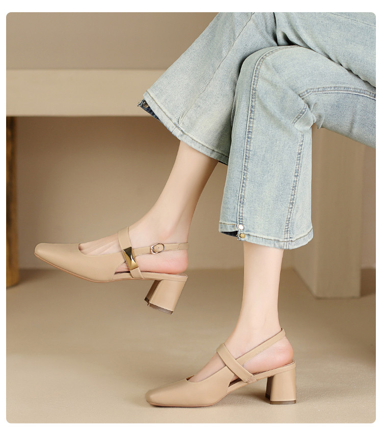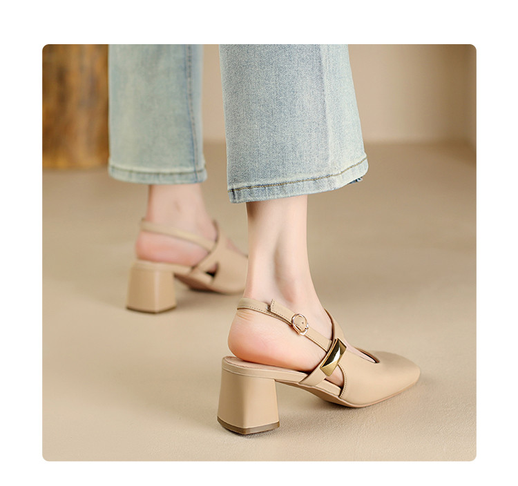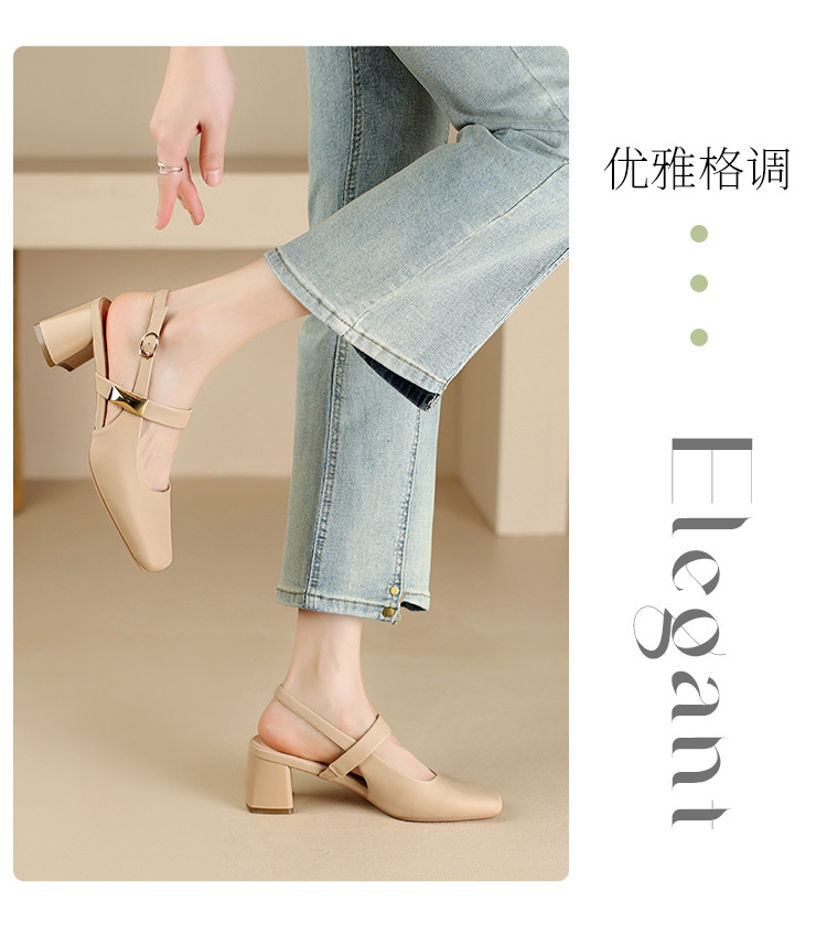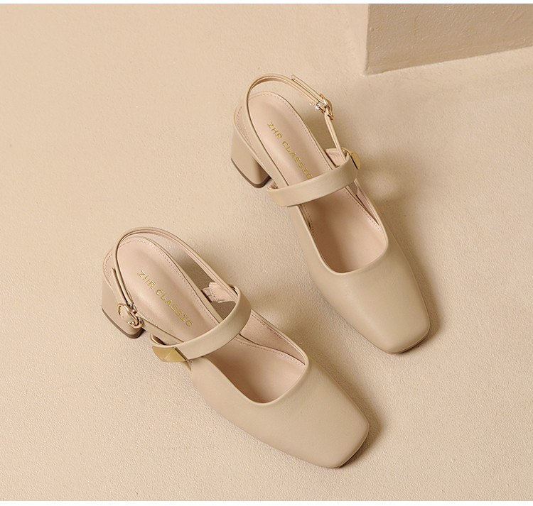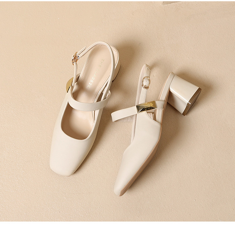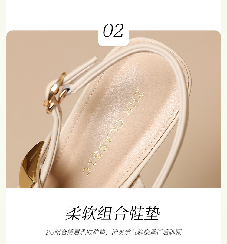 商品名称:【金属扣饰】百搭方头粗跟凉鞋女包头凉鞋女士夏配裙子气质凉鞋女 769408