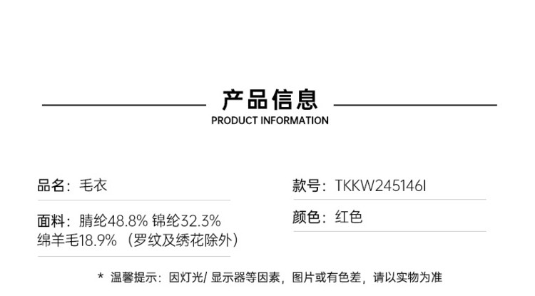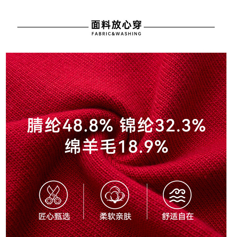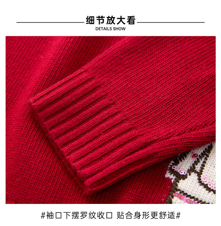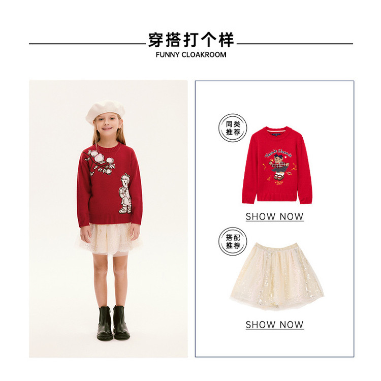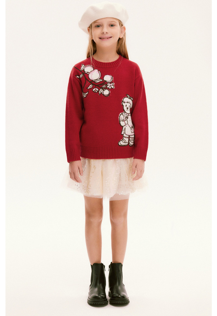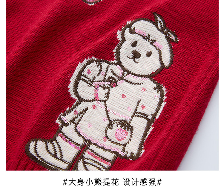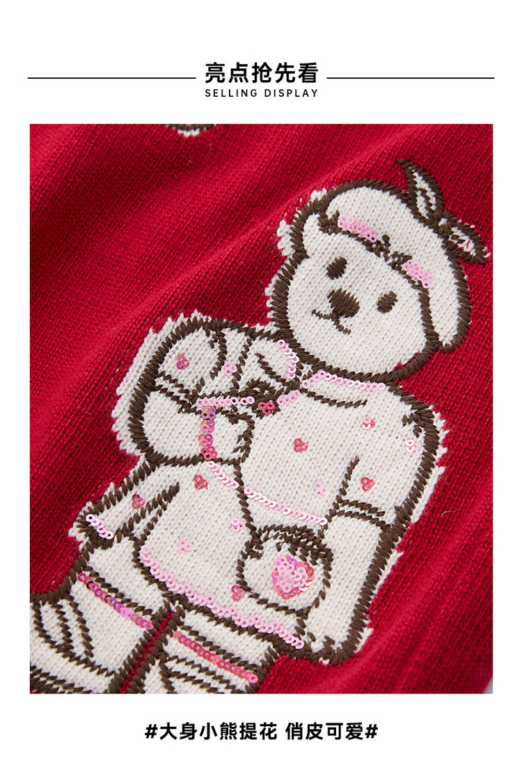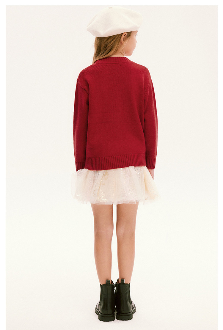 商品名称:小熊童装红色春季款女童提花圆领套头针织毛衣 519745