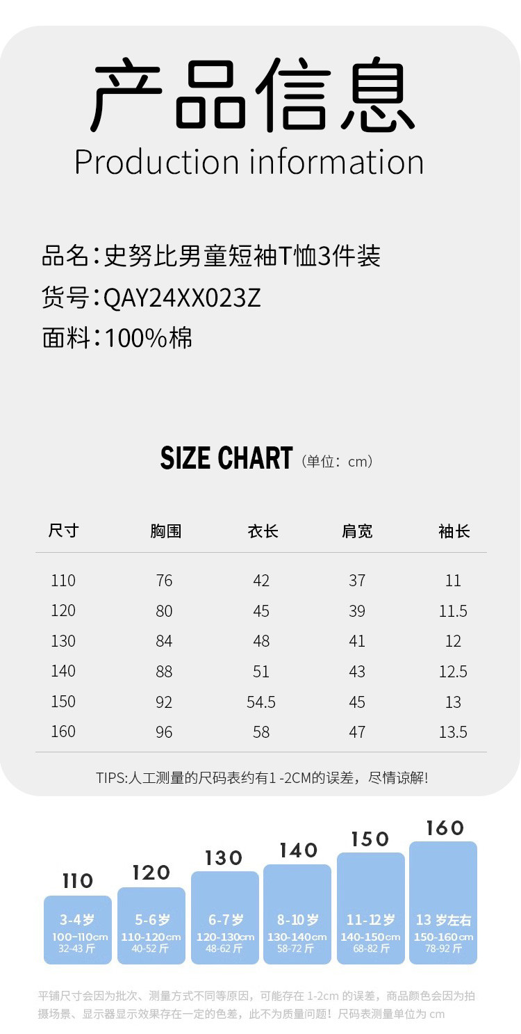 商品名称:【3件装纯棉短T】男童短袖T恤儿童夏季薄款上衣 240408