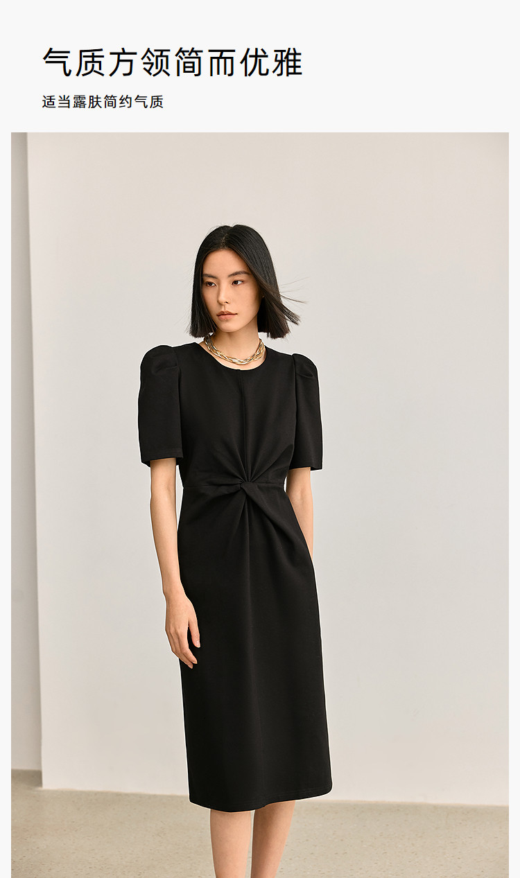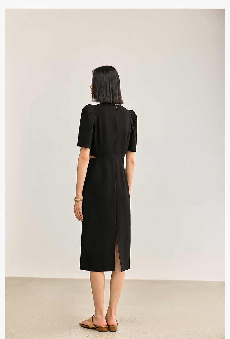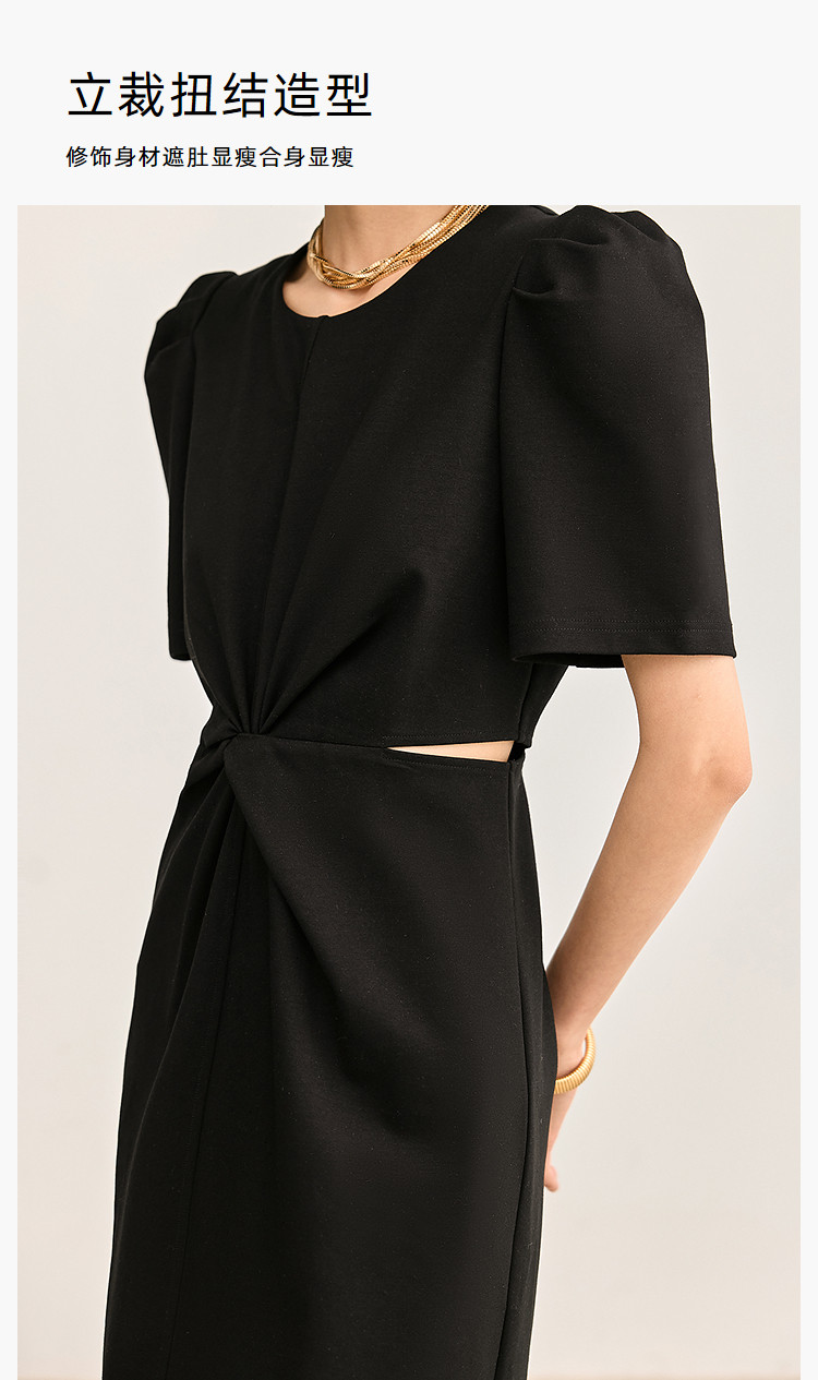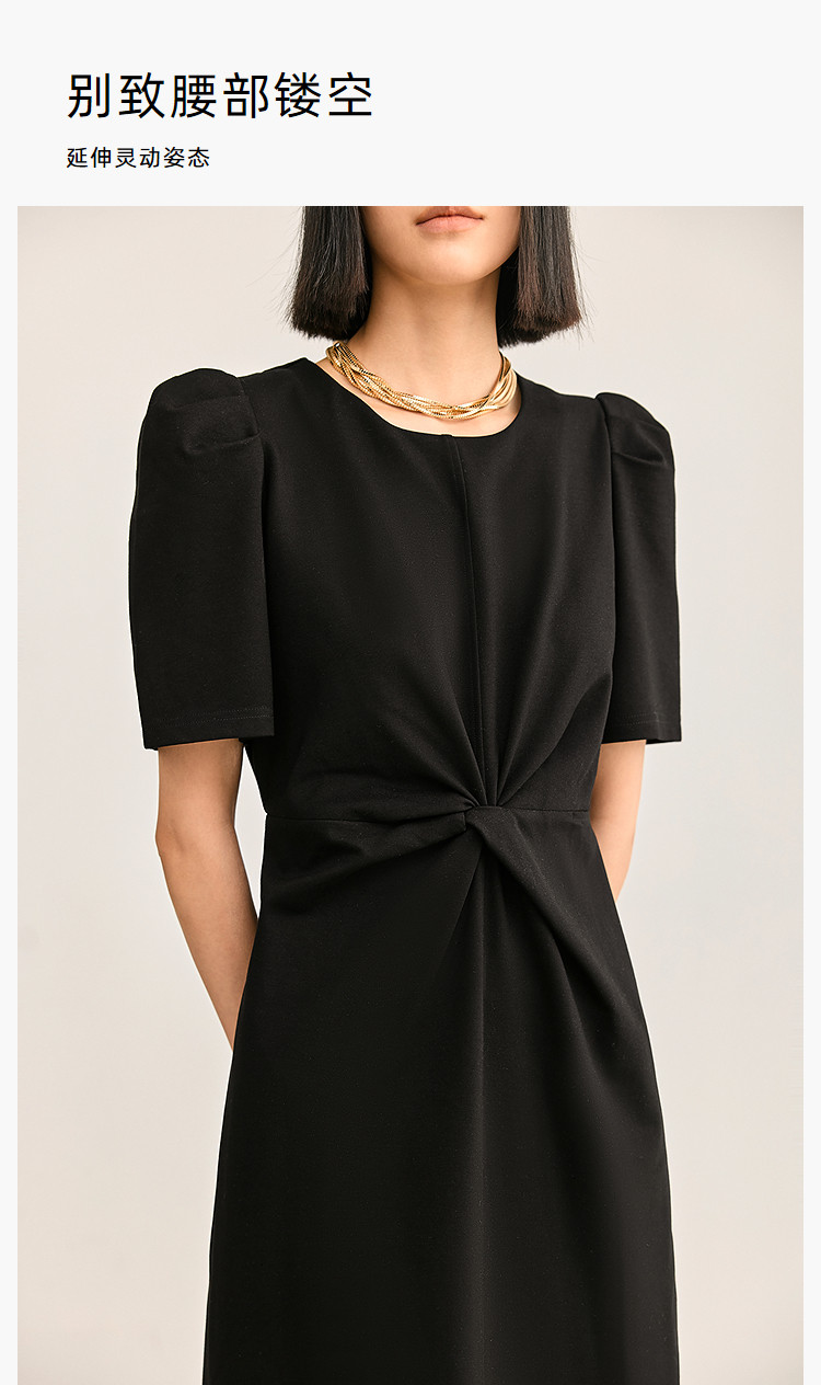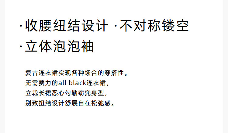 商品名称:夏季别致镂空气质通勤百搭复古泡泡袖连衣裙小黑裙 426011