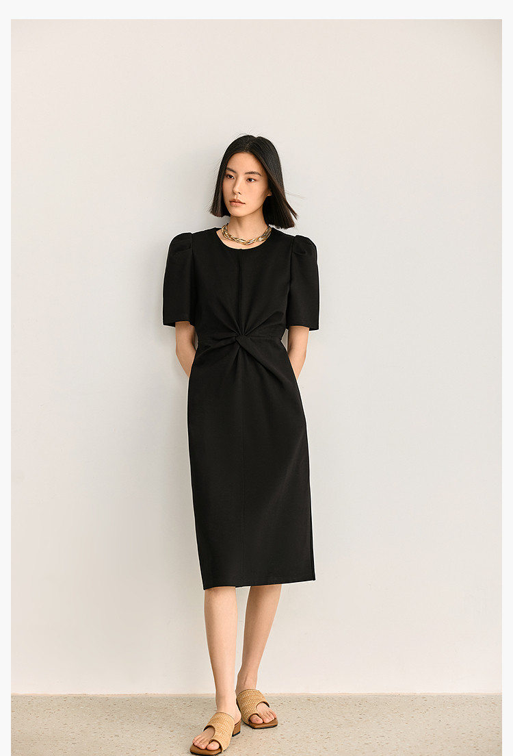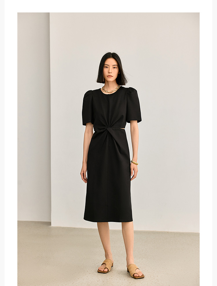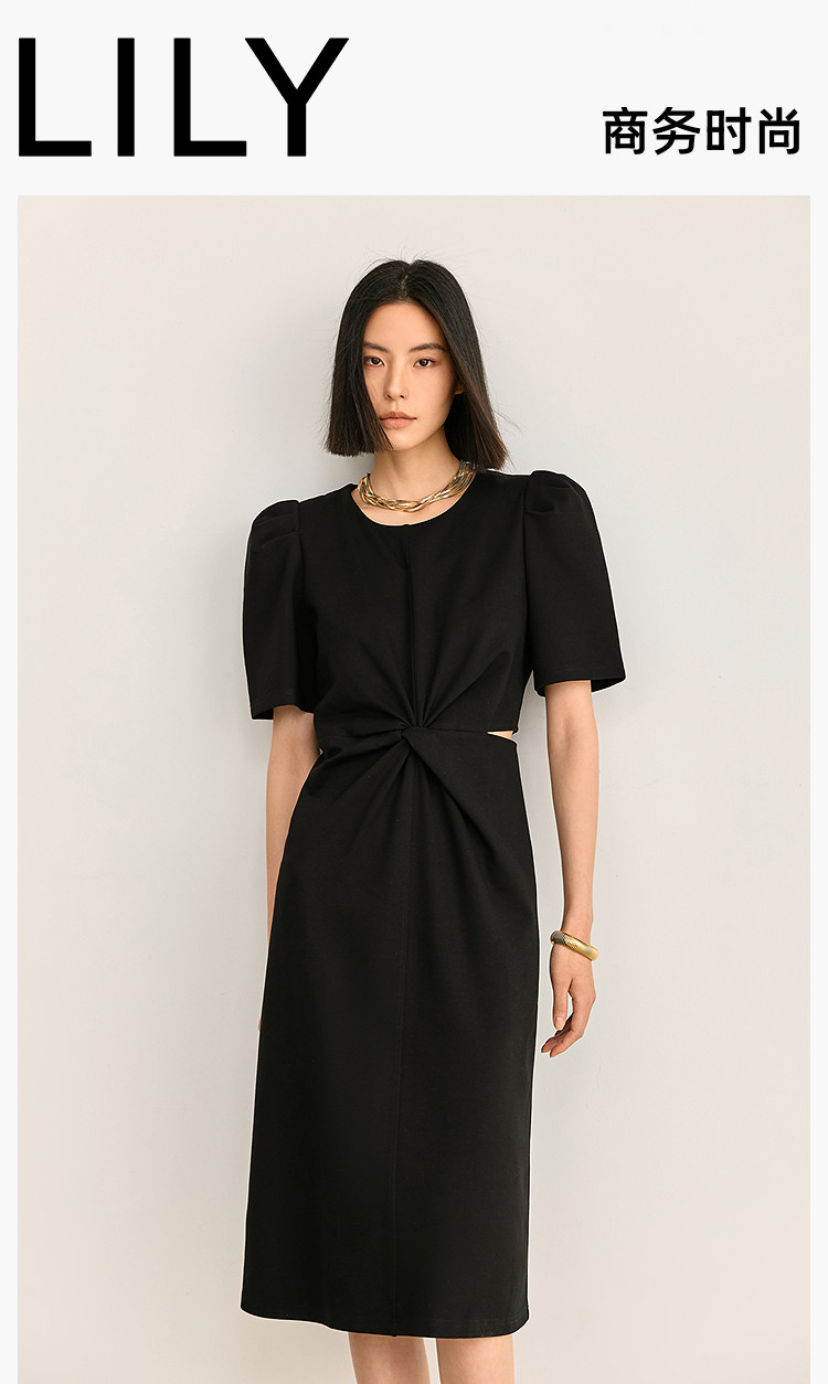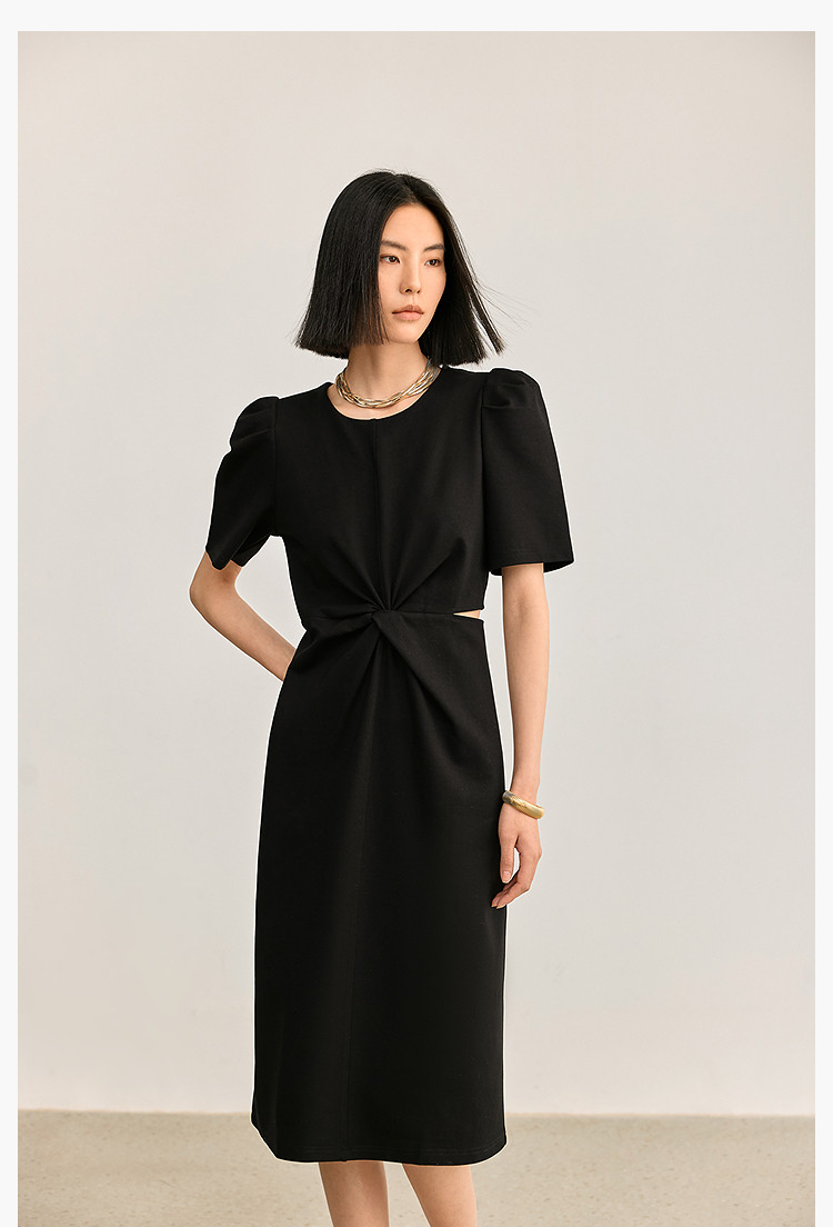 商品名称:夏季别致镂空气质通勤百搭复古泡泡袖连衣裙小黑裙 426011