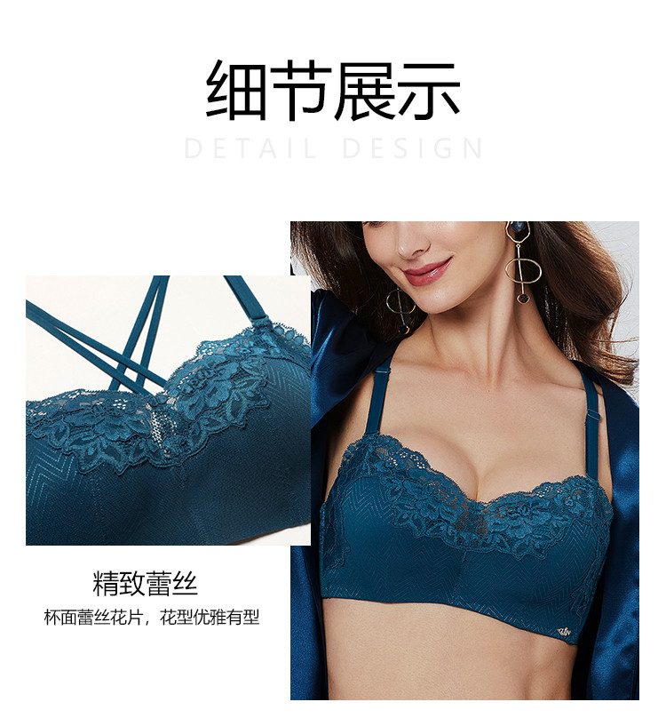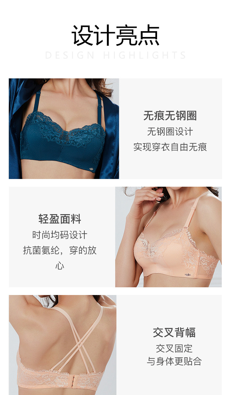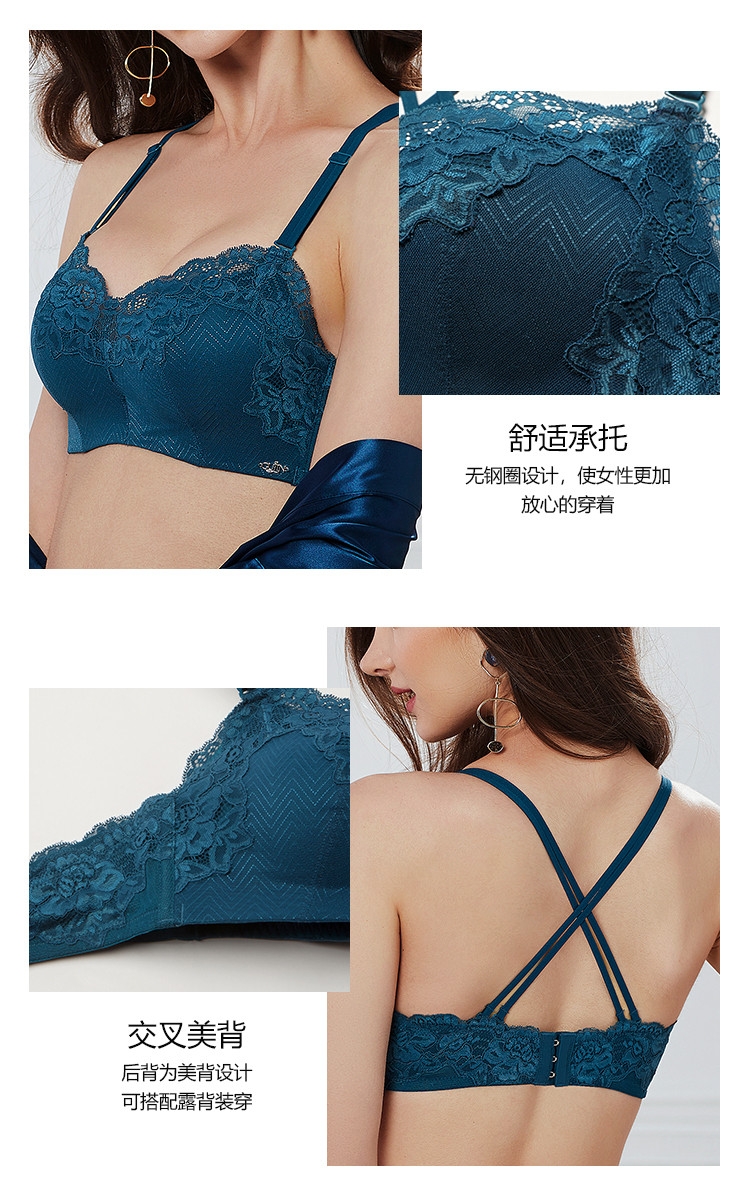 商品名称:【交叉美背】性感蕾丝聚拢内衣舒适透气无钢圈侧收上托内衣文胸女 261131