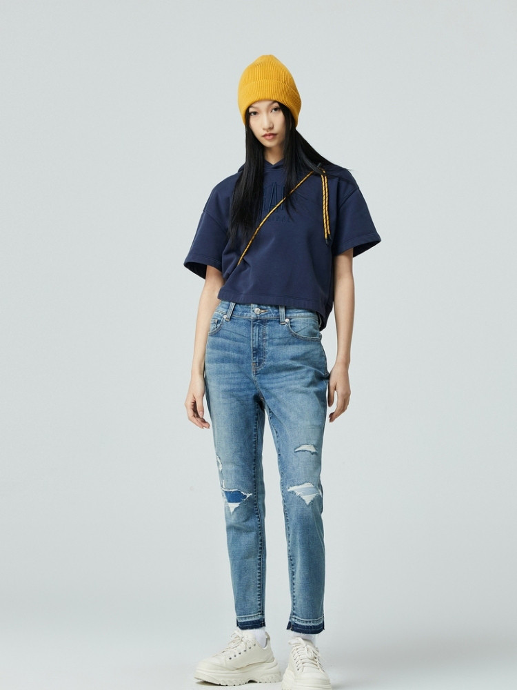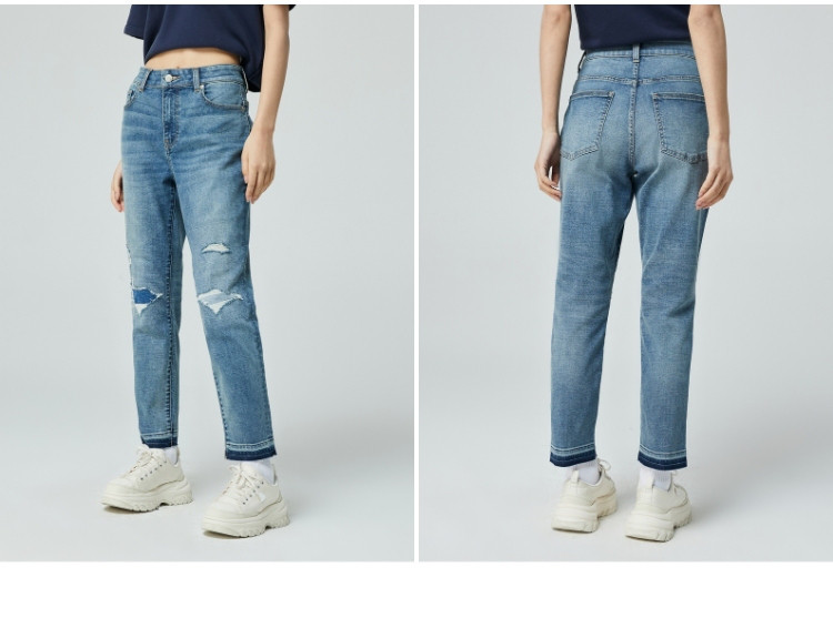 Gap女装秋季修身磨毛边破洞高腰弹力牛仔裤长裤874428 674970