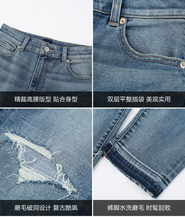 商品名称:Gap女装秋季修身磨毛边破洞高腰弹力牛仔裤长裤874428 674970