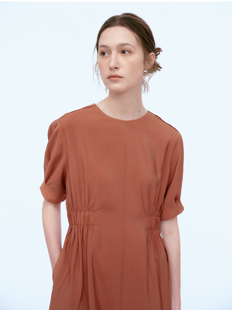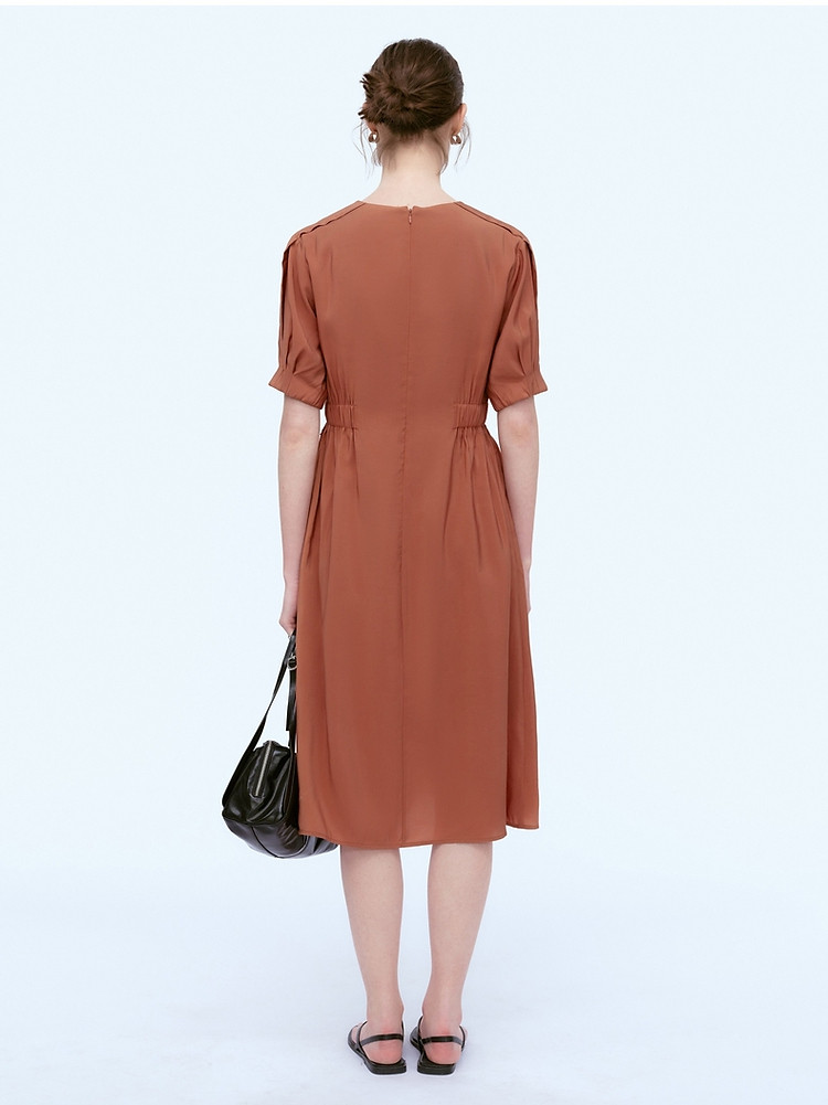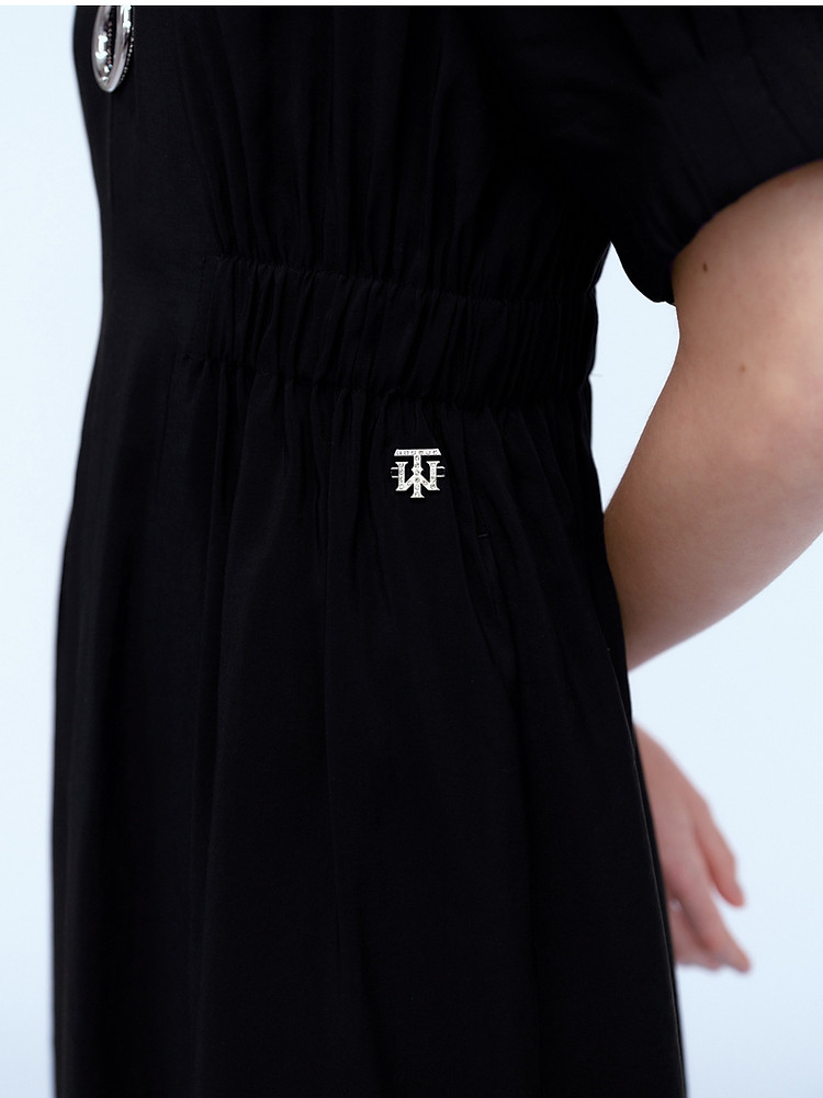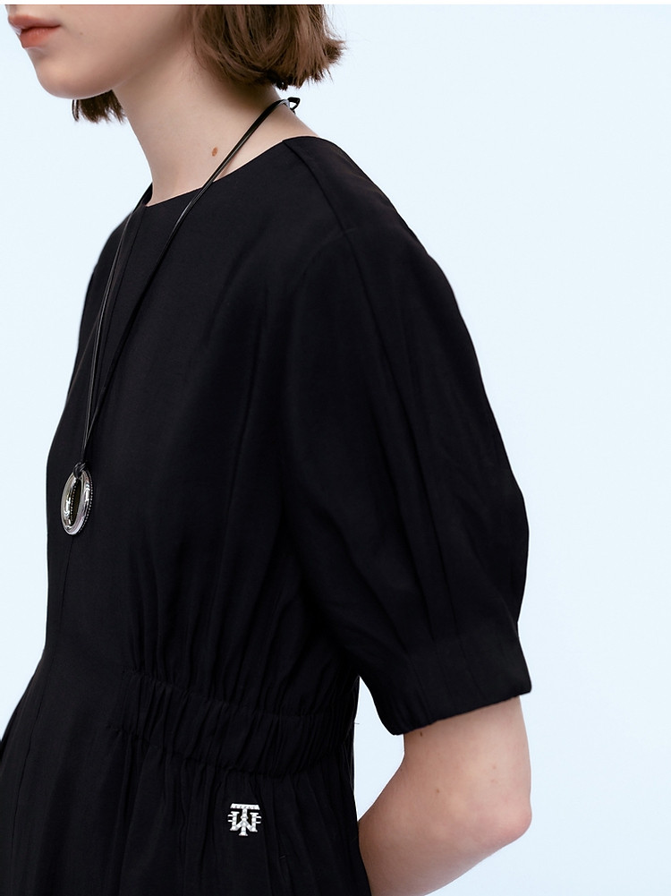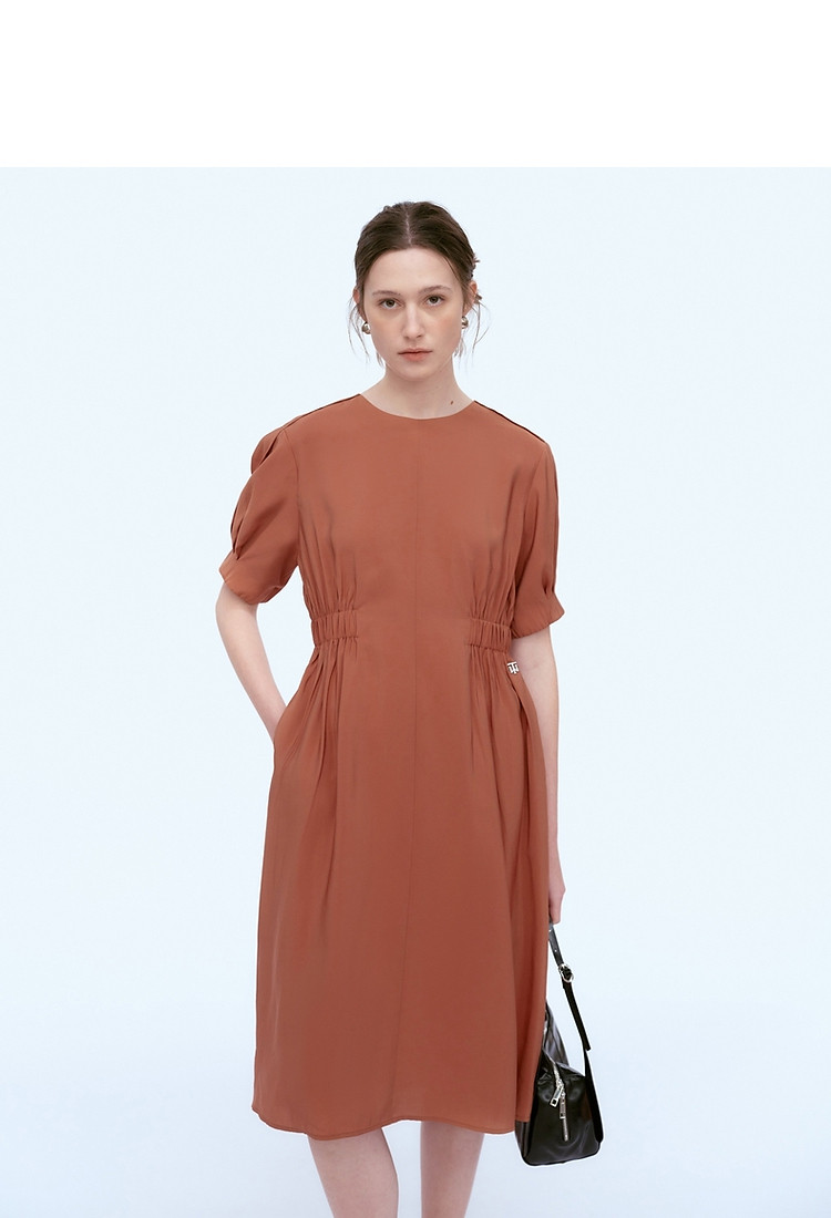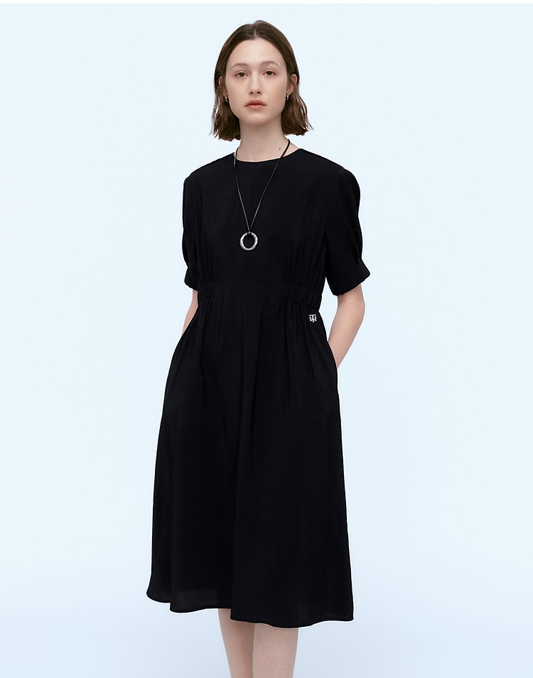 商品名称:小熊夏装圆领松紧收腰长款短袖A字连衣裙女装裙装 191617