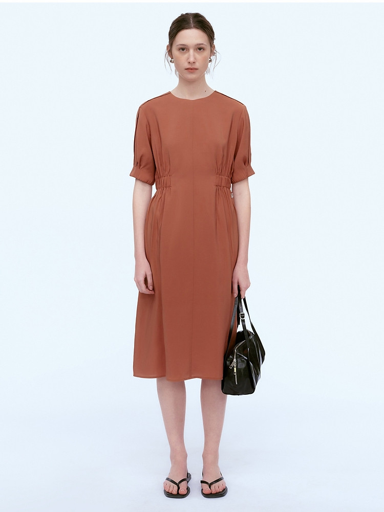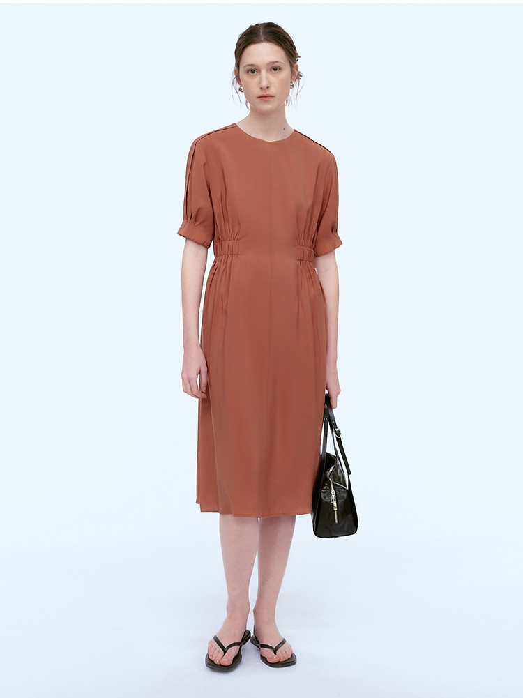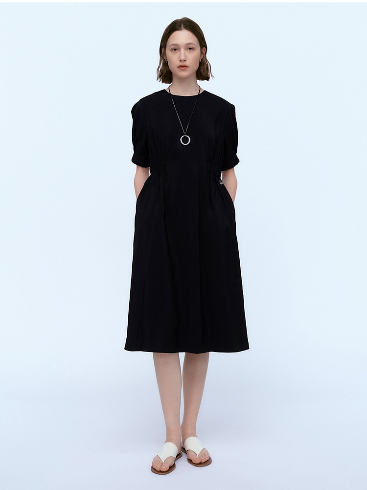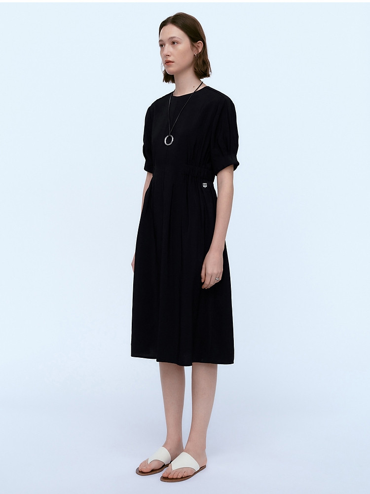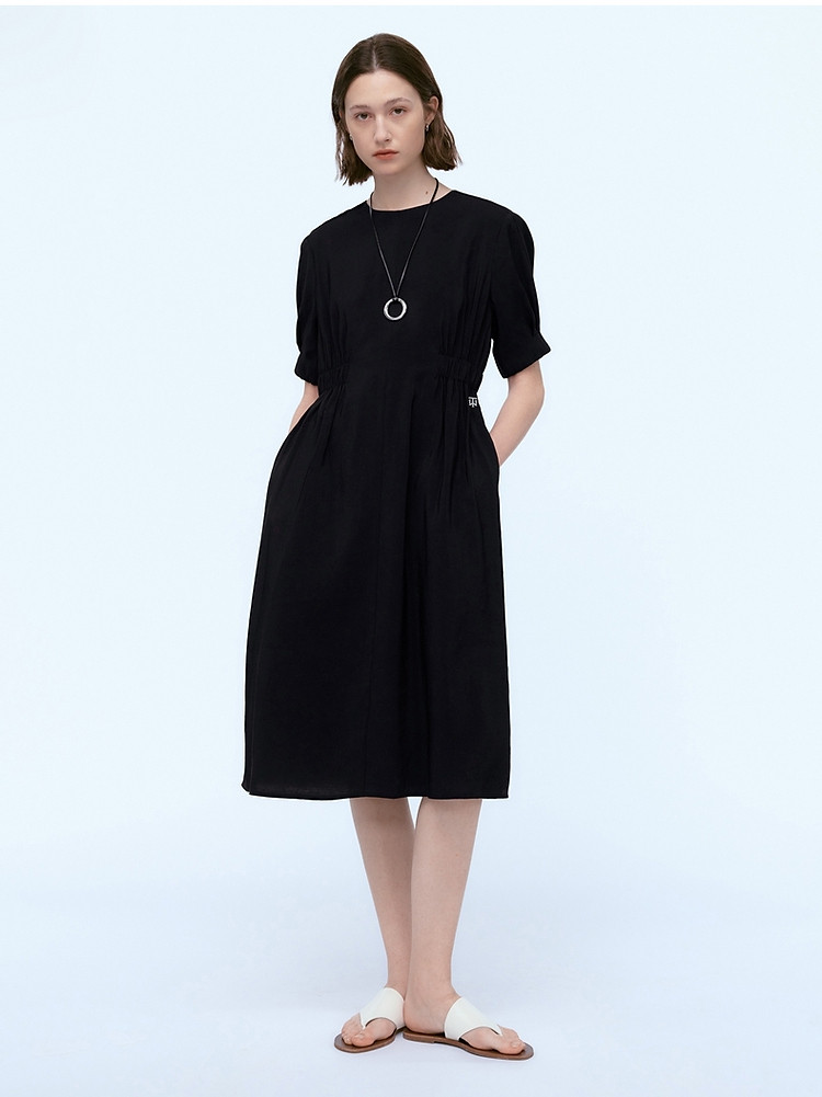 小熊夏装圆领松紧收腰长款短袖A字连衣裙女装裙装 191617